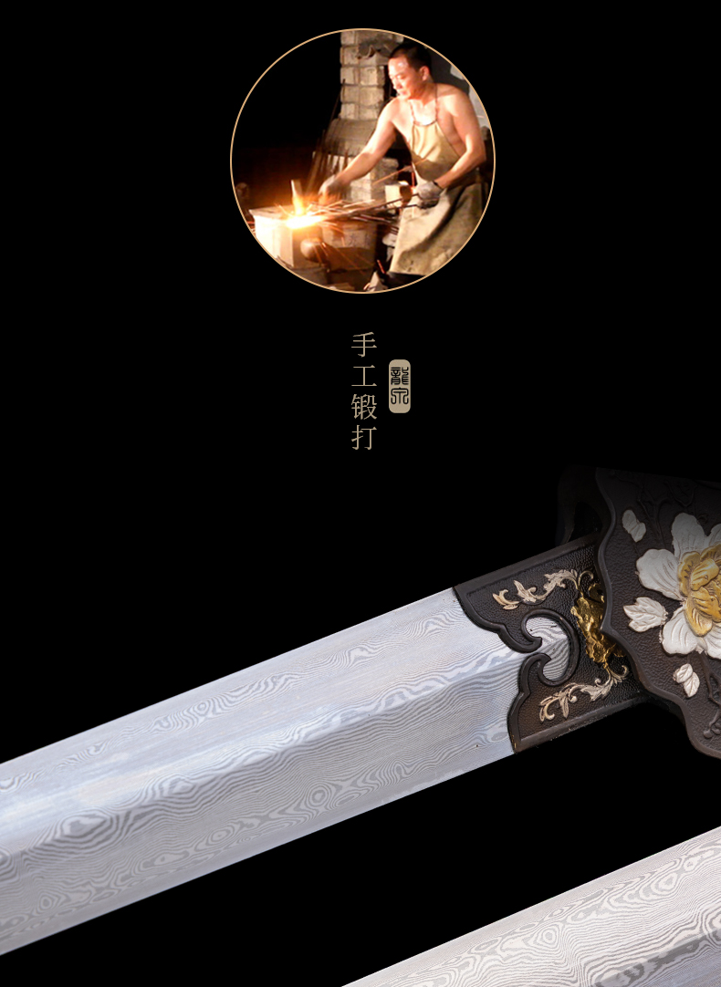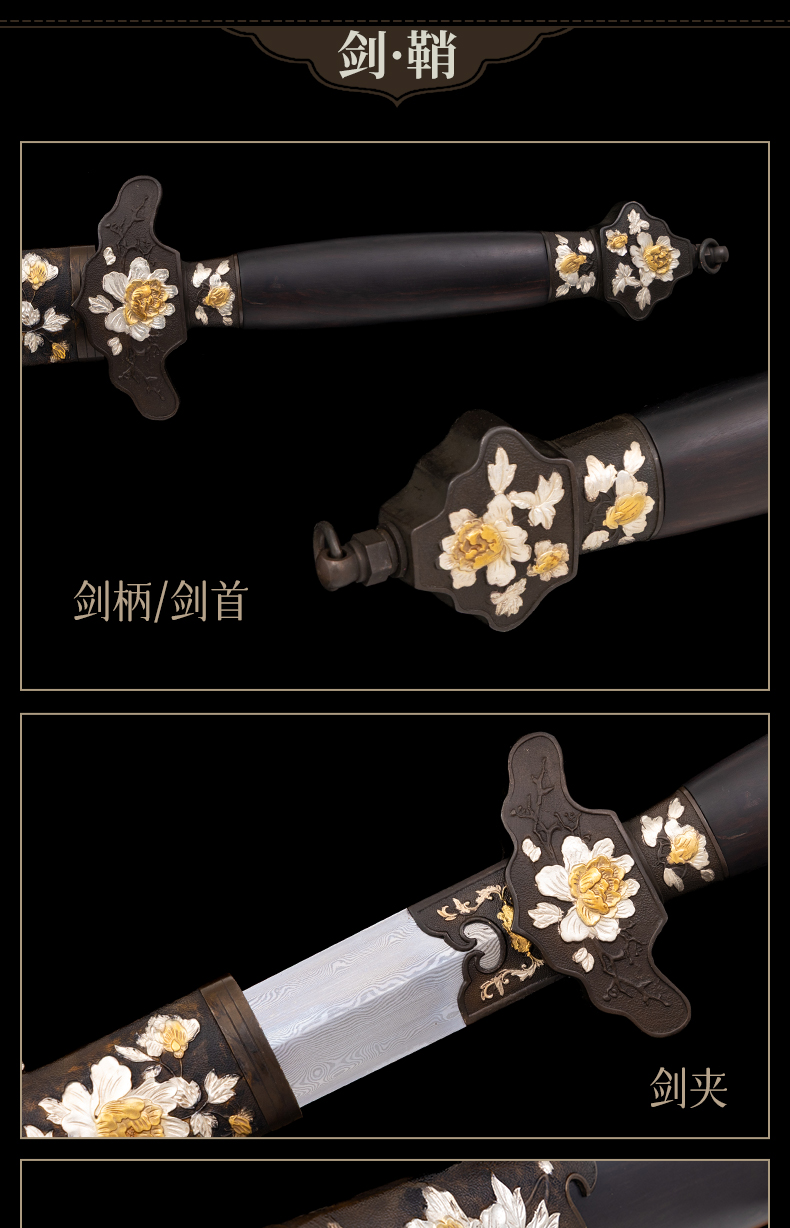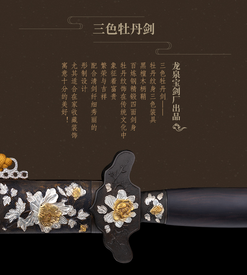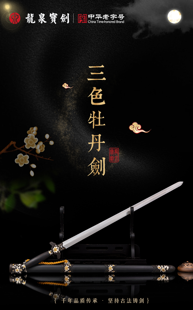 龙泉宝剑厂百炼花纹刚刚三色牡丹剑(未开刃)
