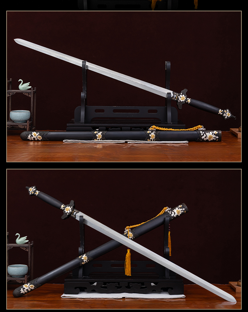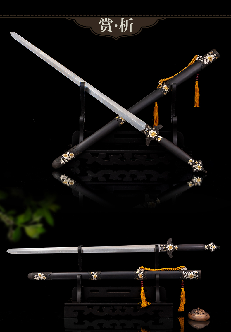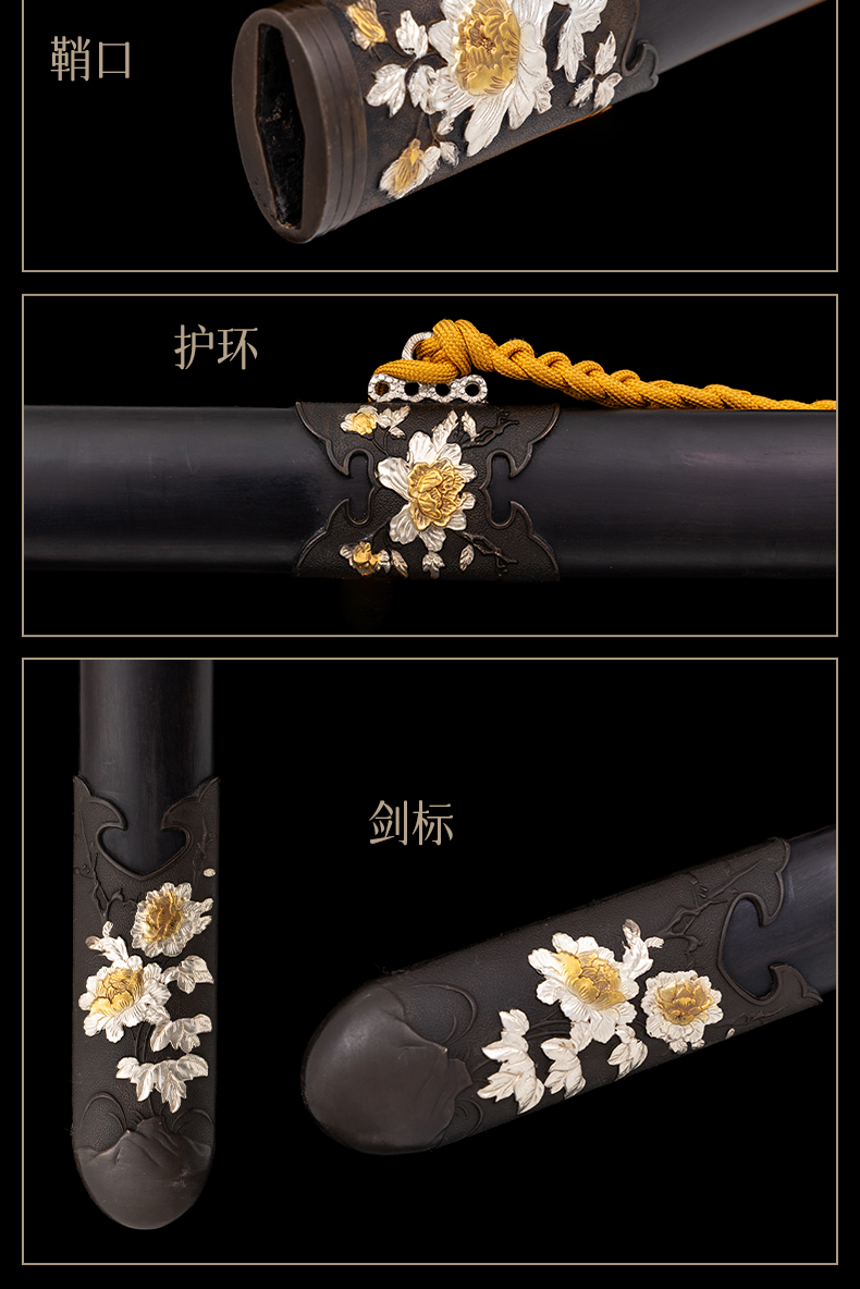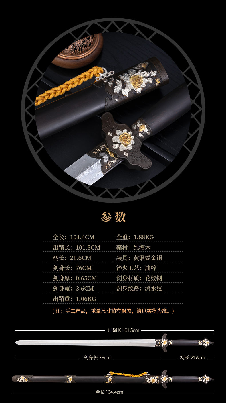龙泉宝剑厂百炼花纹刚刚三色牡丹剑(未开刃)