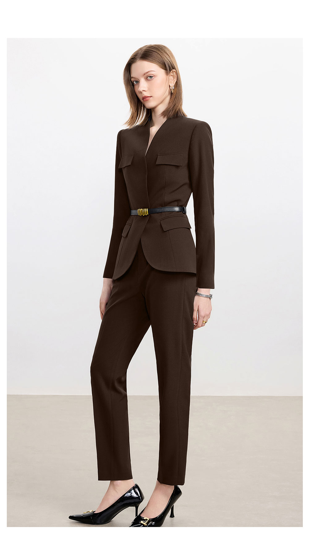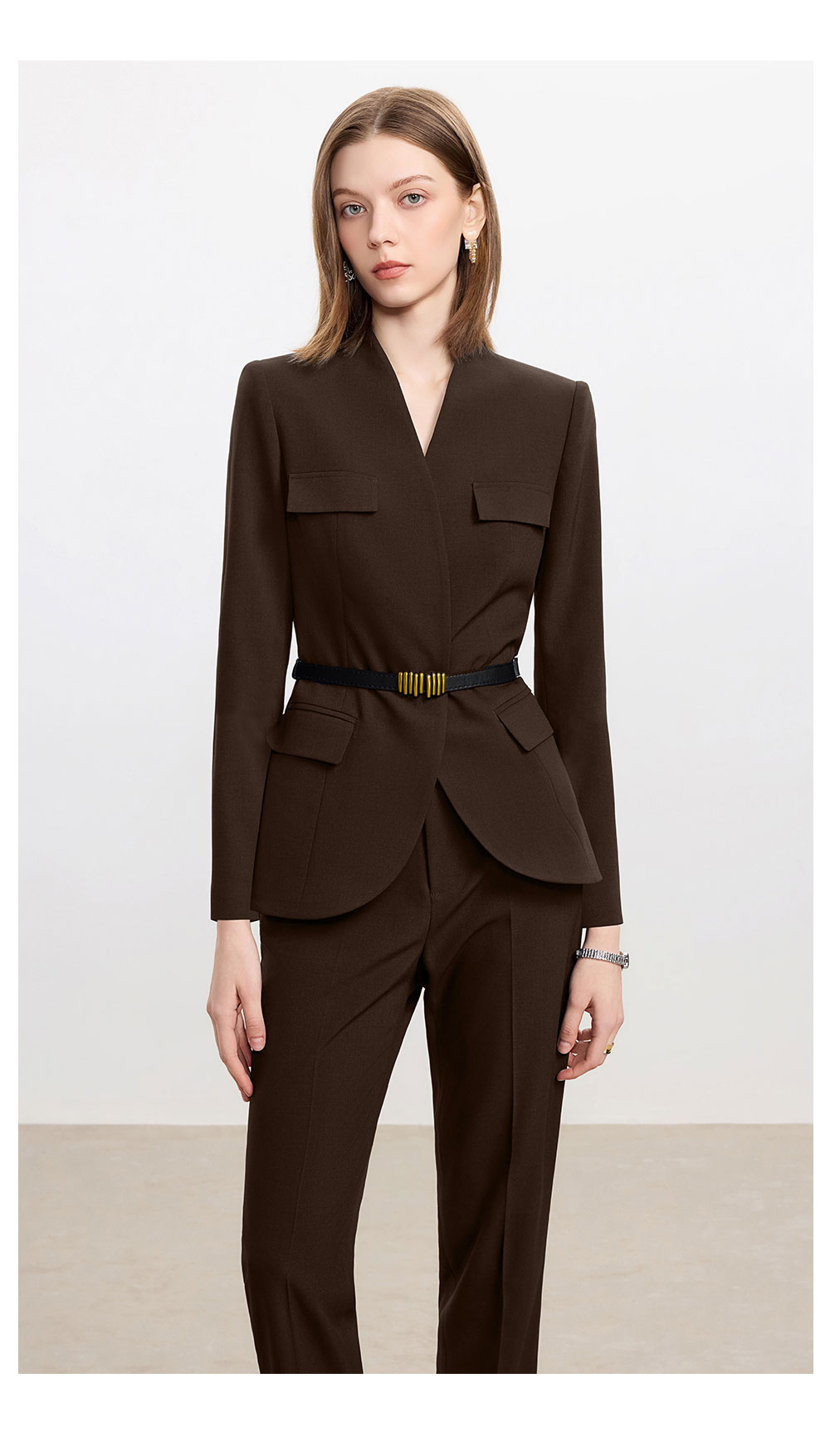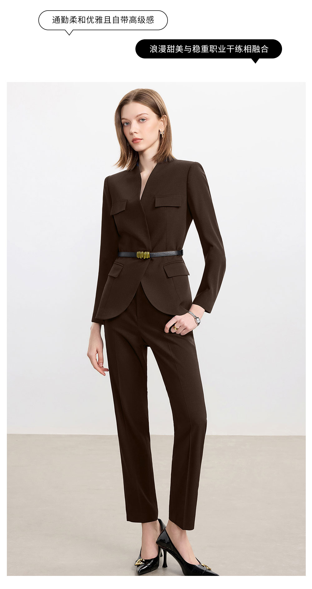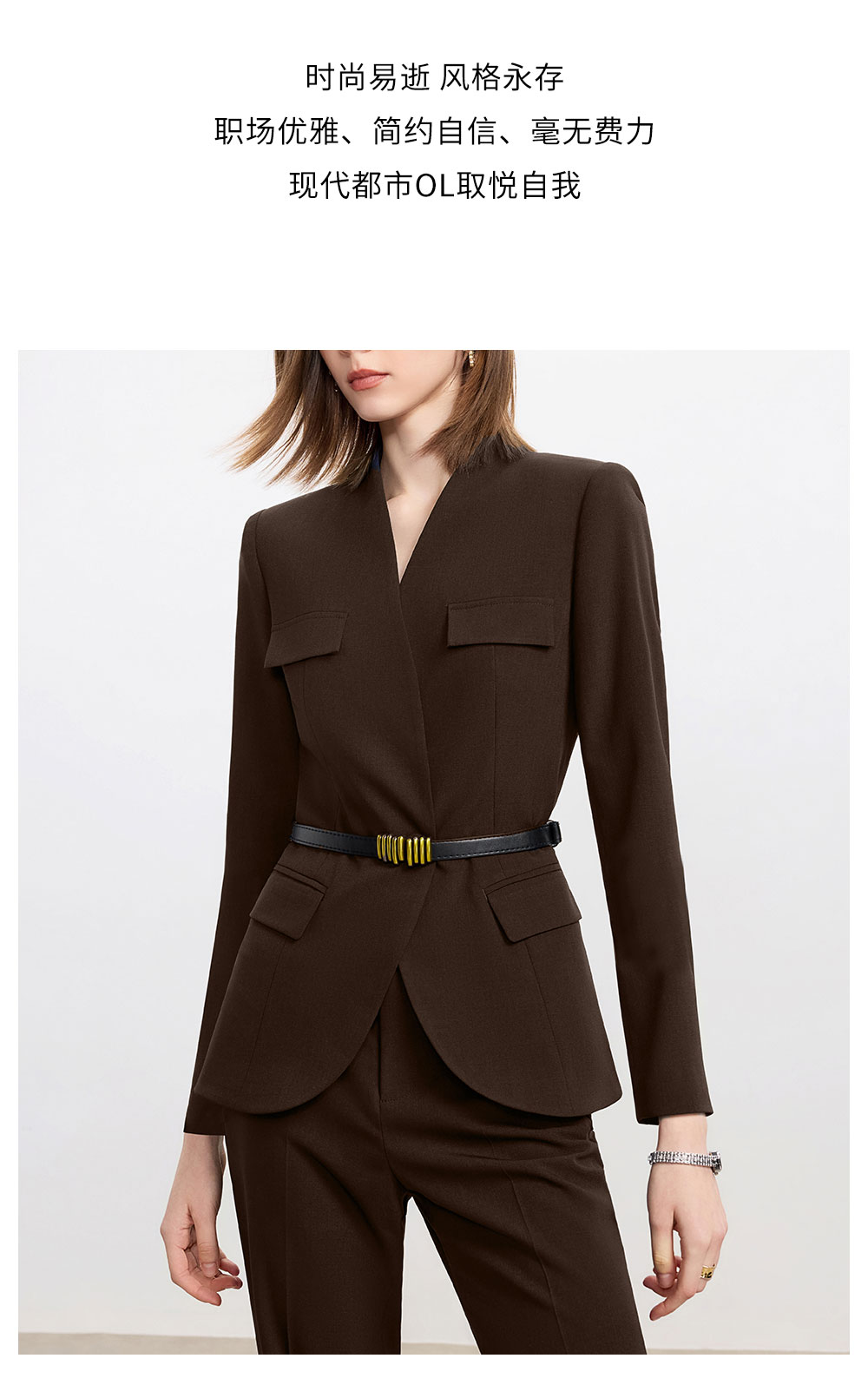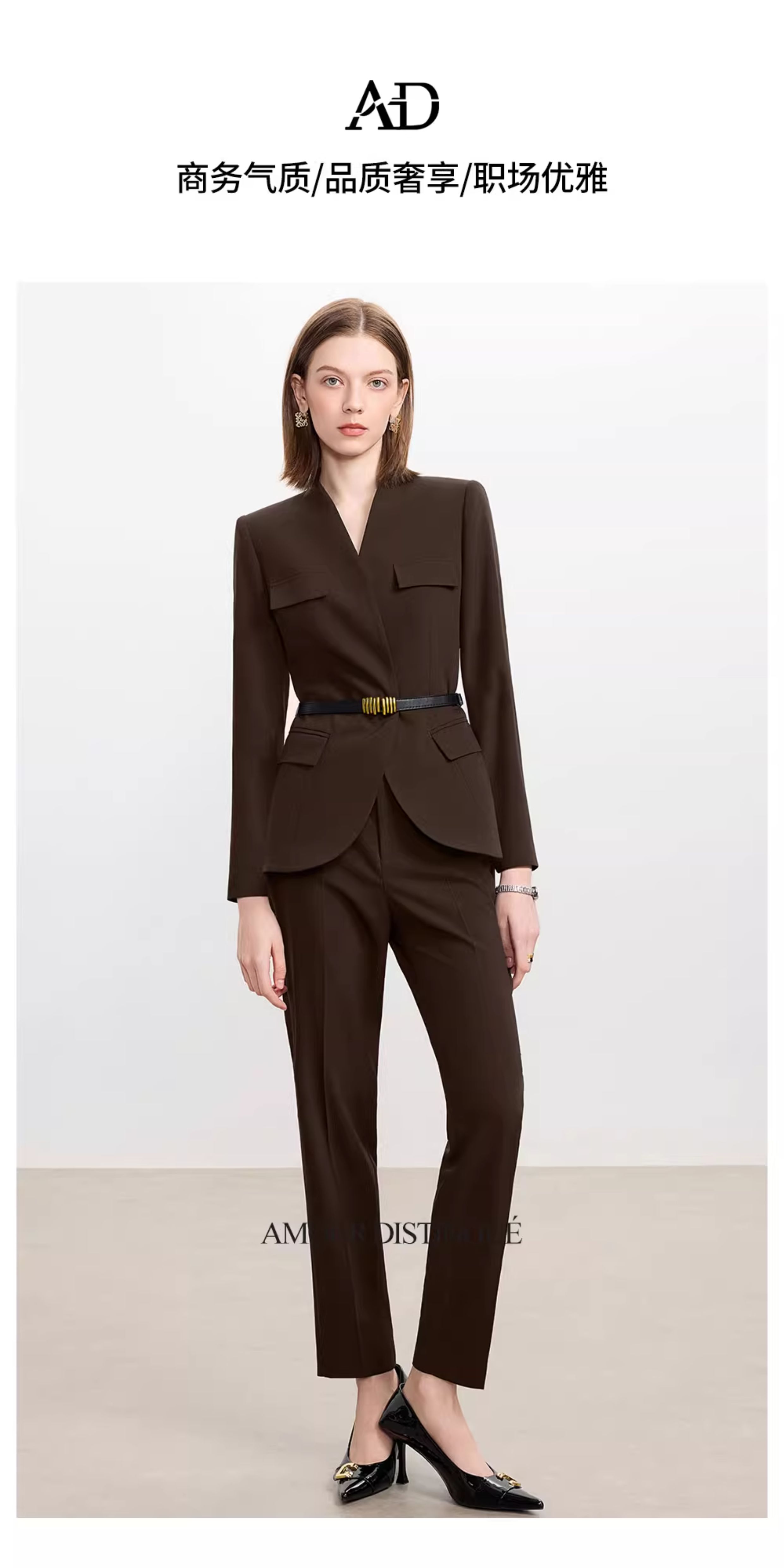 AD爆款棕色西装套装女2025新款秋冬高端气质职业装无领西服正装裤