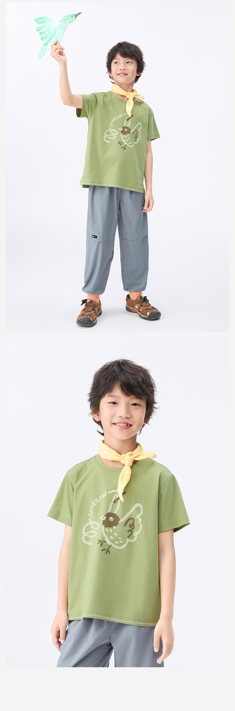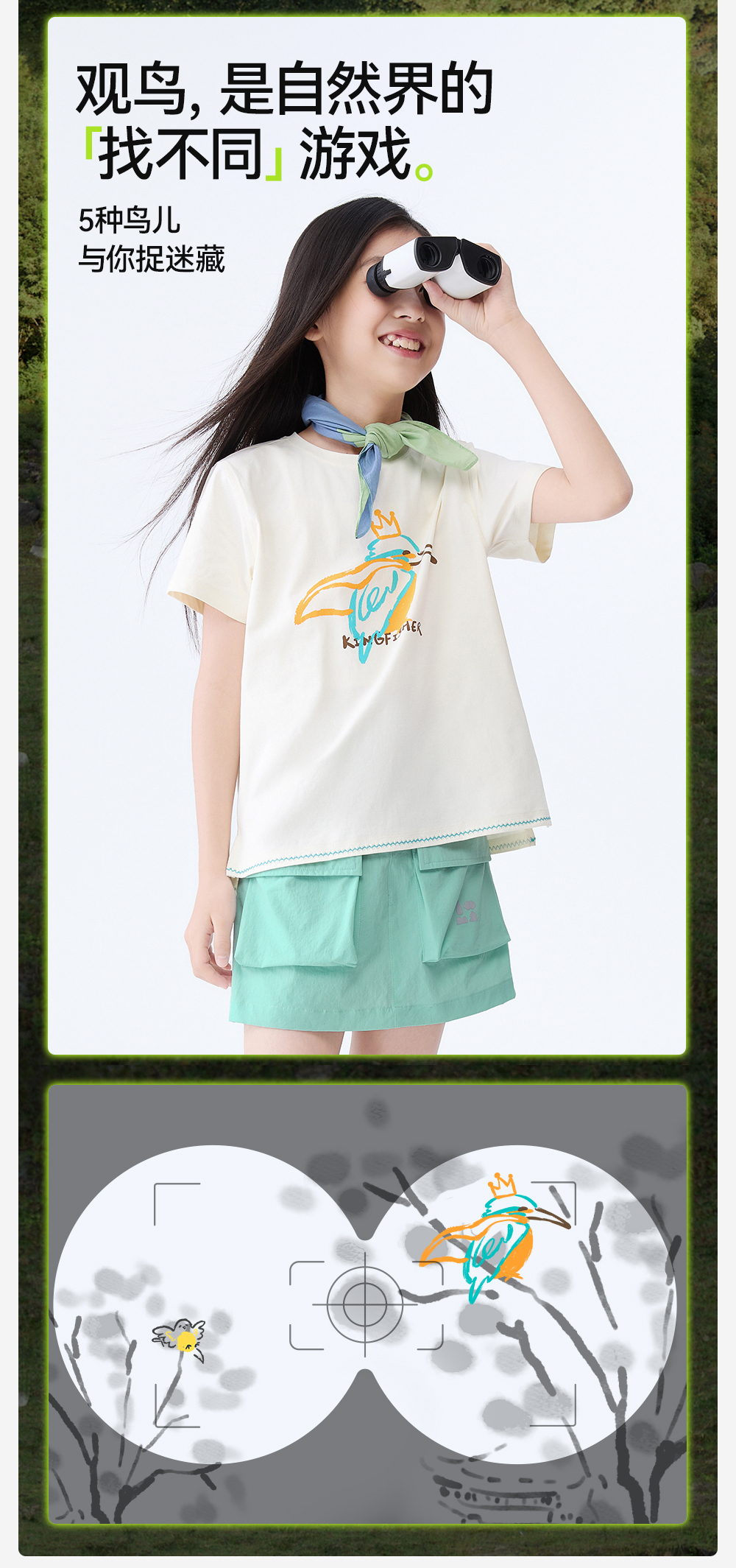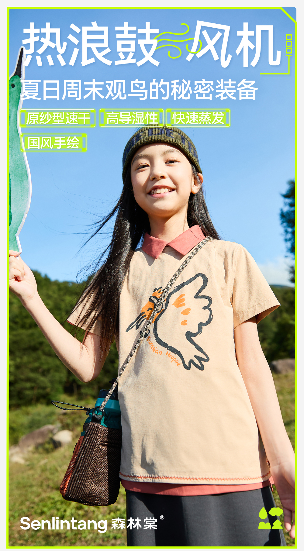 【汗跑跑观鸟短袖T恤】森林棠25夏款儿童户外探索运动吸汗速干短袖正肩T恤40322506