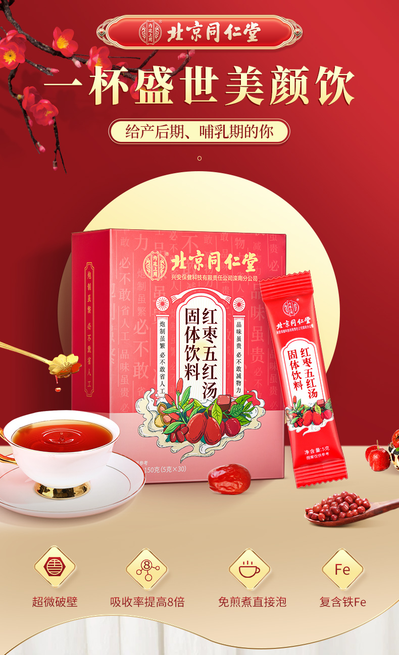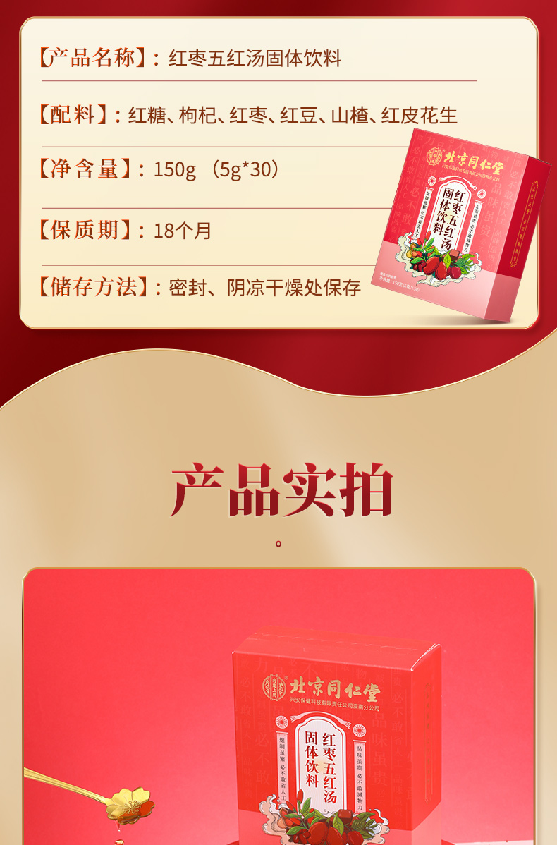 【传统滋补,养生“GO"新潮】北京同仁堂五红汤 红皮花生衣枸杞红糖红枣赤小豆山楂产后月子餐哺乳期养生粥原材料汤料包150g