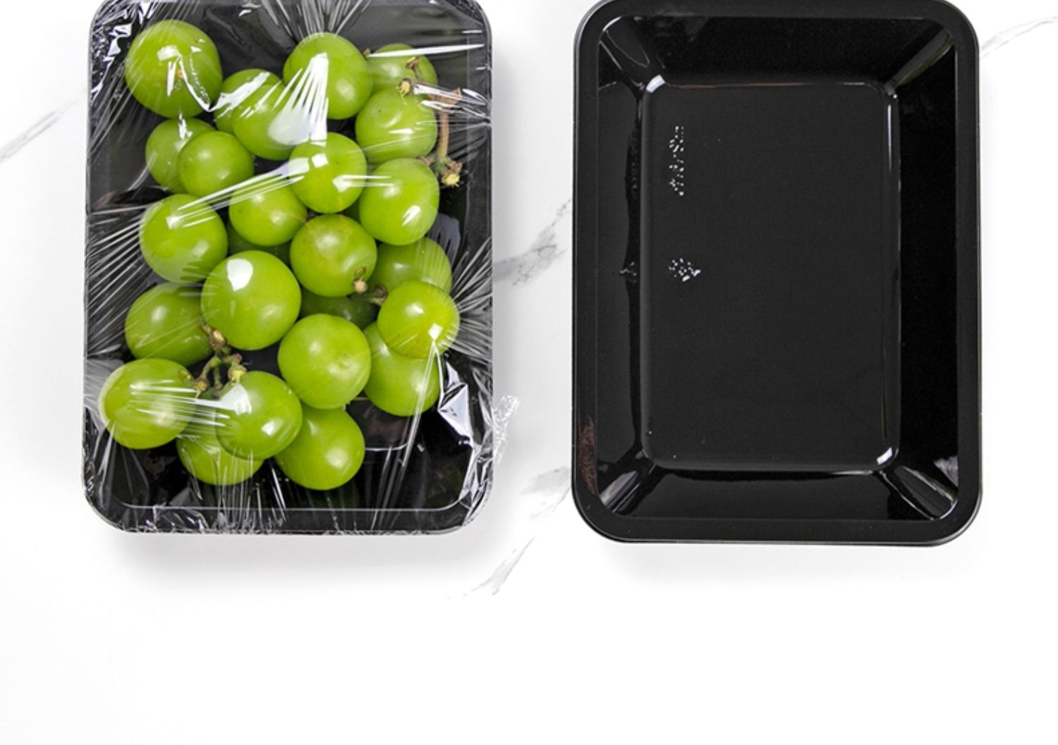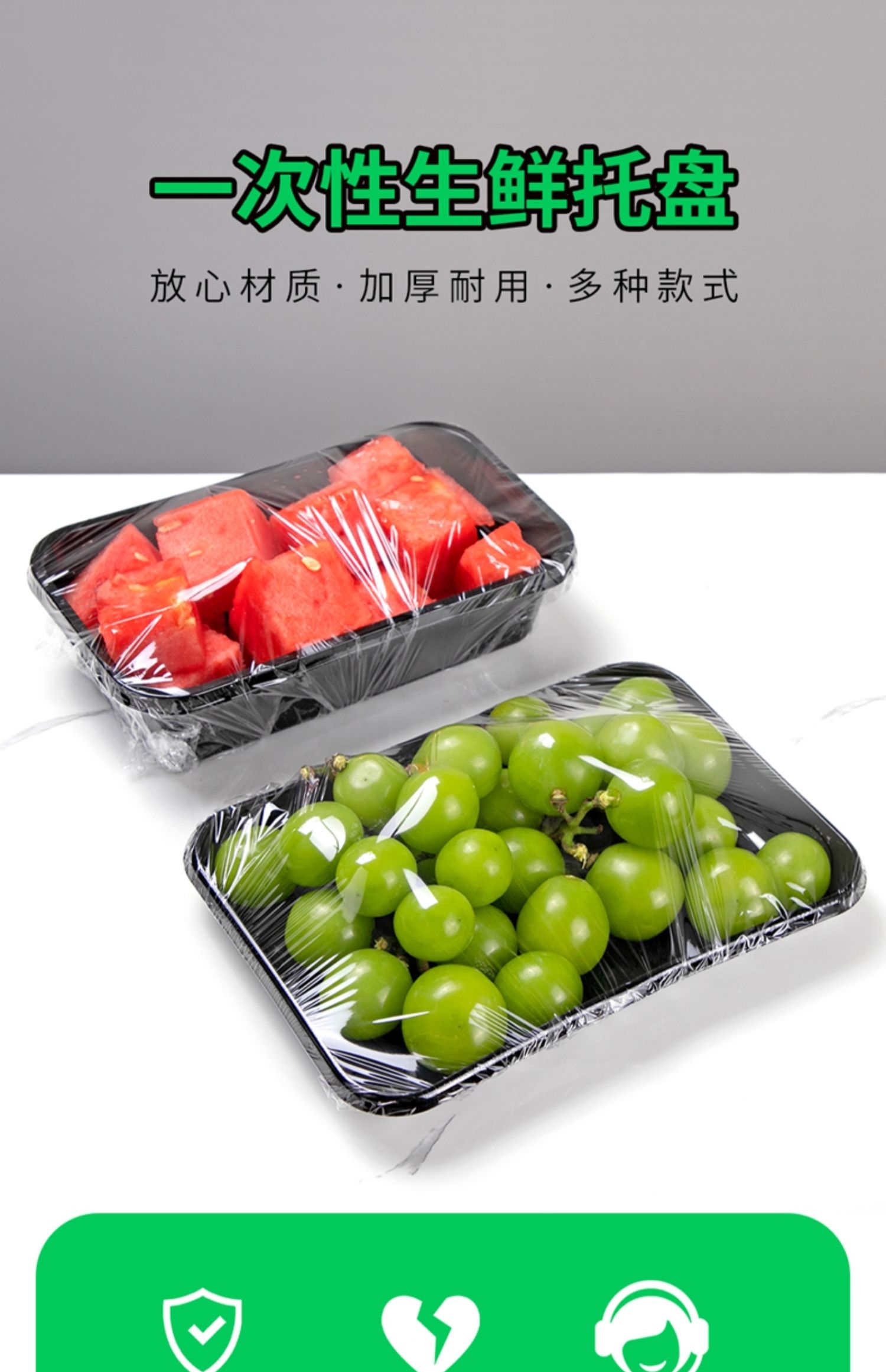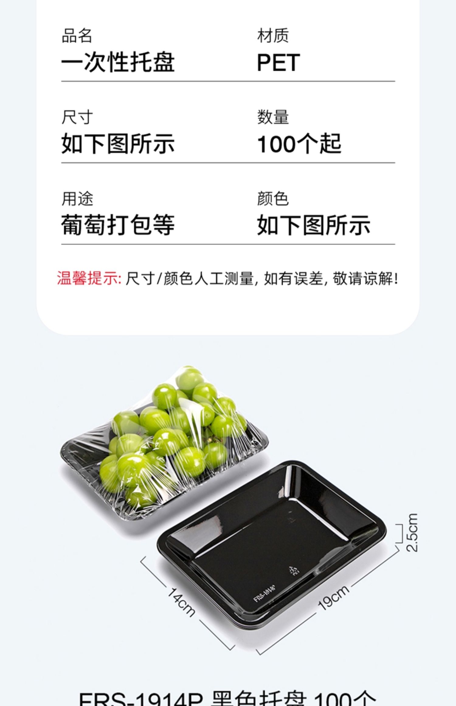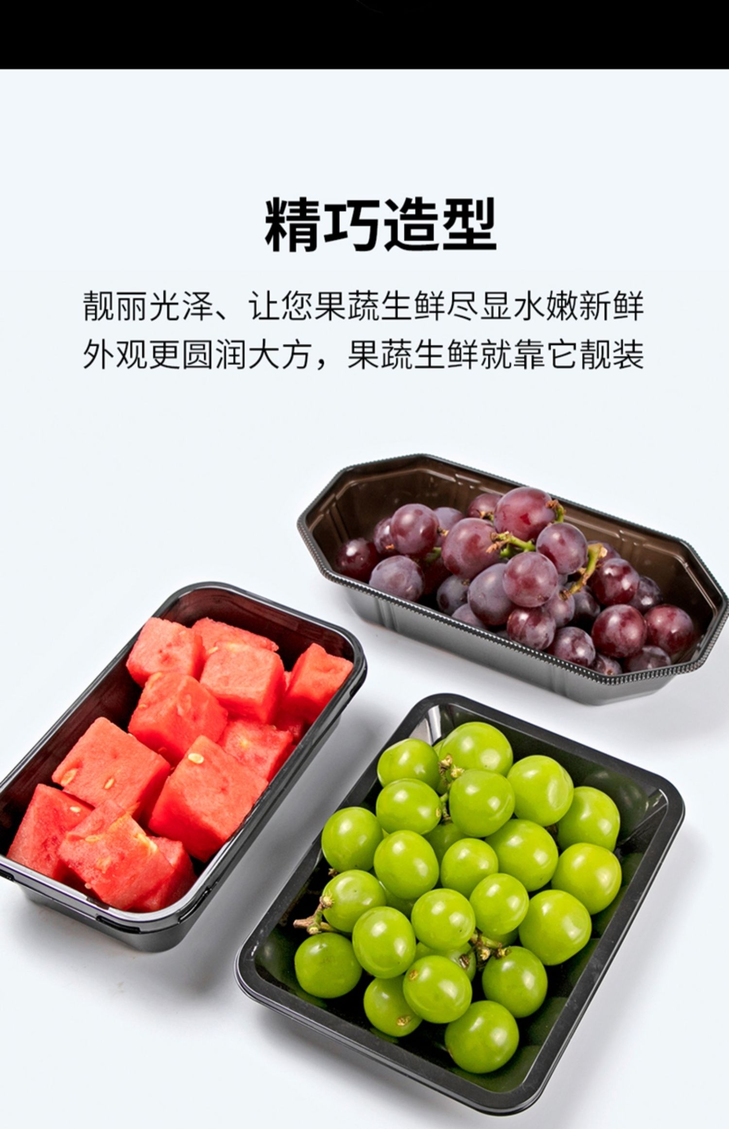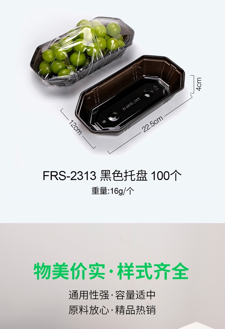 喇叭花一次性水果托盘无盖葡萄芒果水果盒长方形船形打包盒黑耀款托盘