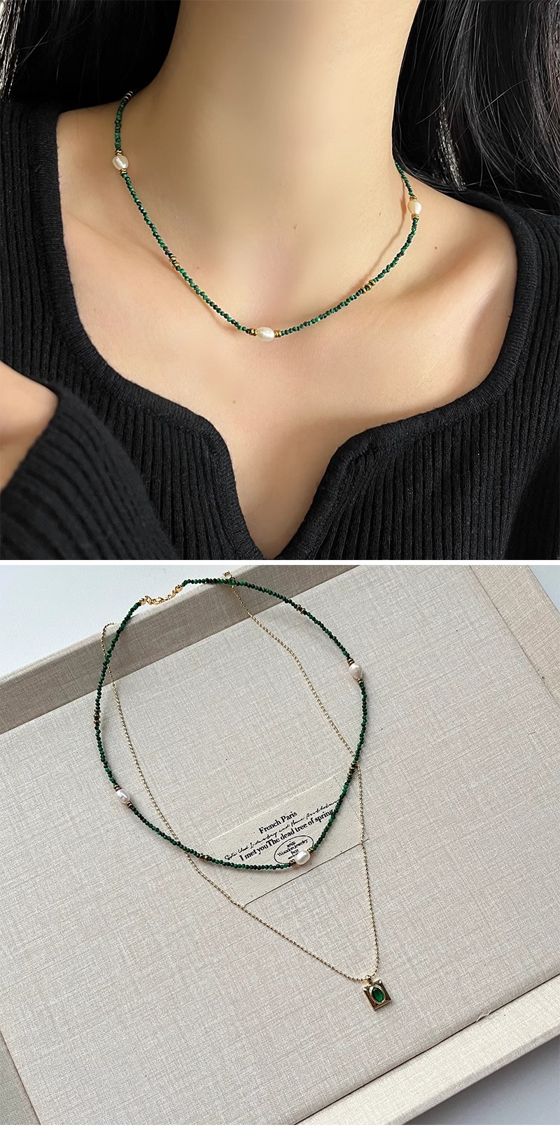 孔雀石珍珠项链,祖母绿吊坠项链,天然石珍珠手链, 天然石珍珠项链,绿松石项链,水晶猫眼石项链