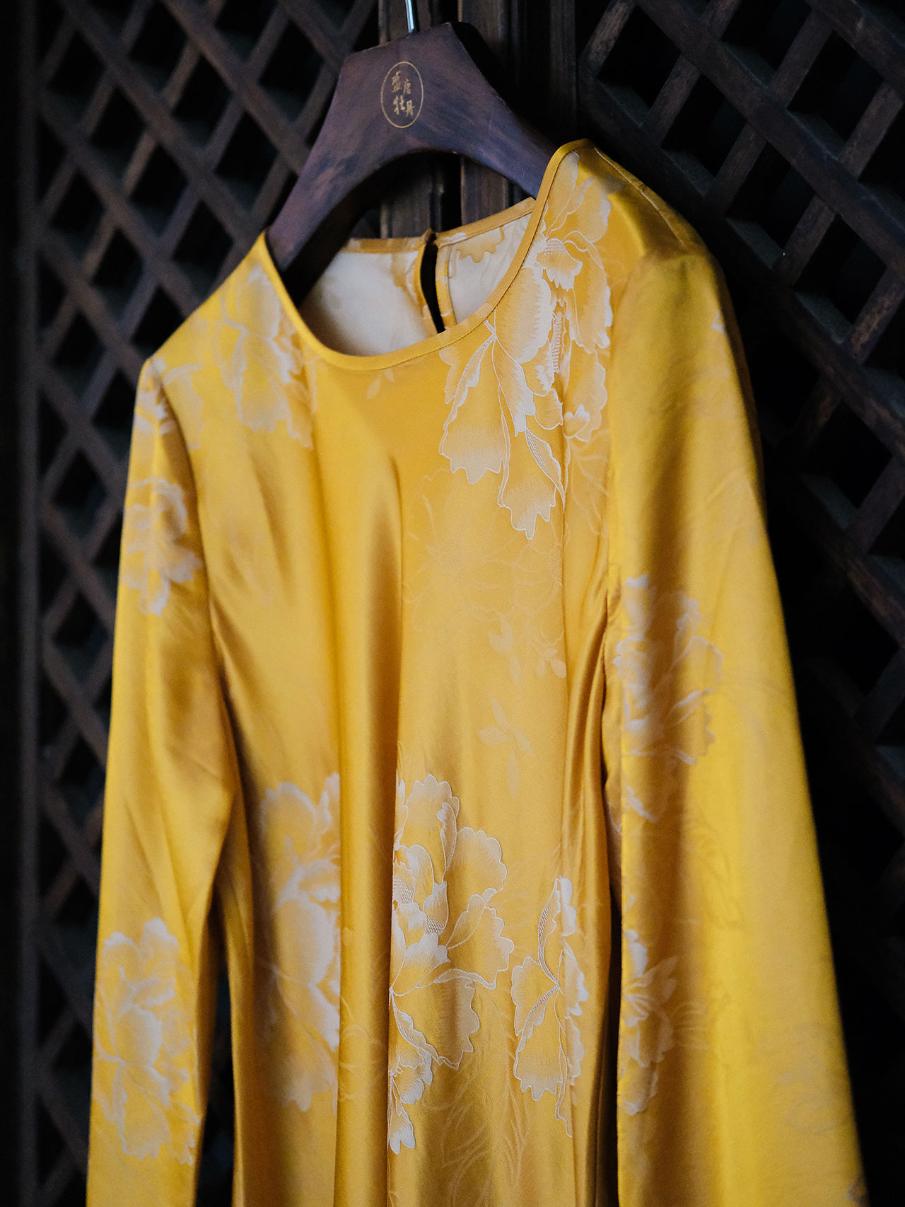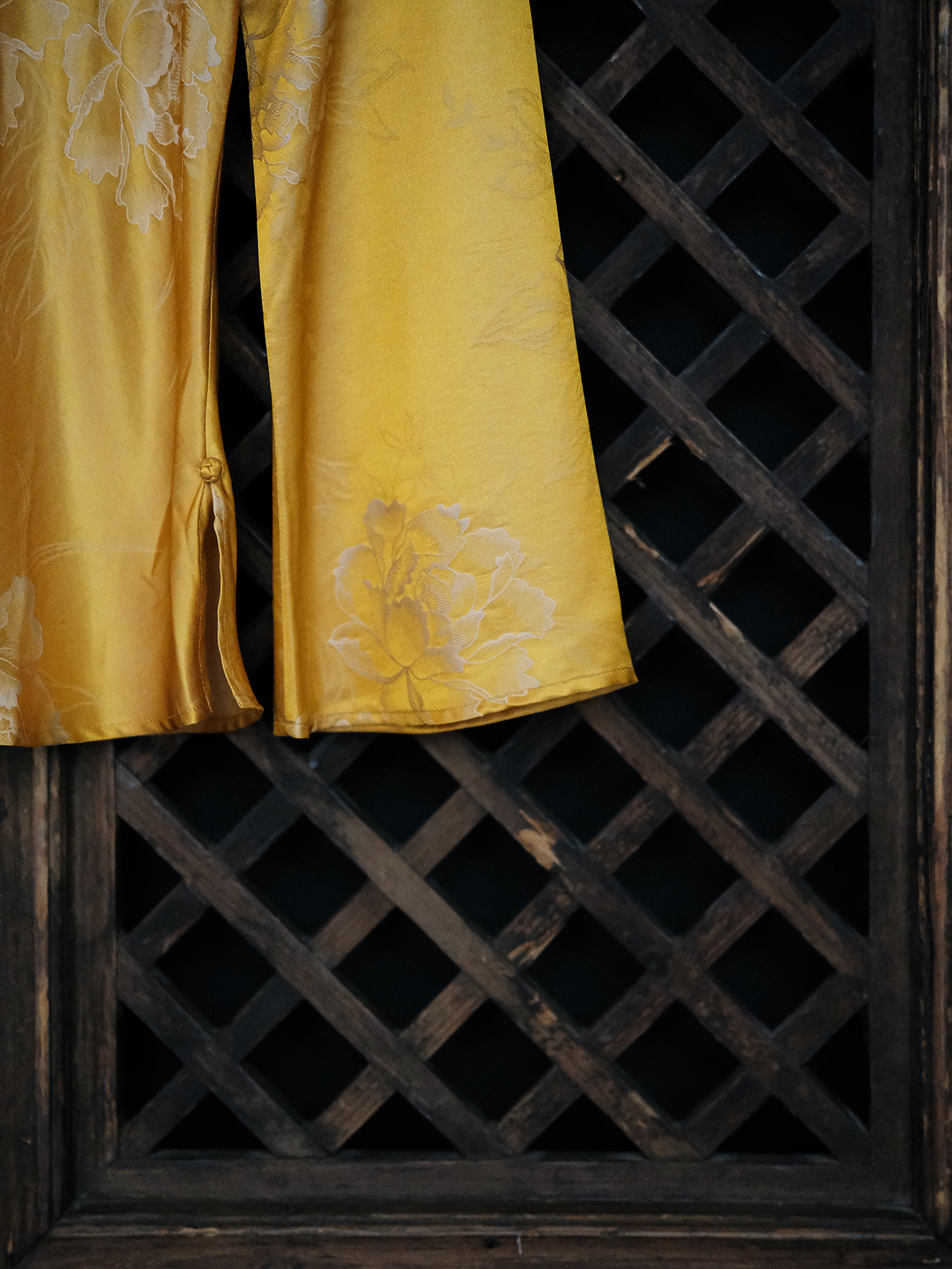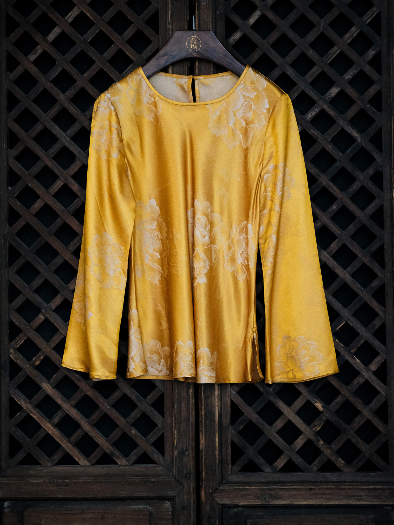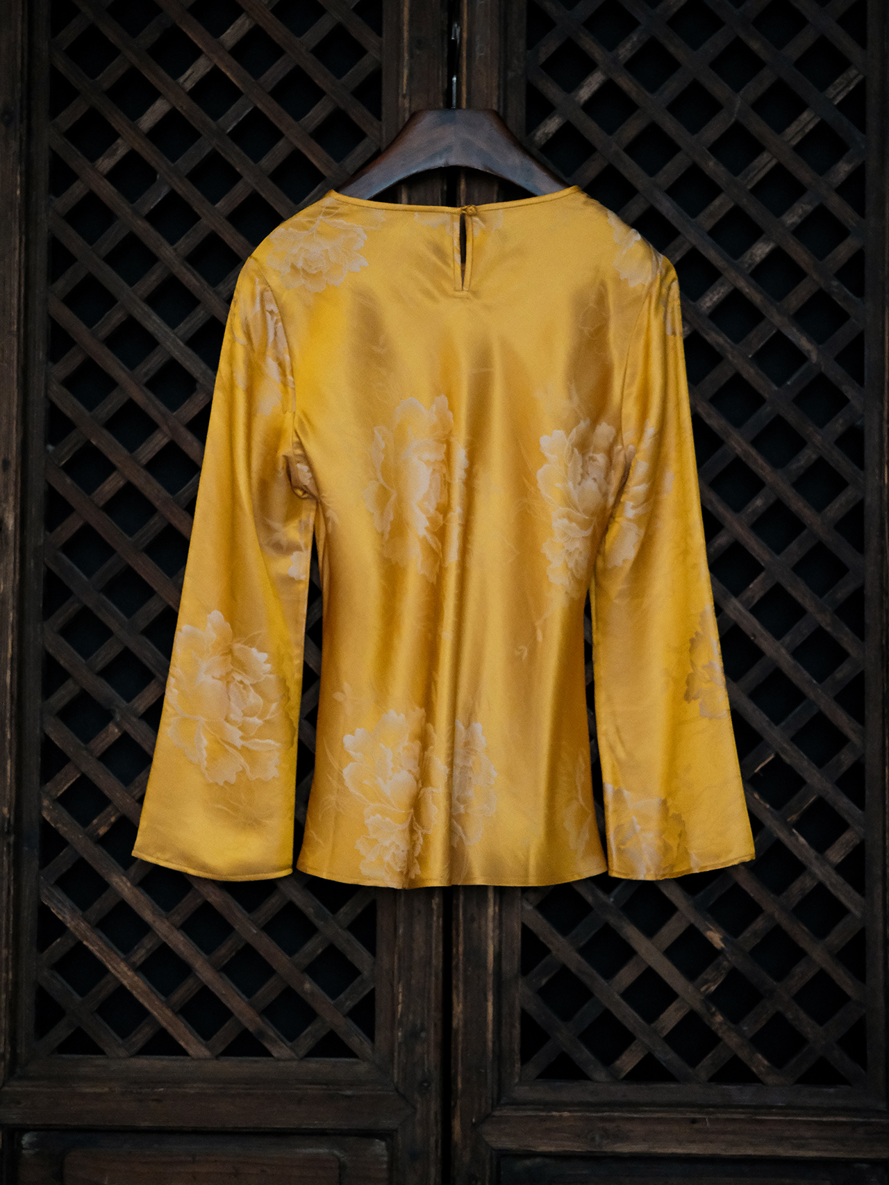 盛唐婧 | 真丝牡丹提花修身国风上衣-黄色