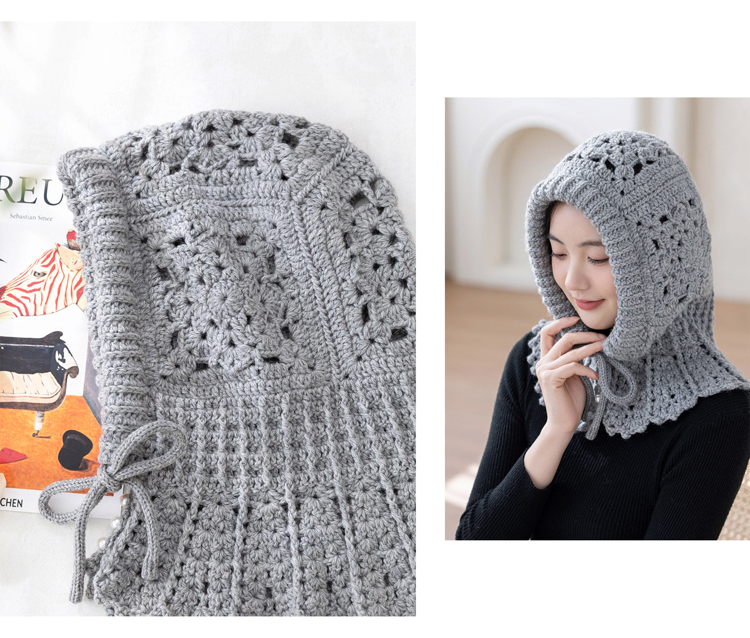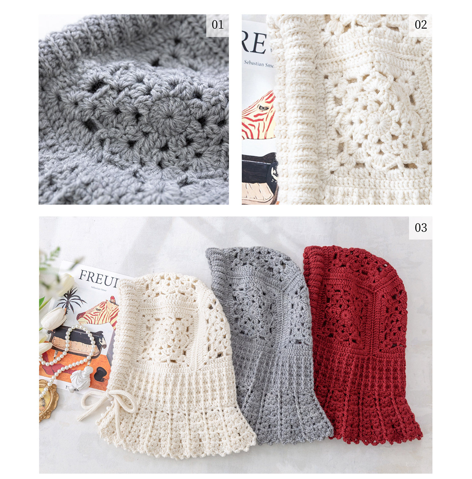 苏苏姐家晴窗候雪拼花帽子手工DIY编织钩针粗羊毛线团材料包