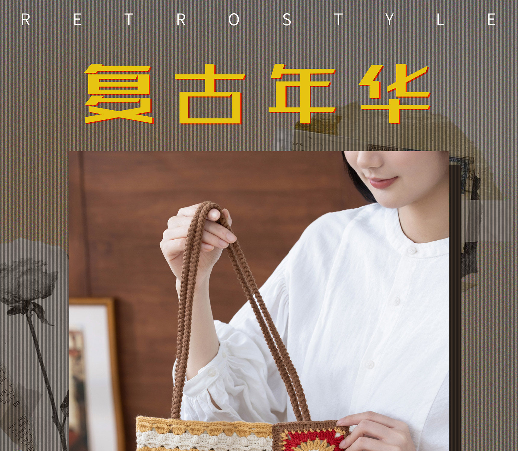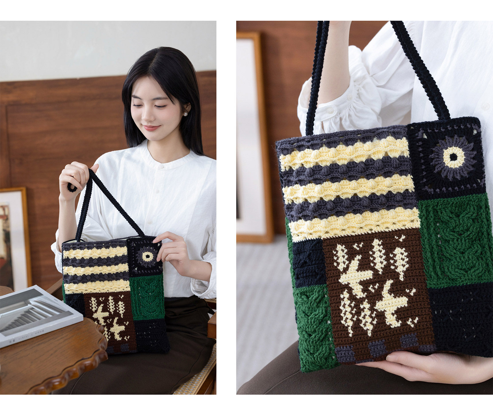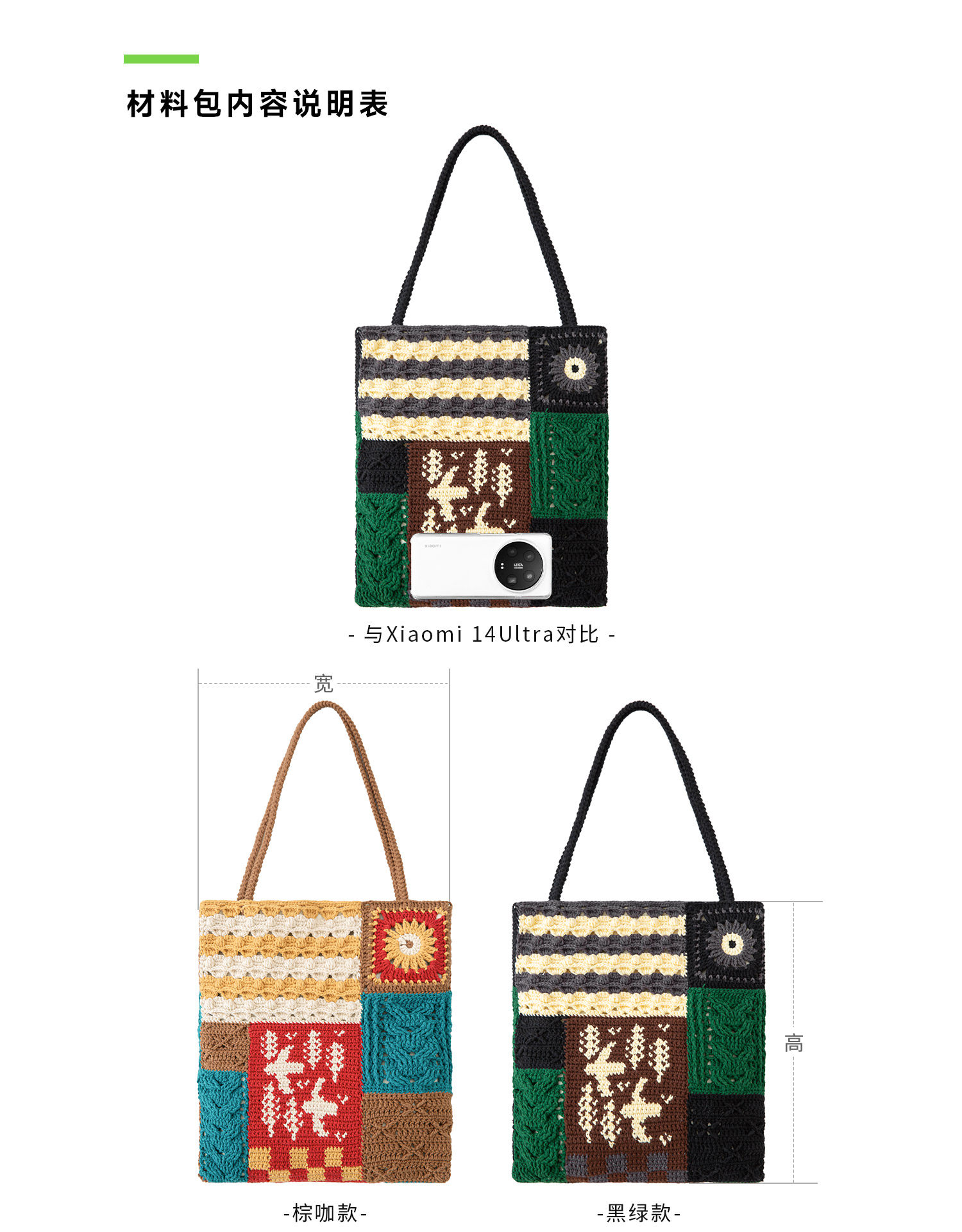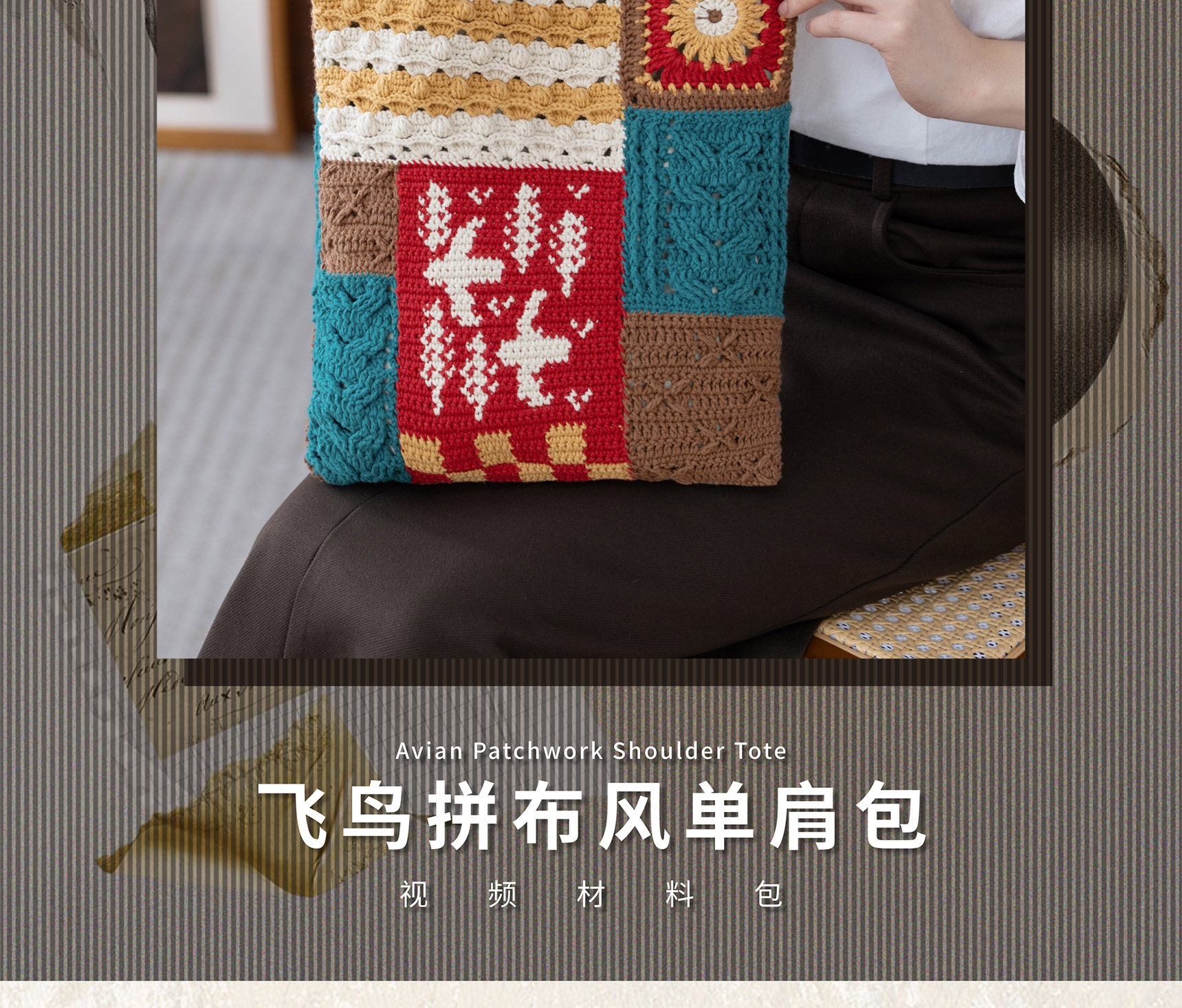 苏苏姐家飞鸟拼布风单肩包手工DIY钩针编织毛线团自制材料包
