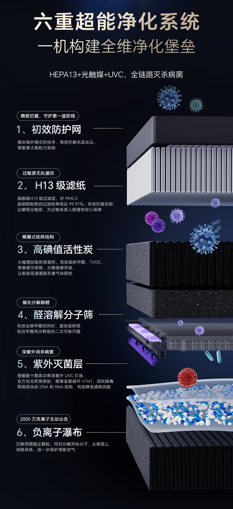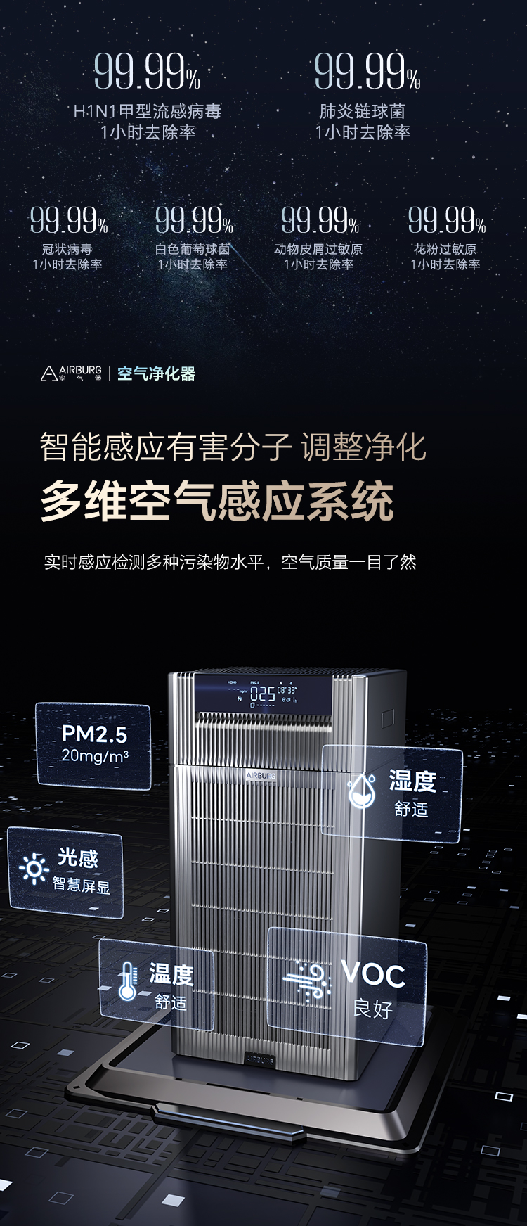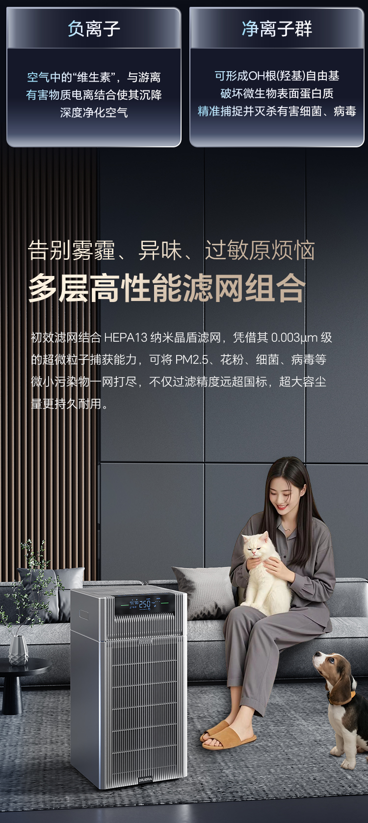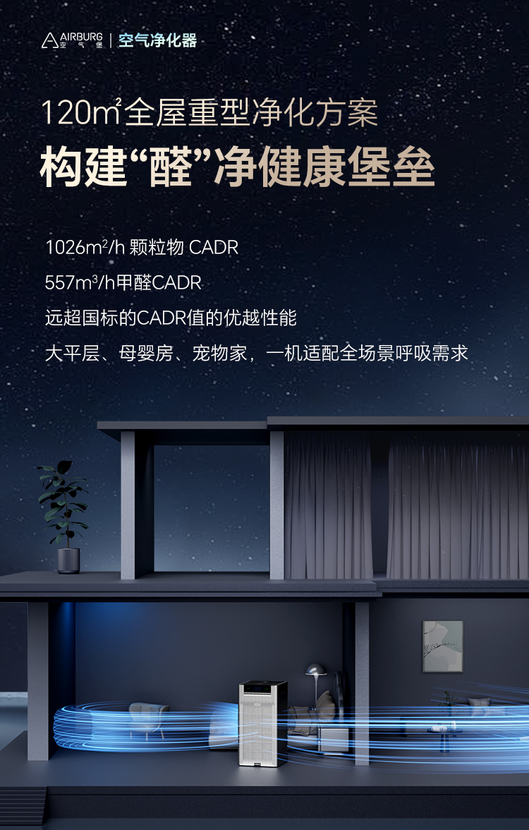 空气堡空气净化器除甲醛异味流感雾霾除菌除过敏认证家用大空间全效P5净化器