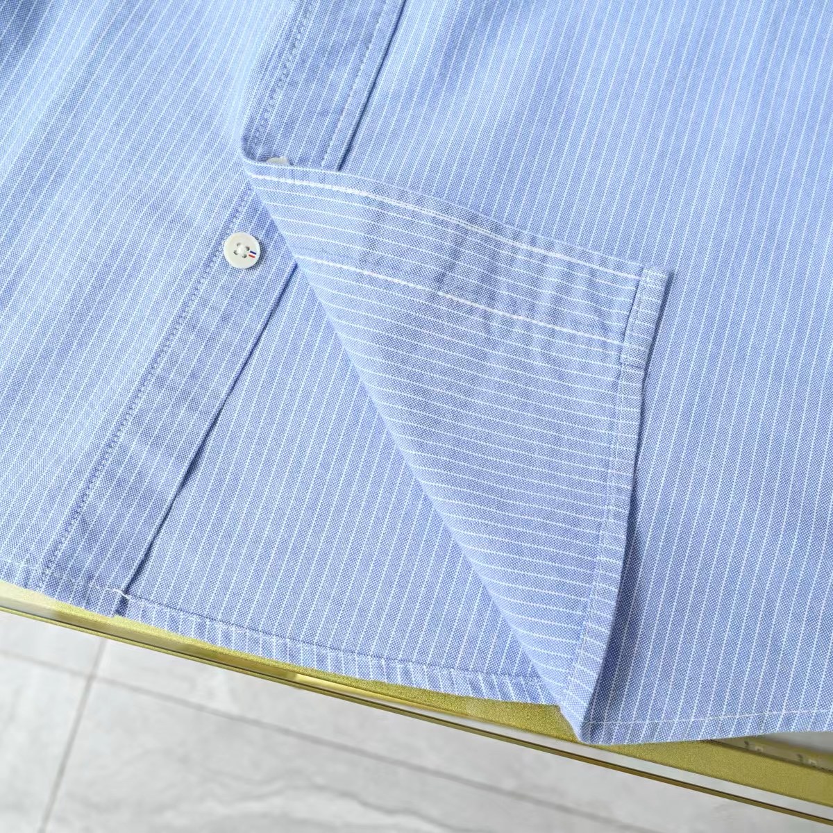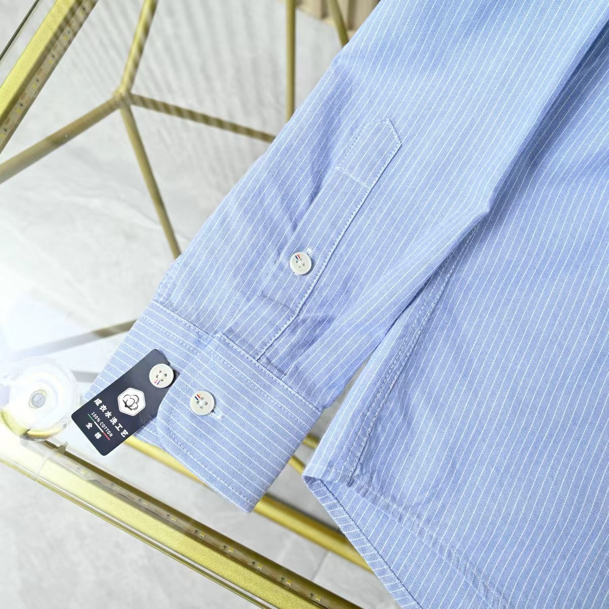 该款衬衫面料和辅料皆为外商客供,经过免烫工艺处理,