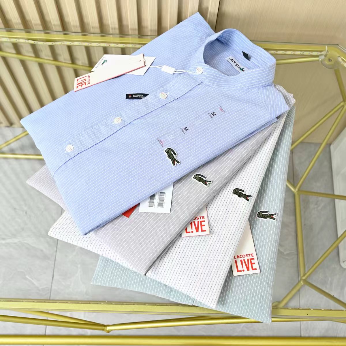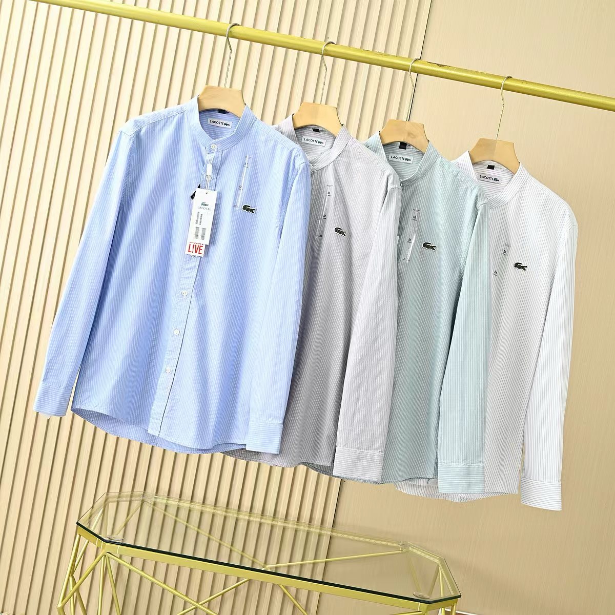 鳄鱼2026男士春季条纹立领纯棉休闲长袖衬衫