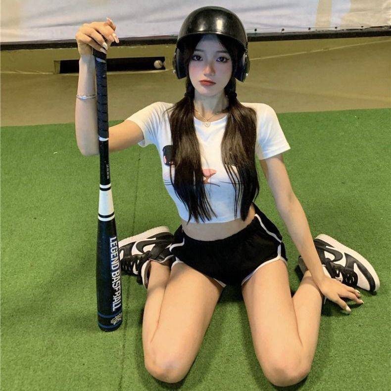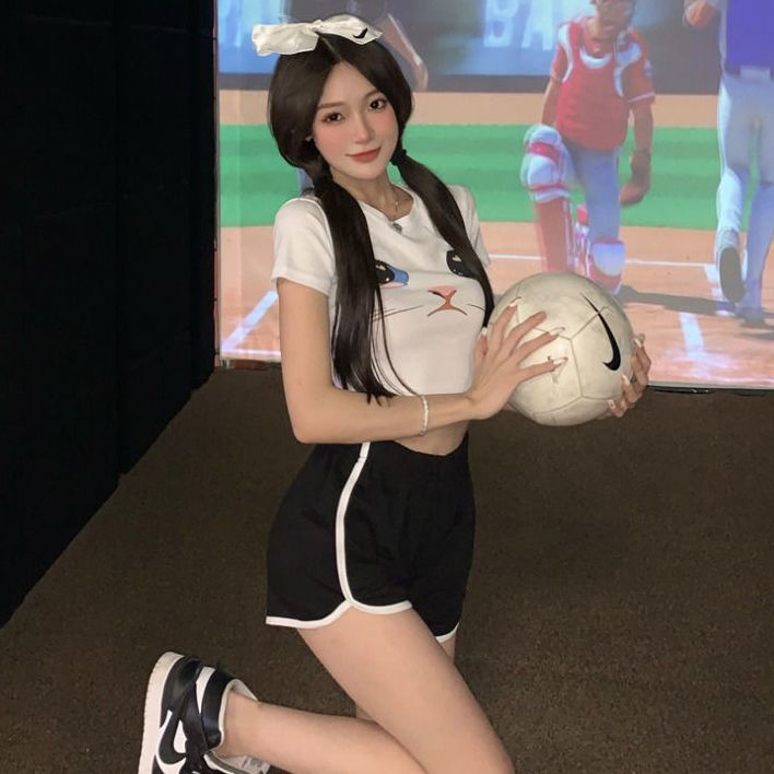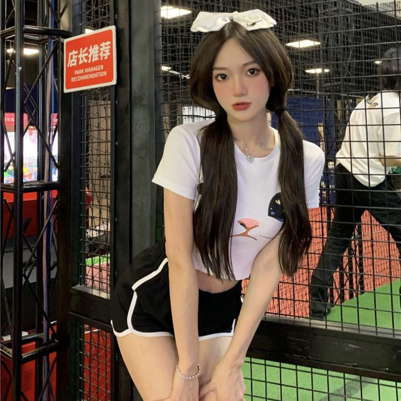 【网红ins超火甜辣风❗️短袖短款T恤女短裤两件套装】跳脱常规的设计感,展现个性态度,演绎新潮范儿,设计感夏装运动套装粉丝专属
