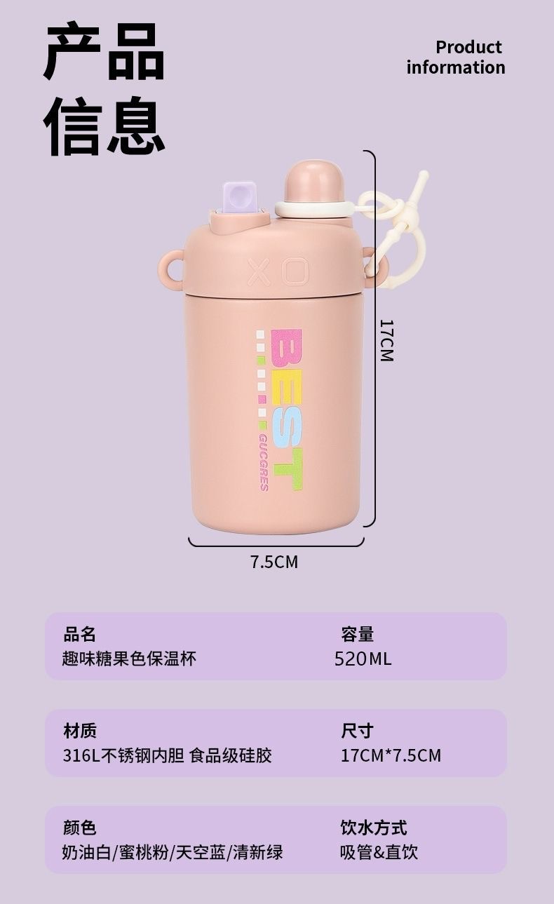 【经典系列!双饮果汁杯】小身材大容量,480ml水能量够喝一整天,316L不锈钢内胆,安全畅饮,儿童便携学生水杯,高颜值316不锈钢杯子L