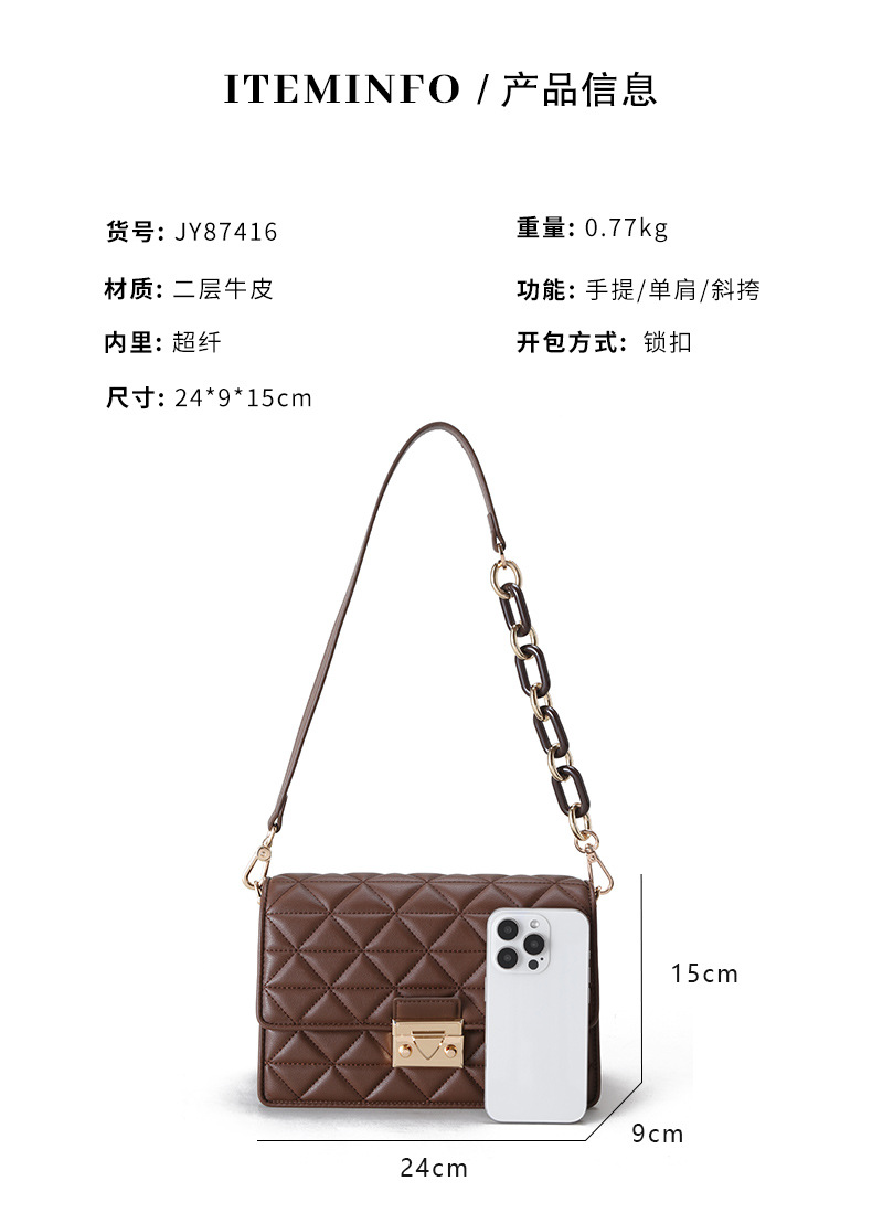 【预售3天】新款小众高级感韩系小香风菱格链条腋下小方包单肩斜挎包女包JY87416
