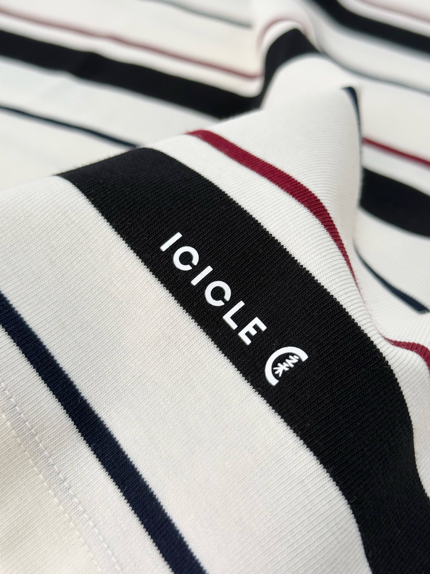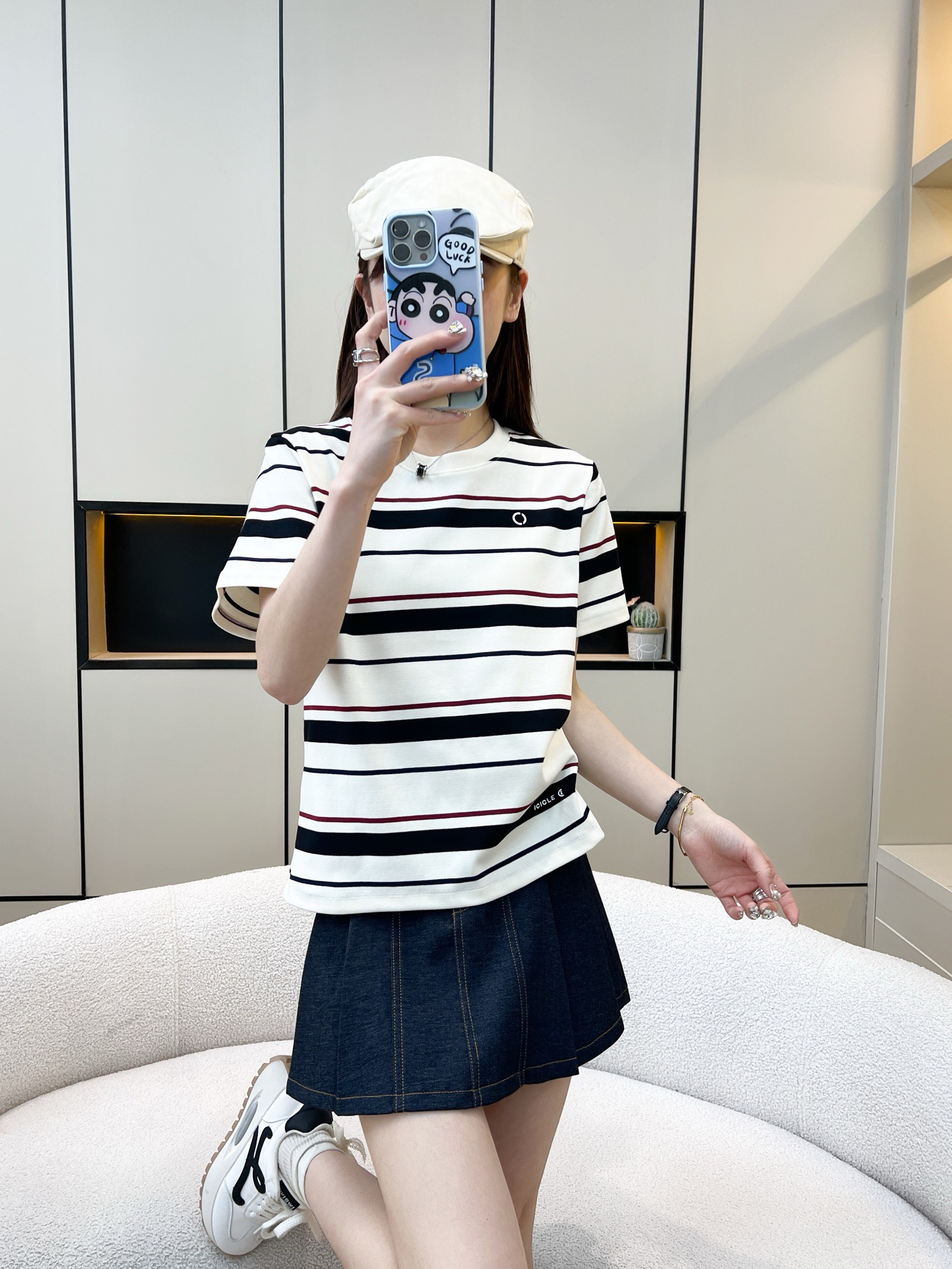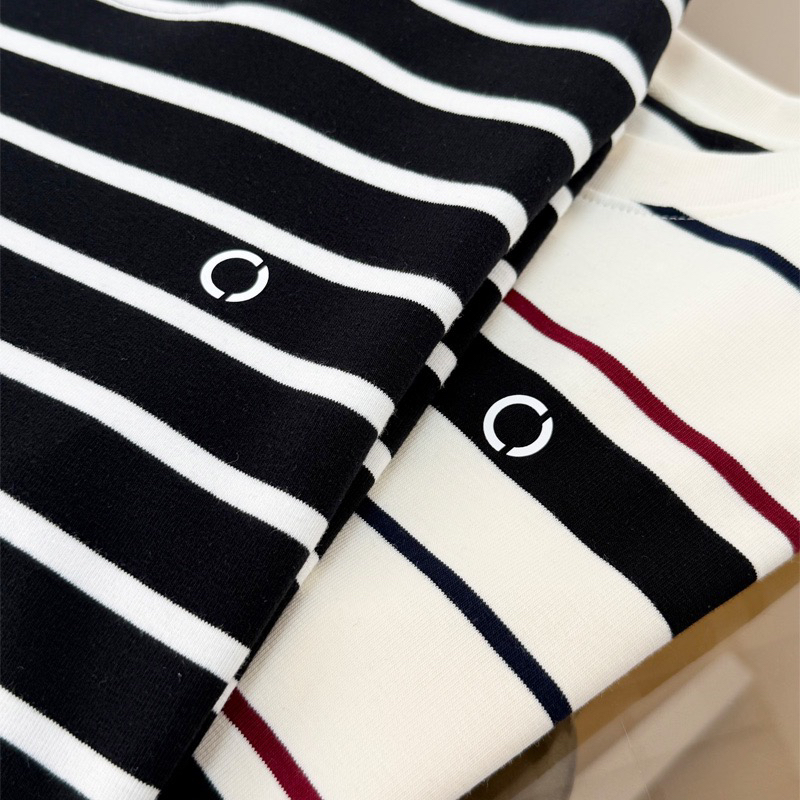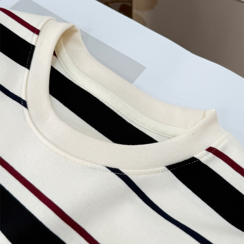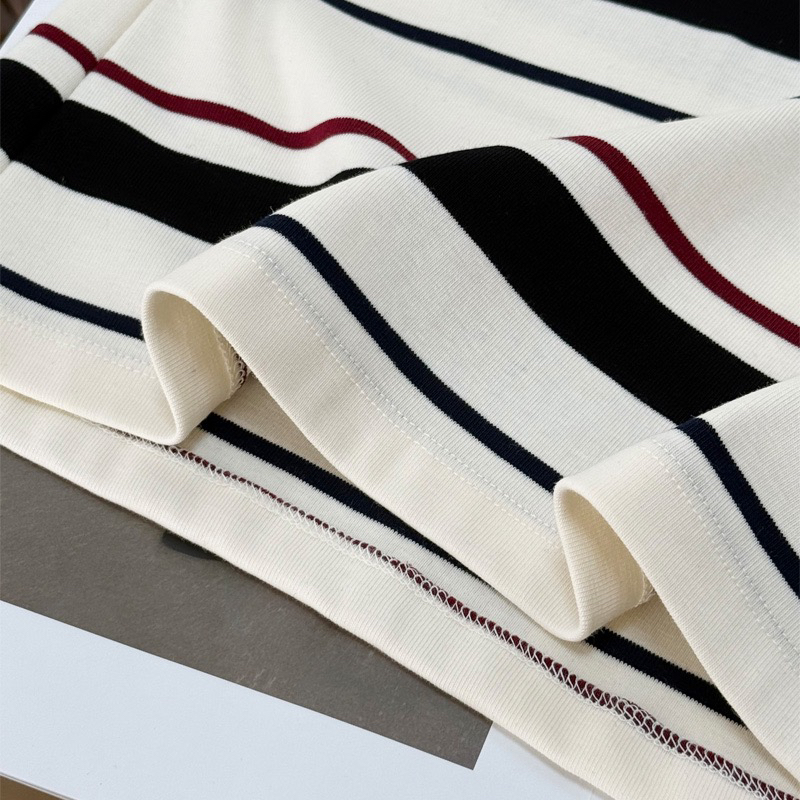 IC之禾 极简黑白条纹撞色百搭 圆领棉弹螺纹撞色短袖T恤
