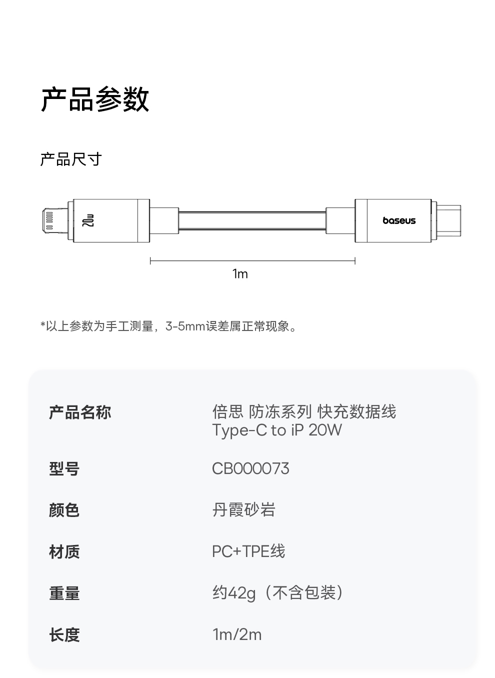 倍思 防冻系列 快充数据线 Type-C to iP 20W