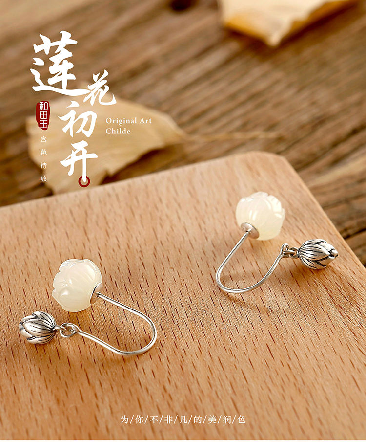 莲花925银莲子复古民族风个性百搭气质耳钉