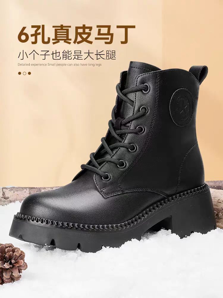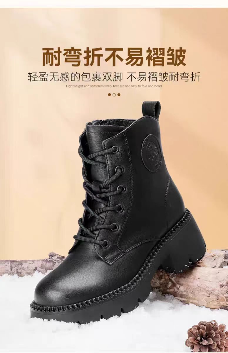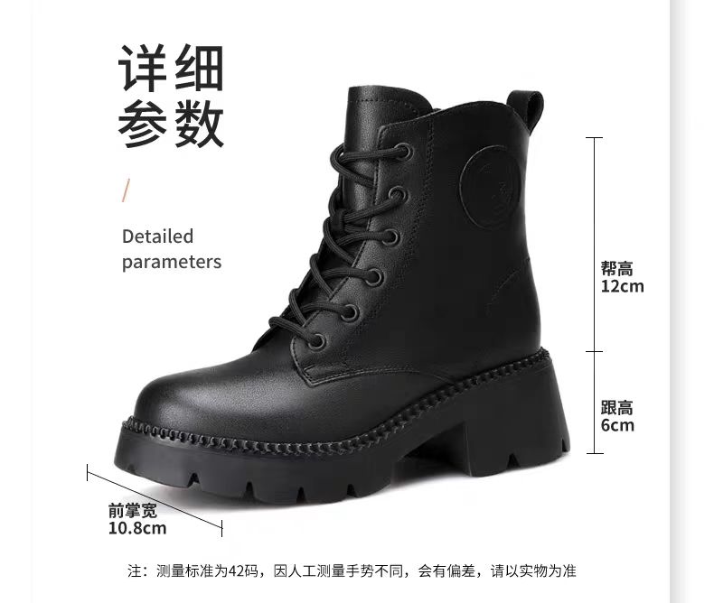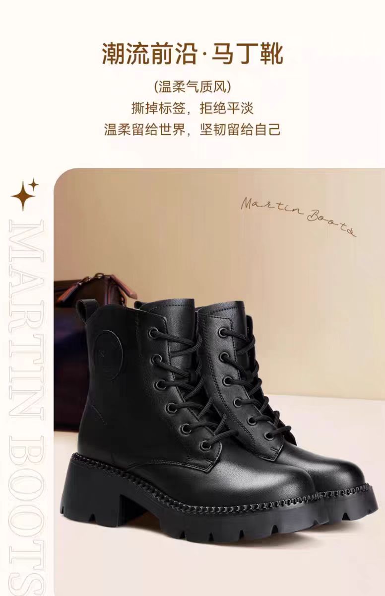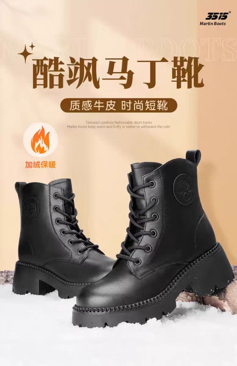 【3515强人冬季加绒女款马丁靴】女款加绒牛皮粗跟马丁靴3515