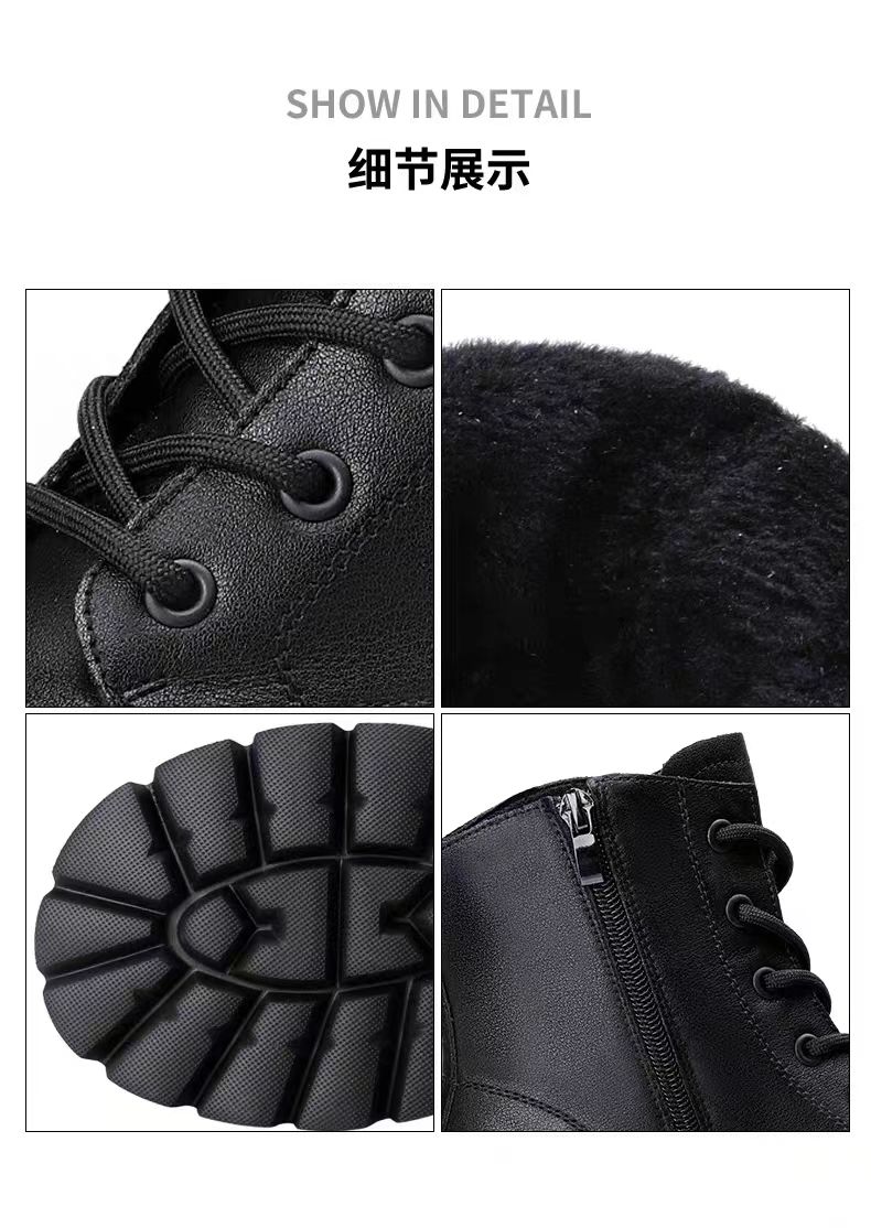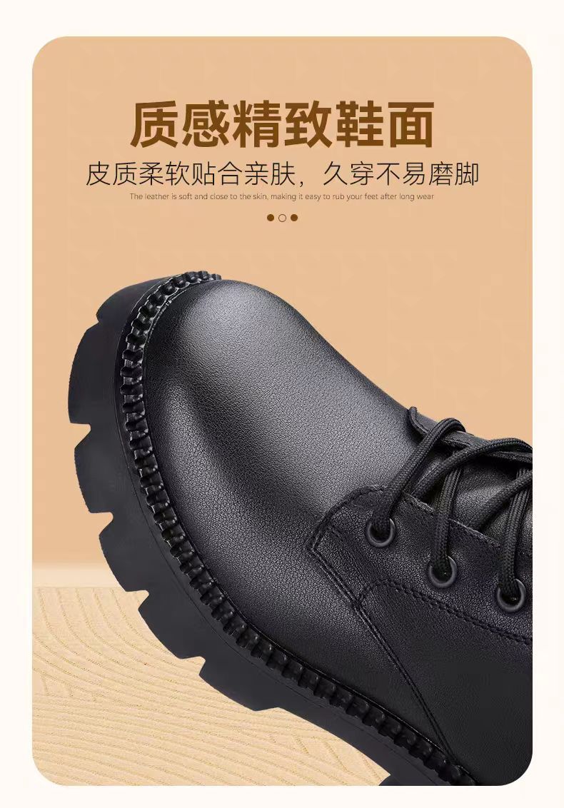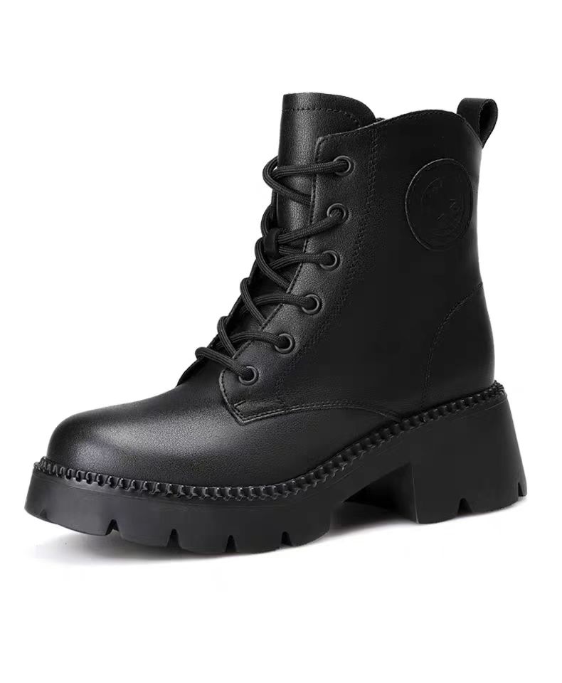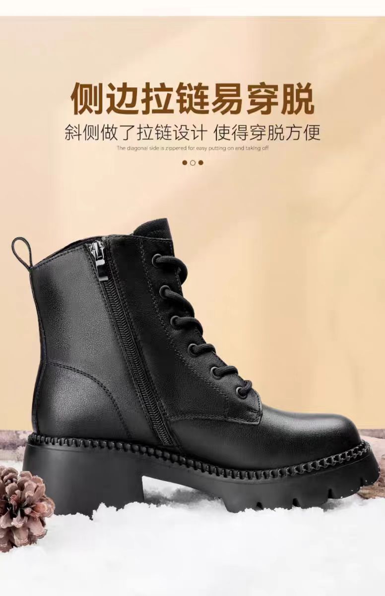 【3515强人冬季加绒女款马丁靴】女款加绒牛皮粗跟马丁靴3515