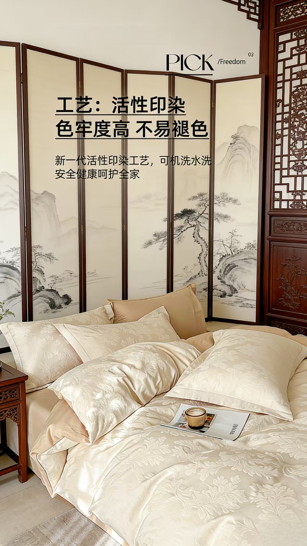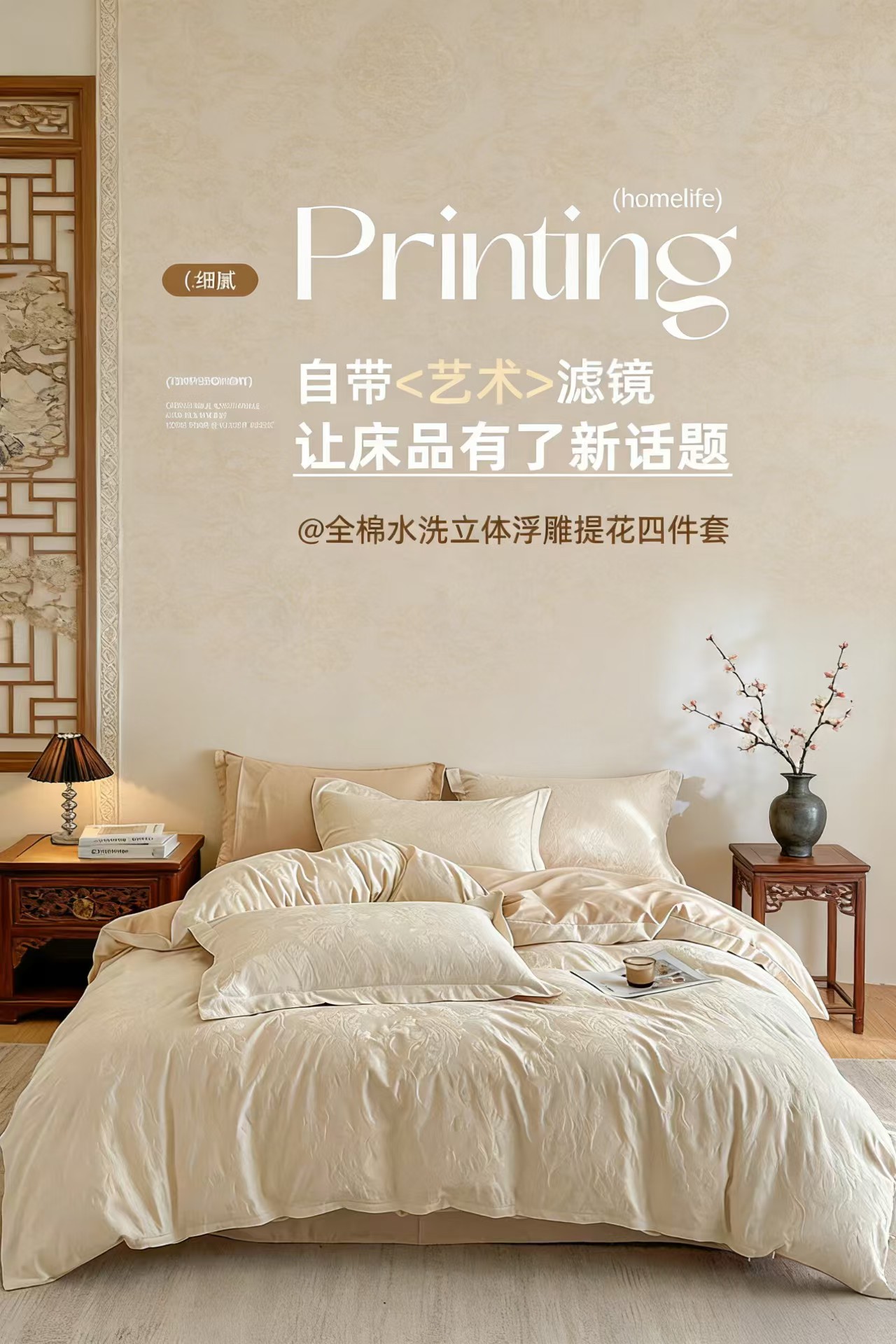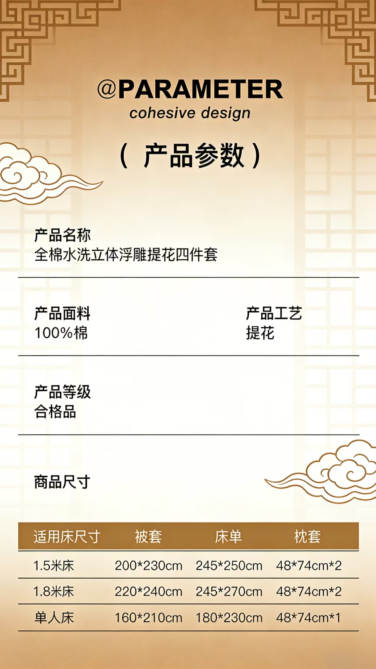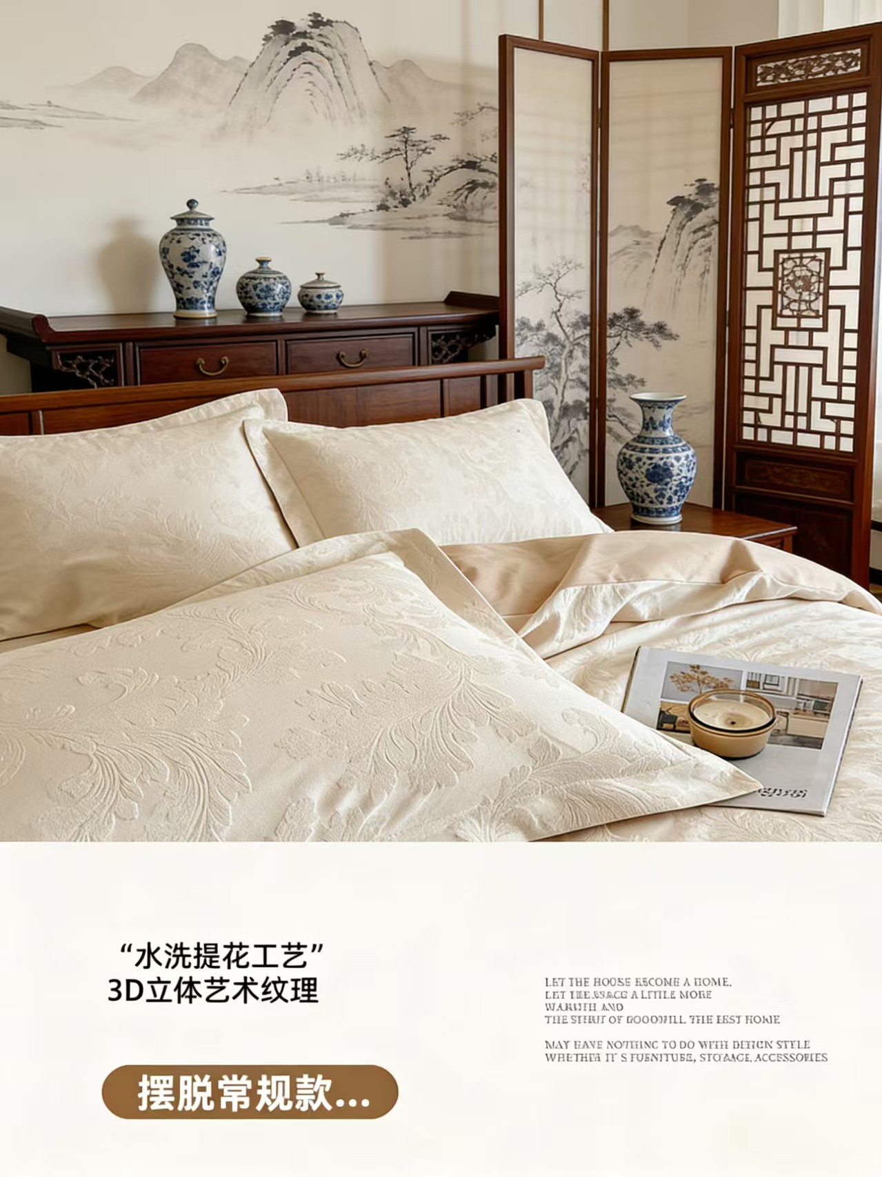 丝韵轩 全棉水洗立体浮雕提花四件套