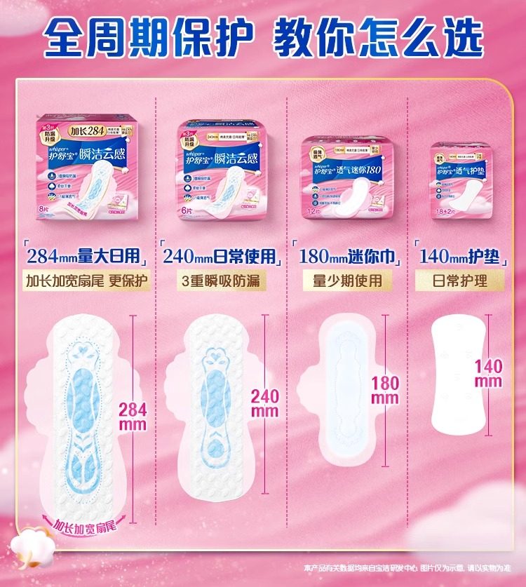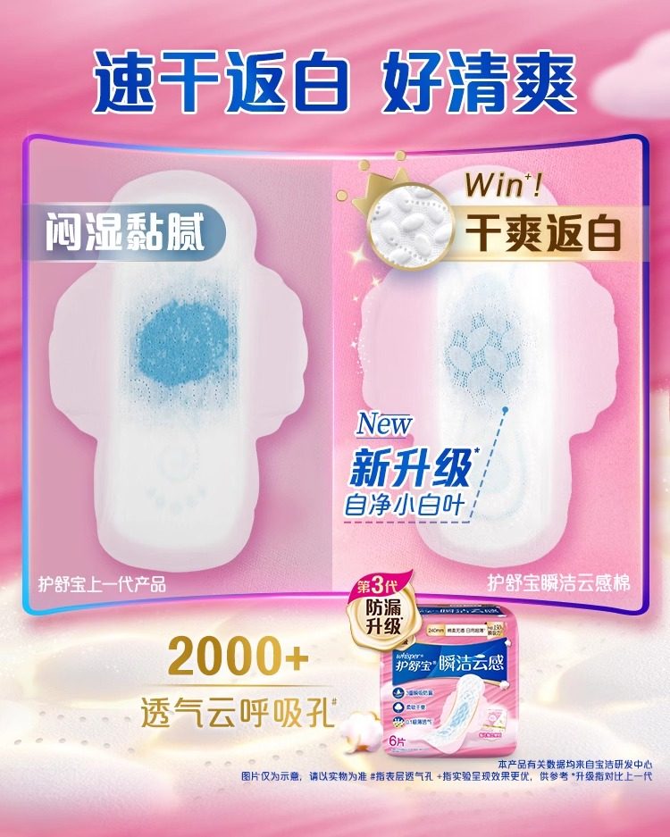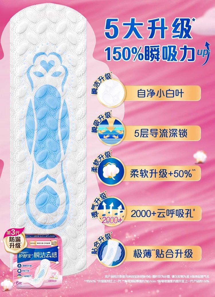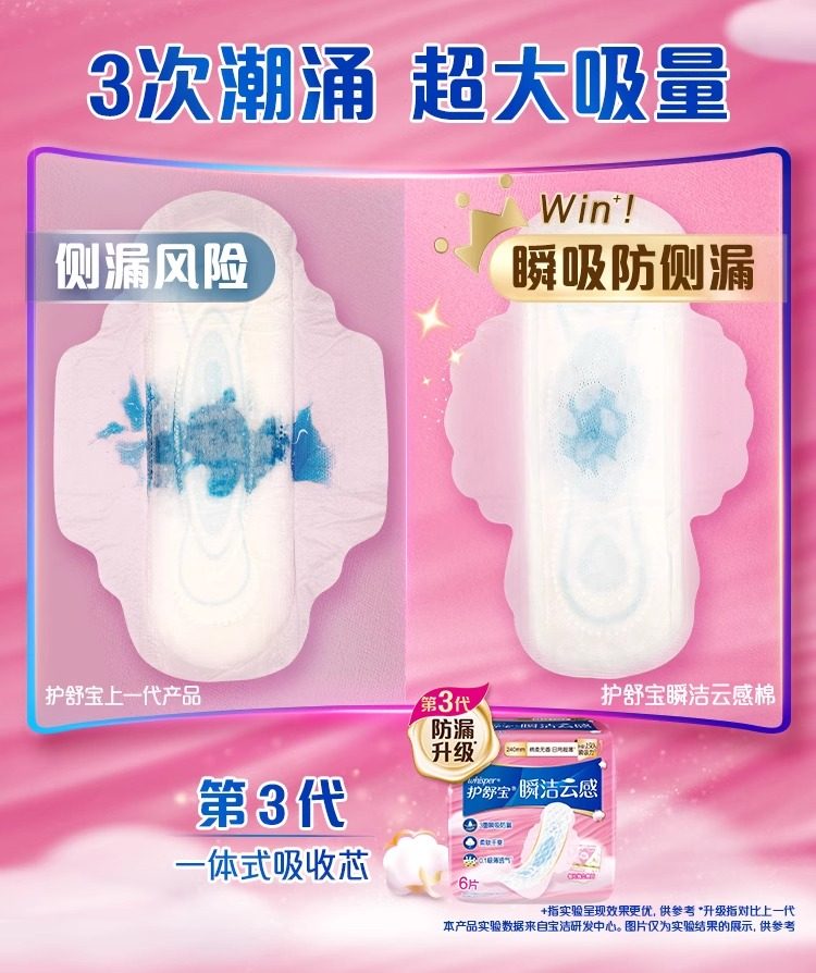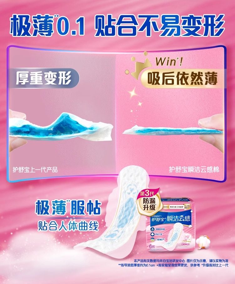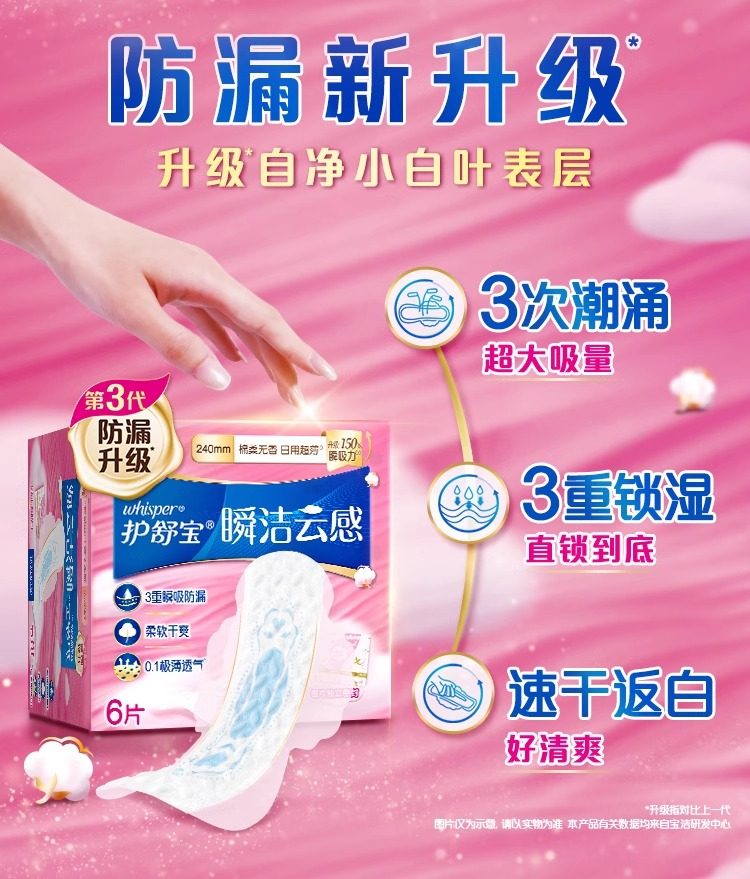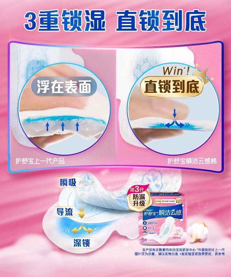 护舒宝卫生巾240mm6片瞬洁云感姨薄款姨妈巾透气瞬吸