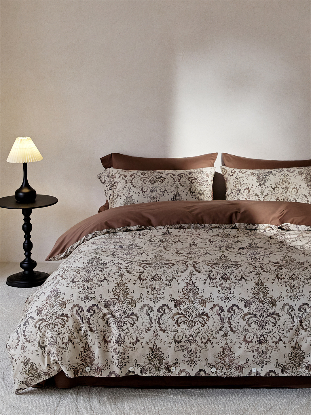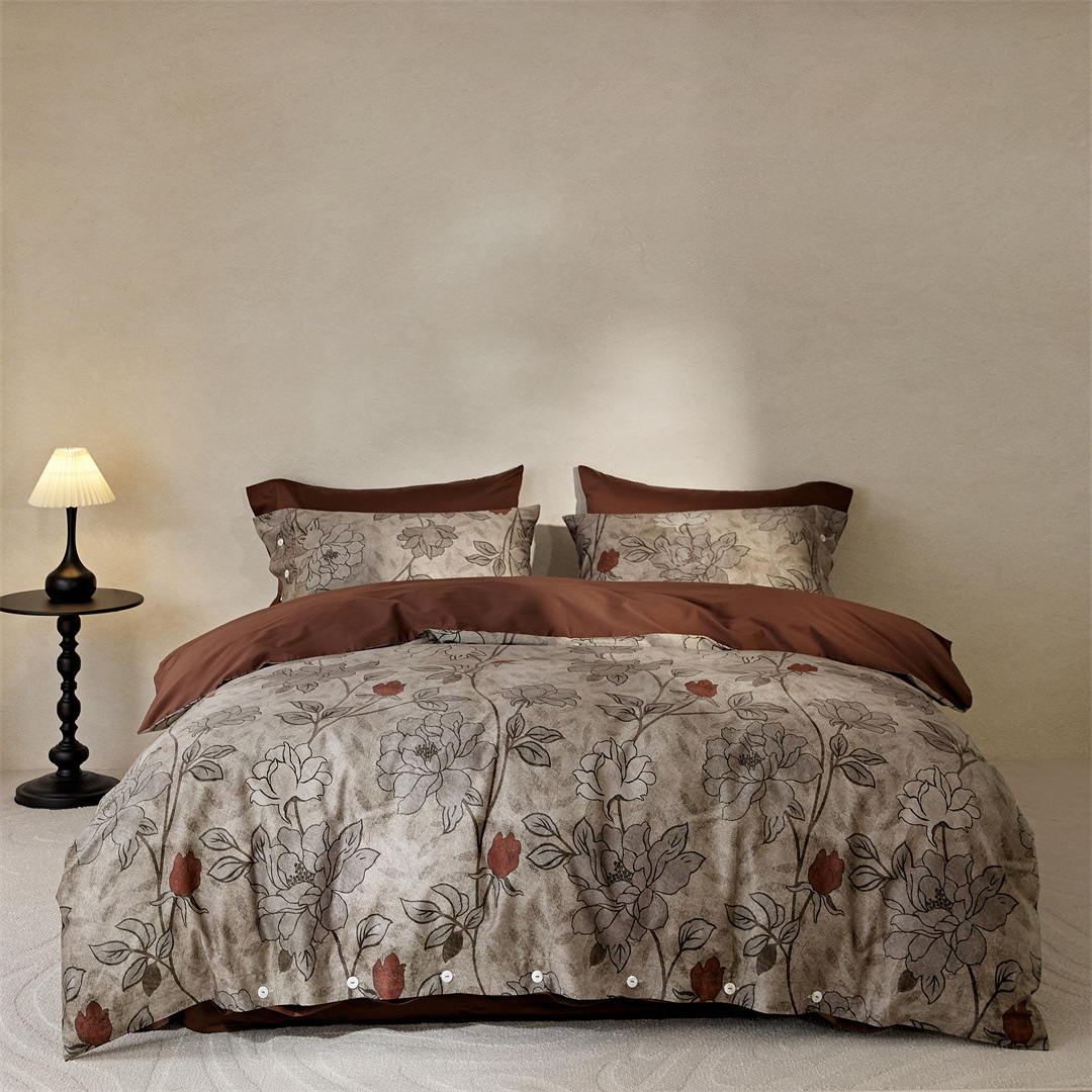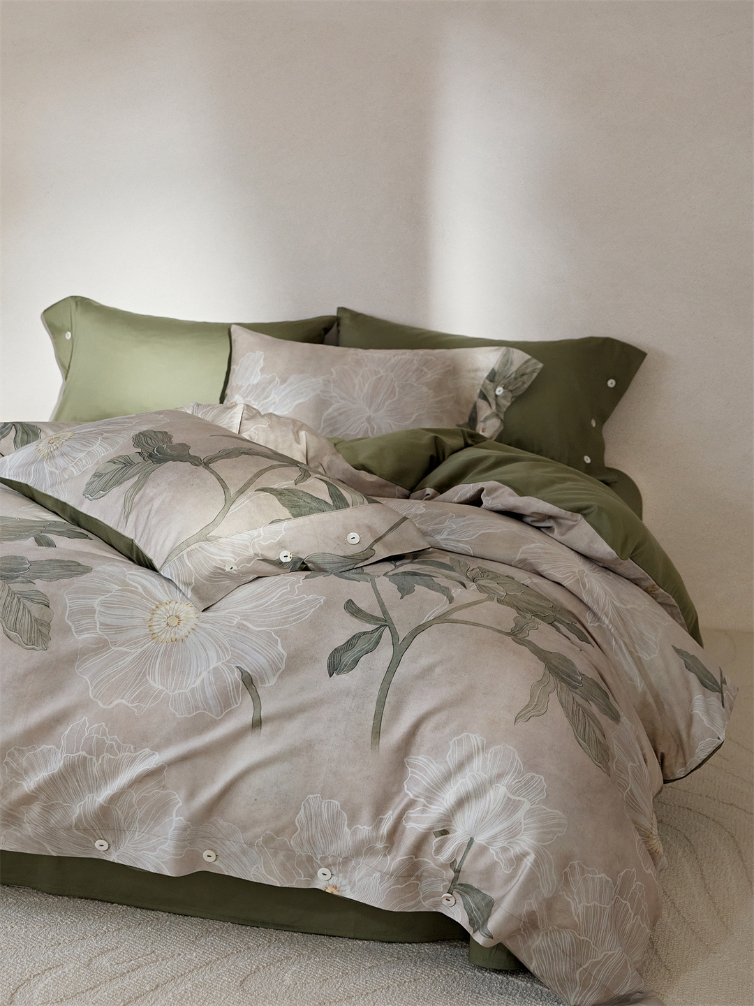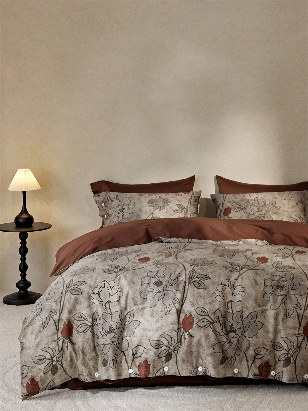 2025春季 美式复古风花卉长绒棉新品发布甄选新疆长绒棉贡缎面料,柔软细腻,光泽度加倍,四季皆宜,尽显奢华感。让睡眠充满了精致感。数码印花工艺,环保健康且色牢度高。手工缝制纽扣工艺,简约而不简单。轻奢与生俱来的气质,在每一个轻微细节处精致的体现,立马提升卧室的格调。