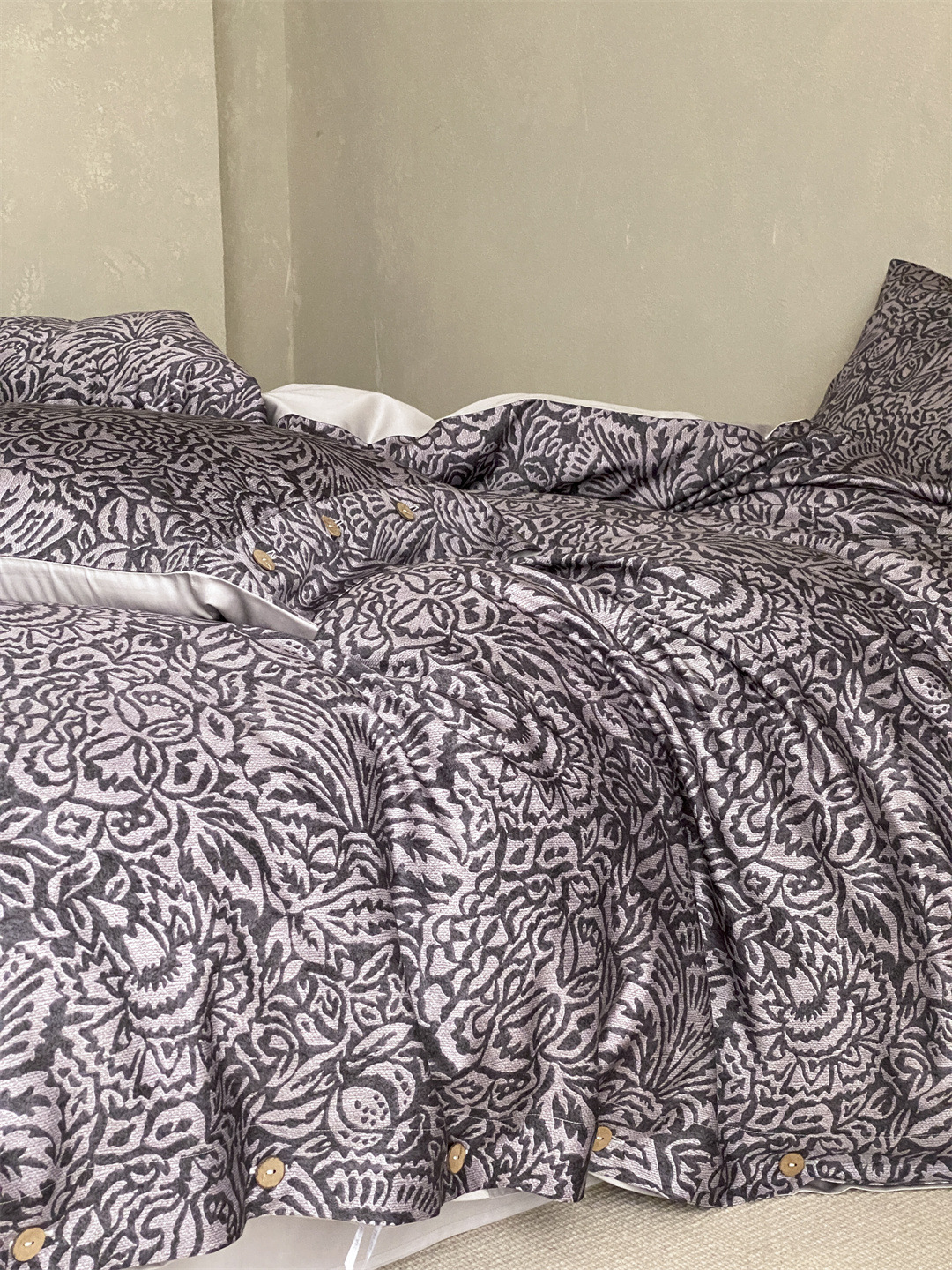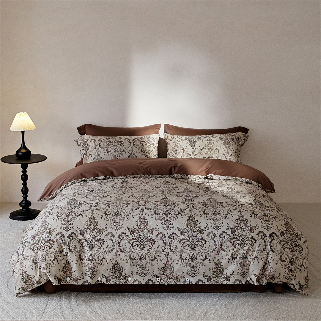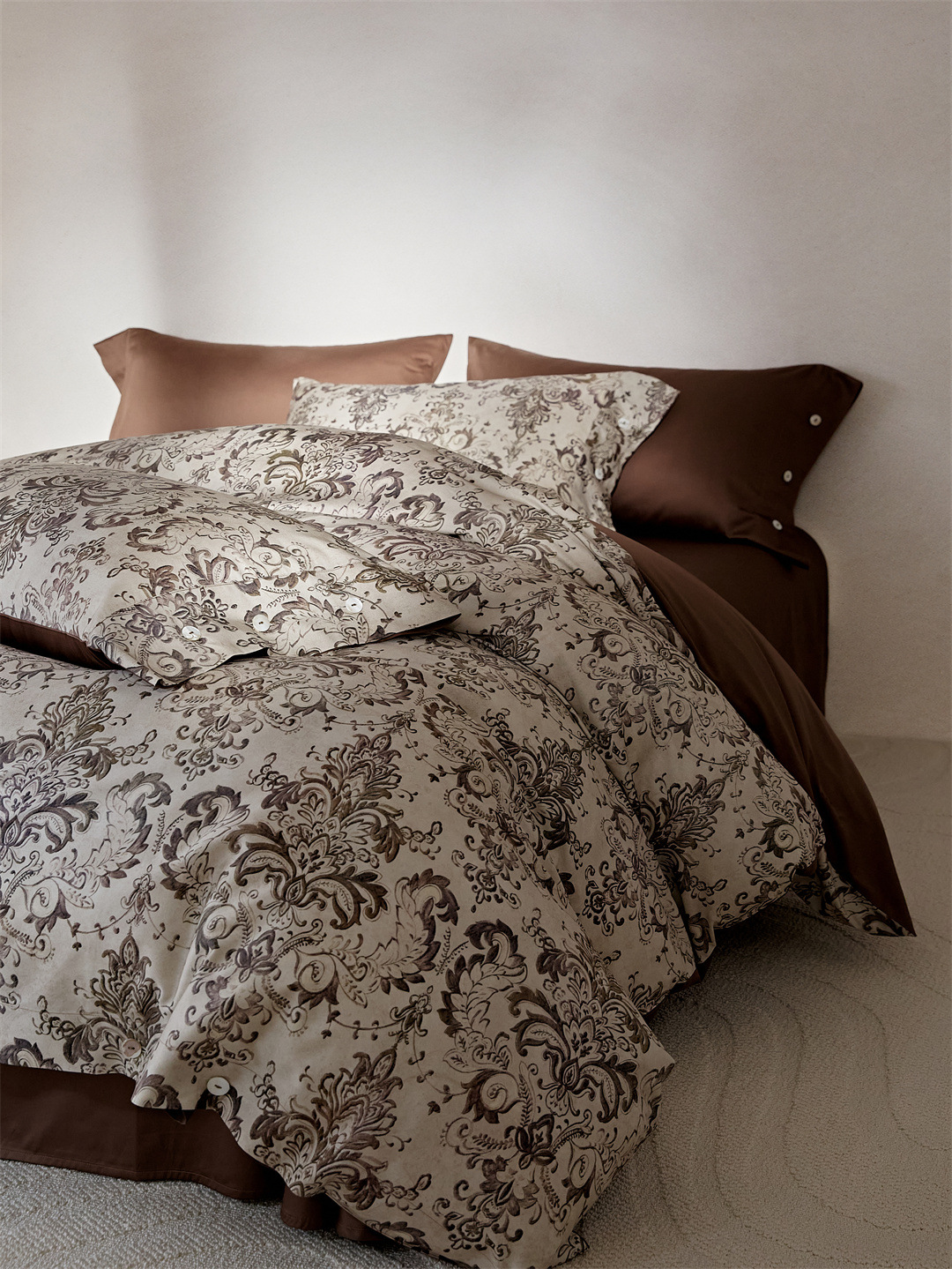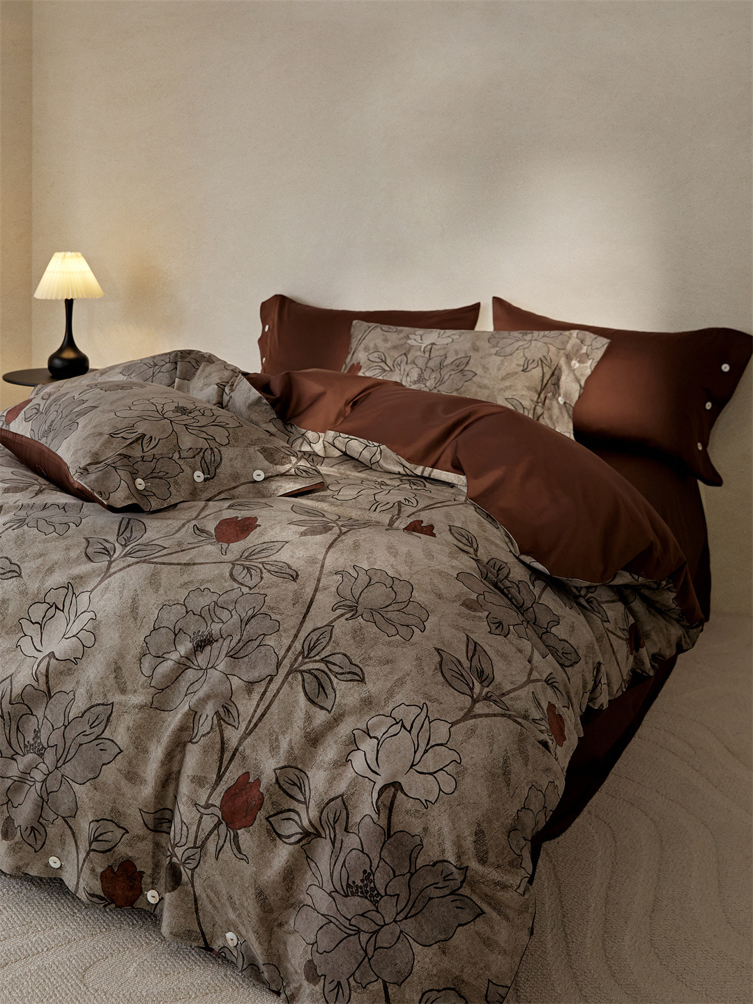 2025春季 美式复古风花卉长绒棉新品发布甄选新疆长绒棉贡缎面料,柔软细腻,光泽度加倍,四季皆宜,尽显奢华感。让睡眠充满了精致感。数码印花工艺,环保健康且色牢度高。手工缝制纽扣工艺,简约而不简单。轻奢与生俱来的气质,在每一个轻微细节处精致的体现,立马提升卧室的格调。