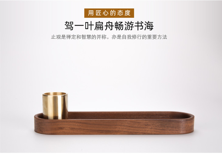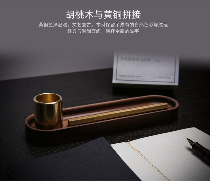 西泠印社 止观文具 创意胡桃木黄铜拼接桌面笔筒收纳整理工具