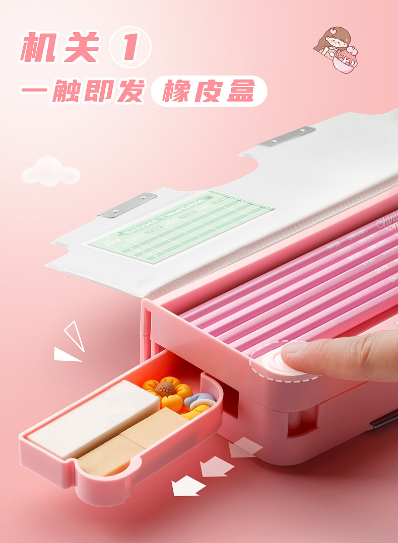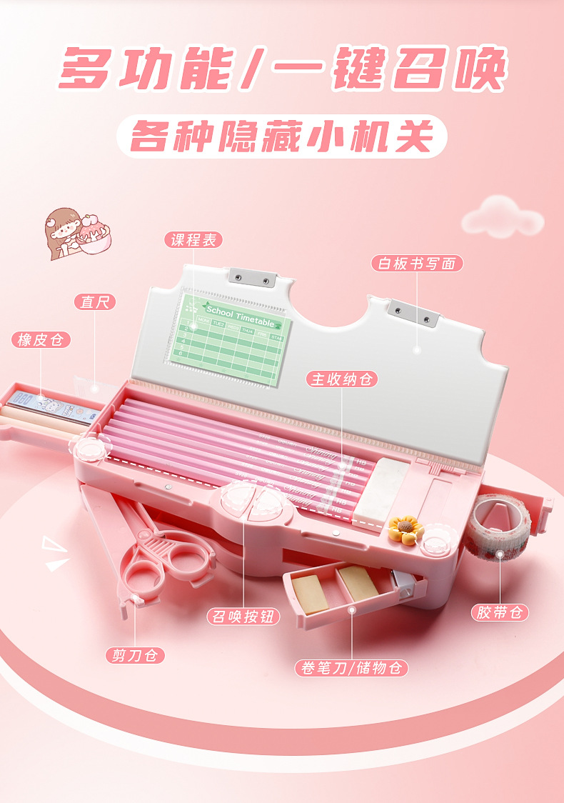 【开学季🔥多功能笔盒】容量再升级,黑科技铅笔盒,各种隐藏小机关,一键启用,卡通文具盒儿童高级感网红大容量收纳盒QQ