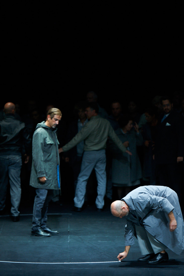 回顾Raimund Orfeo Voigt2018年的作品,你会发现他最大的特点就是在舞台上做“减法”。粉笔画个圆圈、毫无装饰的窗户,都可能是他舞台上的主角。