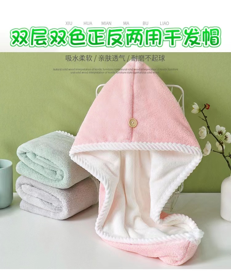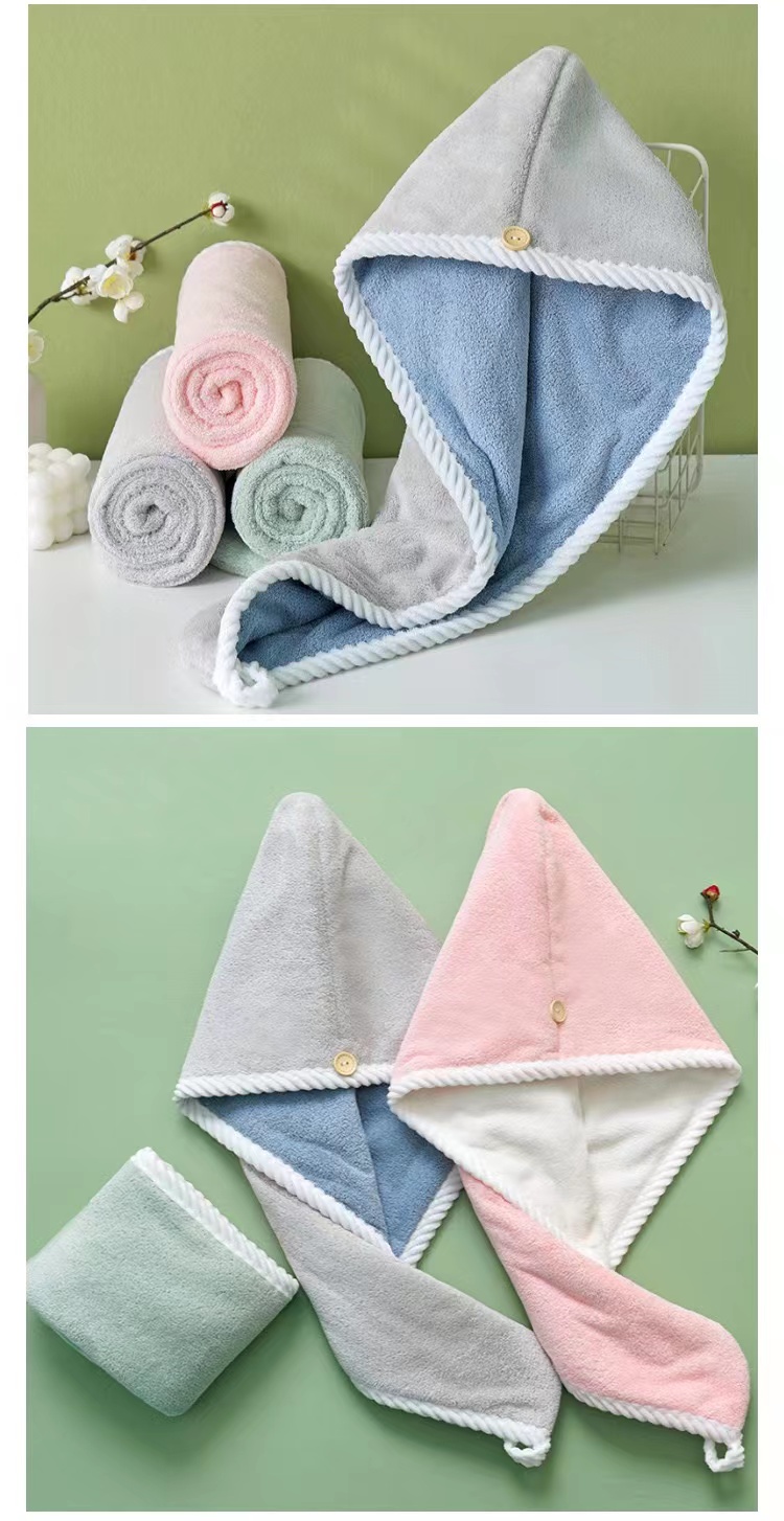 【买一送一,下单前200名再送毛巾一条】 双层珊瑚绒撞色干发帽 | 蓬松柔软 吸湿透气 不易掉毛