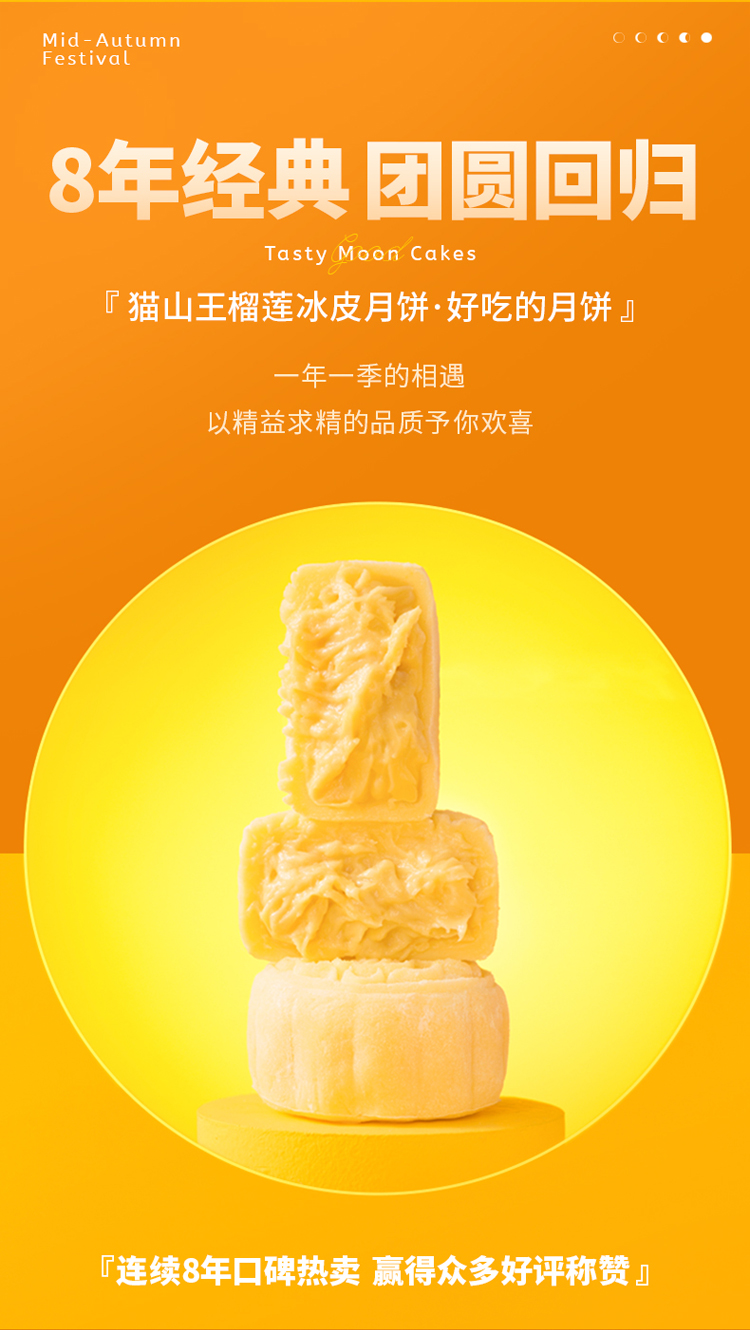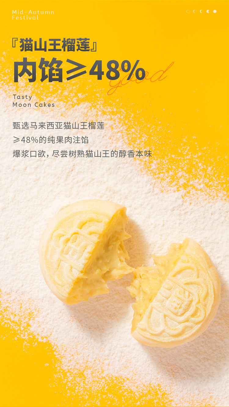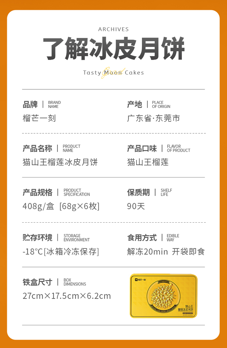 【榴芒一刻猫山王冰皮月饼】猫山王尊享装 榴莲控高端定制,连续8年口碑热卖,自然熟马来西亚猫山王果肉含量超48%,馥郁香甜,奶酪般绵密细腻,纯手工捶打4mm冰皮 冰糯拉丝,中秋送礼