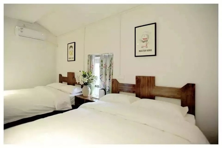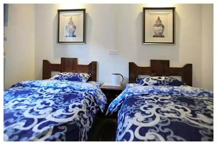 此次行程我们两晚住在镇内的同一家客栈,方便大家出行游玩。走进客栈,桌椅是木质的,砖石砌的墙,暖黄的灯光很有格调。客栈的房间风格多样▼
