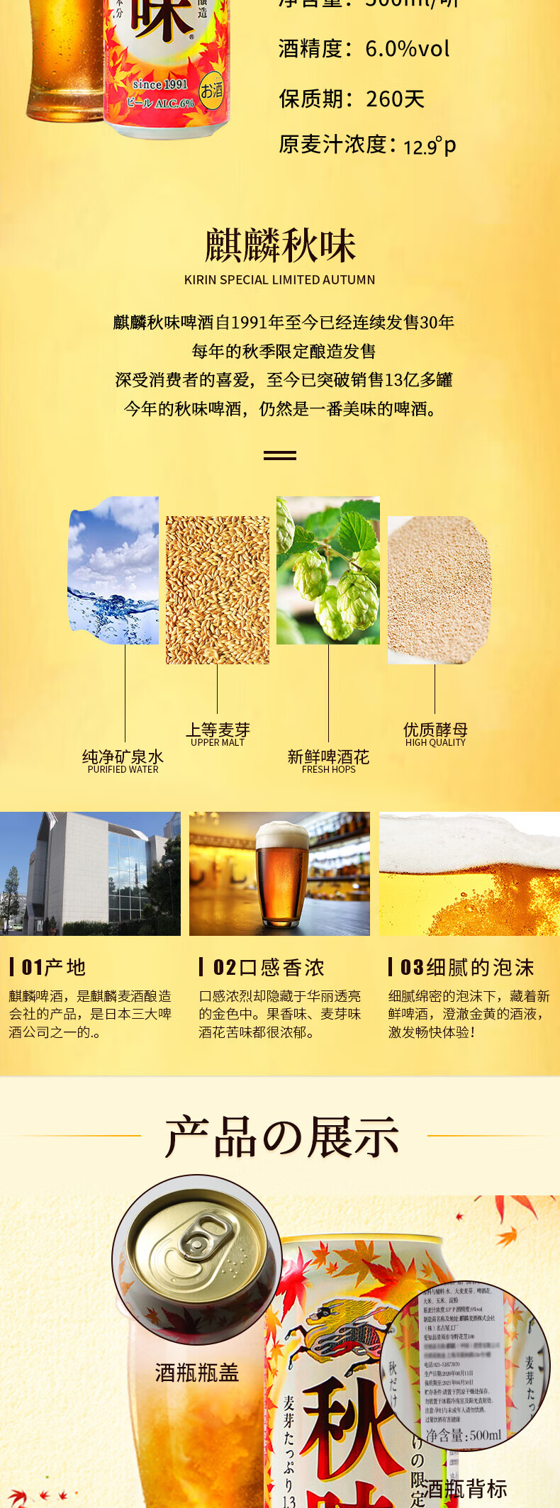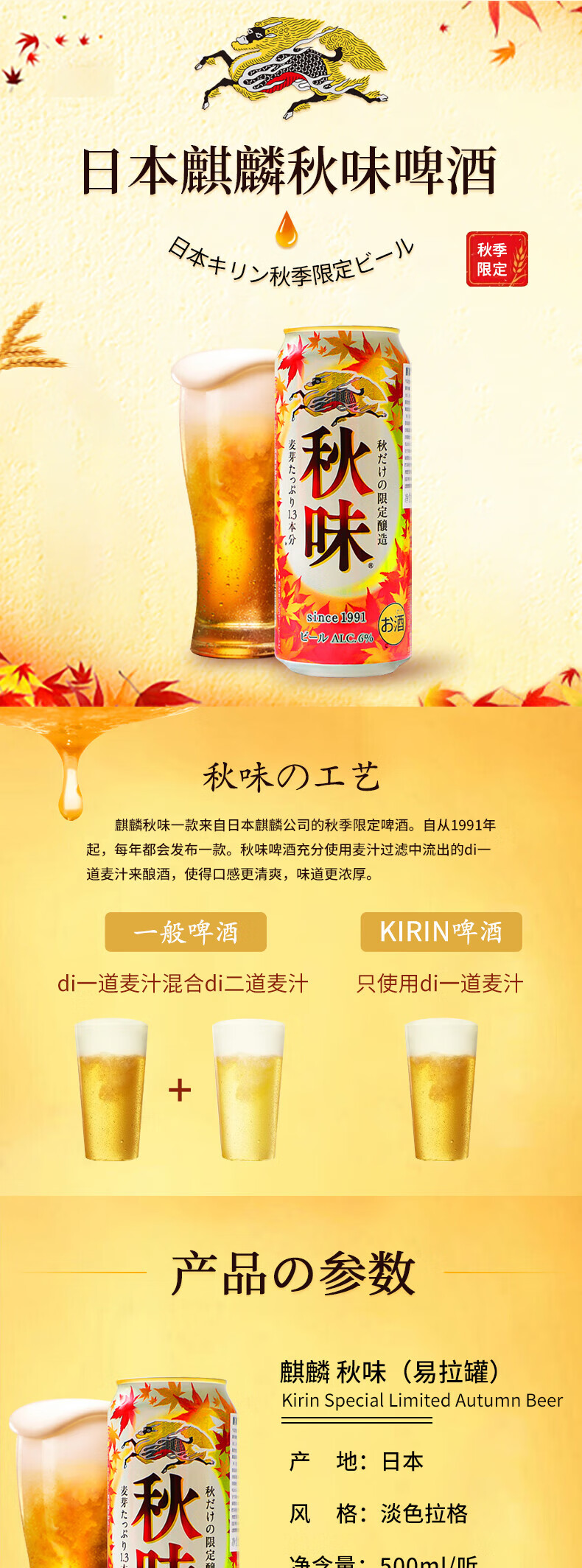 日本进口麒麟秋季秋味季节限定款啤酒 500ml*24罐
