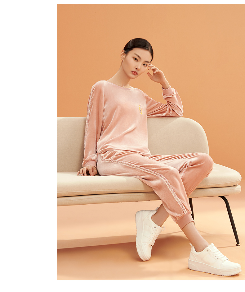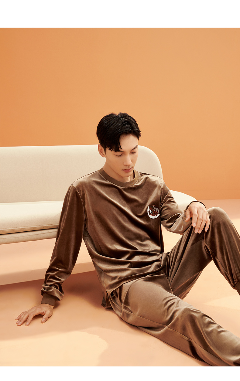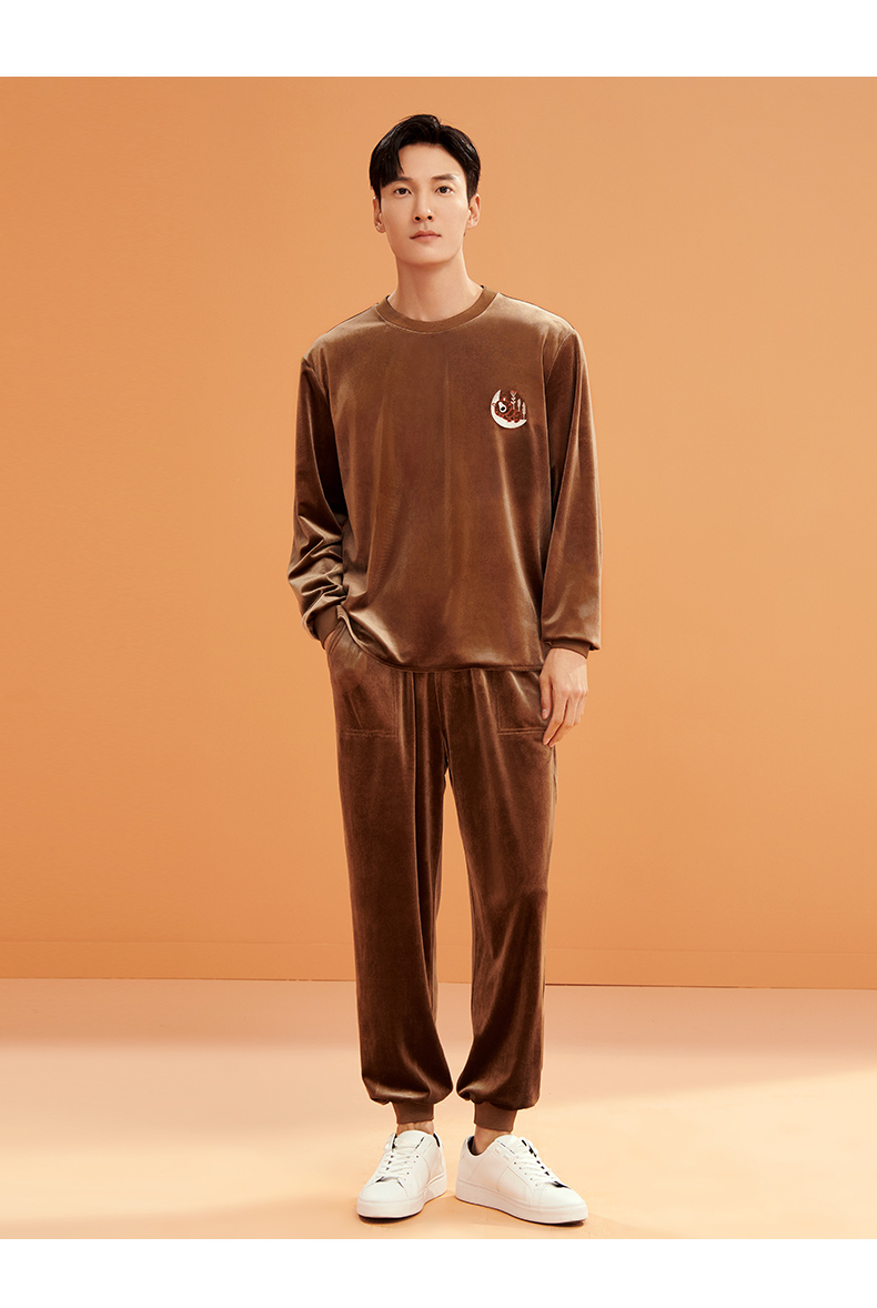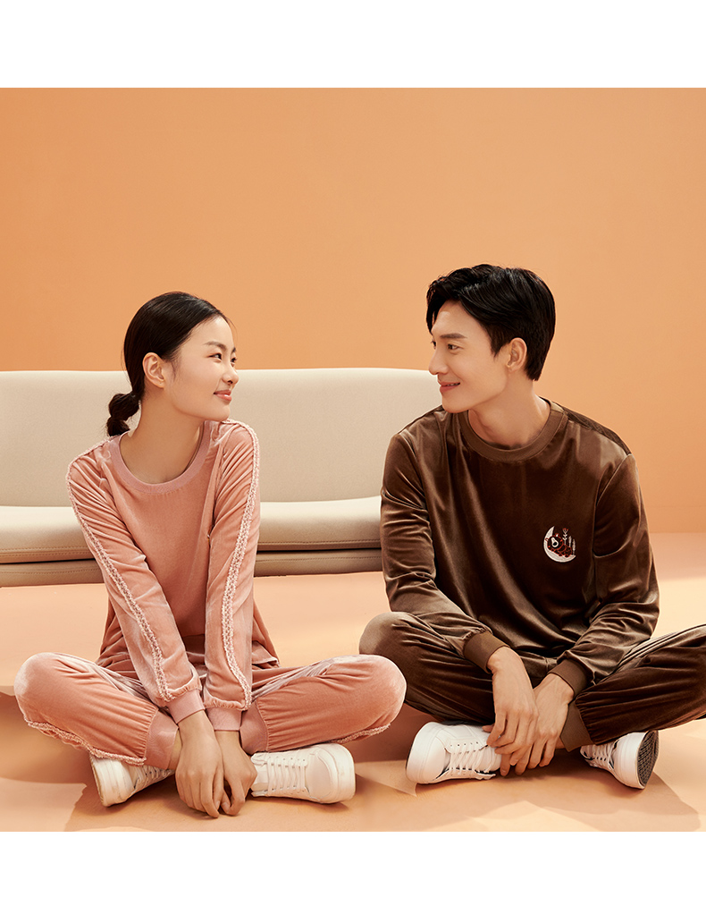 金三塔桑蚕丝丝绒情侣睡衣套装秋冬男女运动可外穿保暖家居服 YSFBD203+YSMBD201
