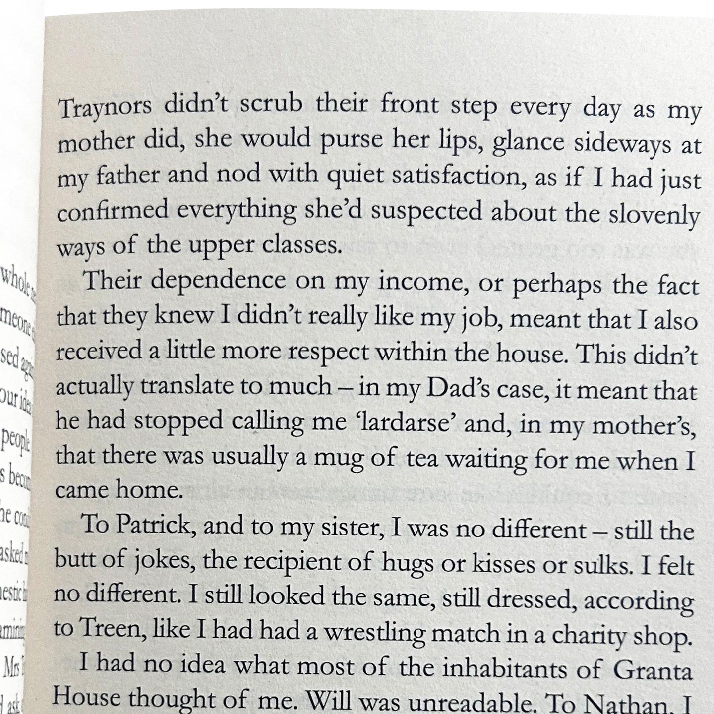 There are 158 footsteps between the bus stop and home, but it can stretch to 180 if you aren’t in a hurry, like maybe if you’re wearing platform shoes. Or shoes you bought from a charity shop that have butterflies on the toes but never quite grip the heel at the back, thereby explaining why they were a knock-down £1.99. I turned the corner into our street (68 steps), and could just see the house— a four-bedroomed semi in a row of other three- and four-bedroomed semis. Dad’s car was outside, which meant he had not yet left for work. Behind me, the sun was setting behind Stortfold Castle, its dark shadow sliding down the hill like melting wax to overtake me. When I was a child we used to make our elongated shadows have gun battles, our street the O. K. Corral. On a different sort of day, I could have told you all the things that had happened to me on this route: where Dad taught me to ride a bike without stabilizers; where Mrs Doherty with the lopsided wig used to make us Welsh cakes; where Treena stuck her hand into a hedge when she was eleven and disturbed a wasp’s nest and we ran screaming all the way back to the castle. Thomas’s tricycle was upturned on the path and, closing the gate behind me, I dragged it under the porch and opened the door. The warmth hit me with the force of an air bag; Mum is a martyr to the cold and keeps the heating on all year round. Dad is always opening windows, complaining that she’d bankrupt the lot of us. He says our heating bills are larger than the GDP of a small African country.
