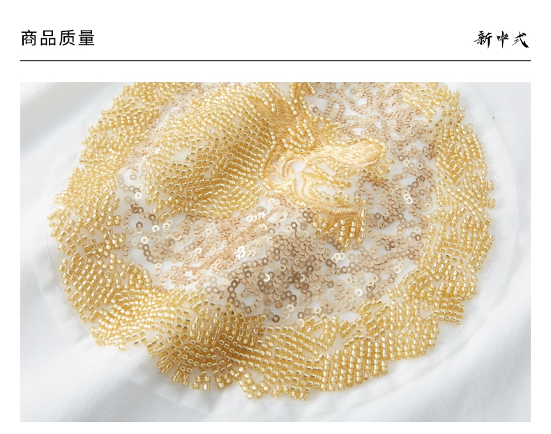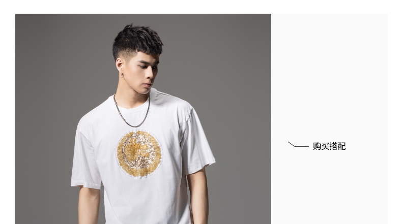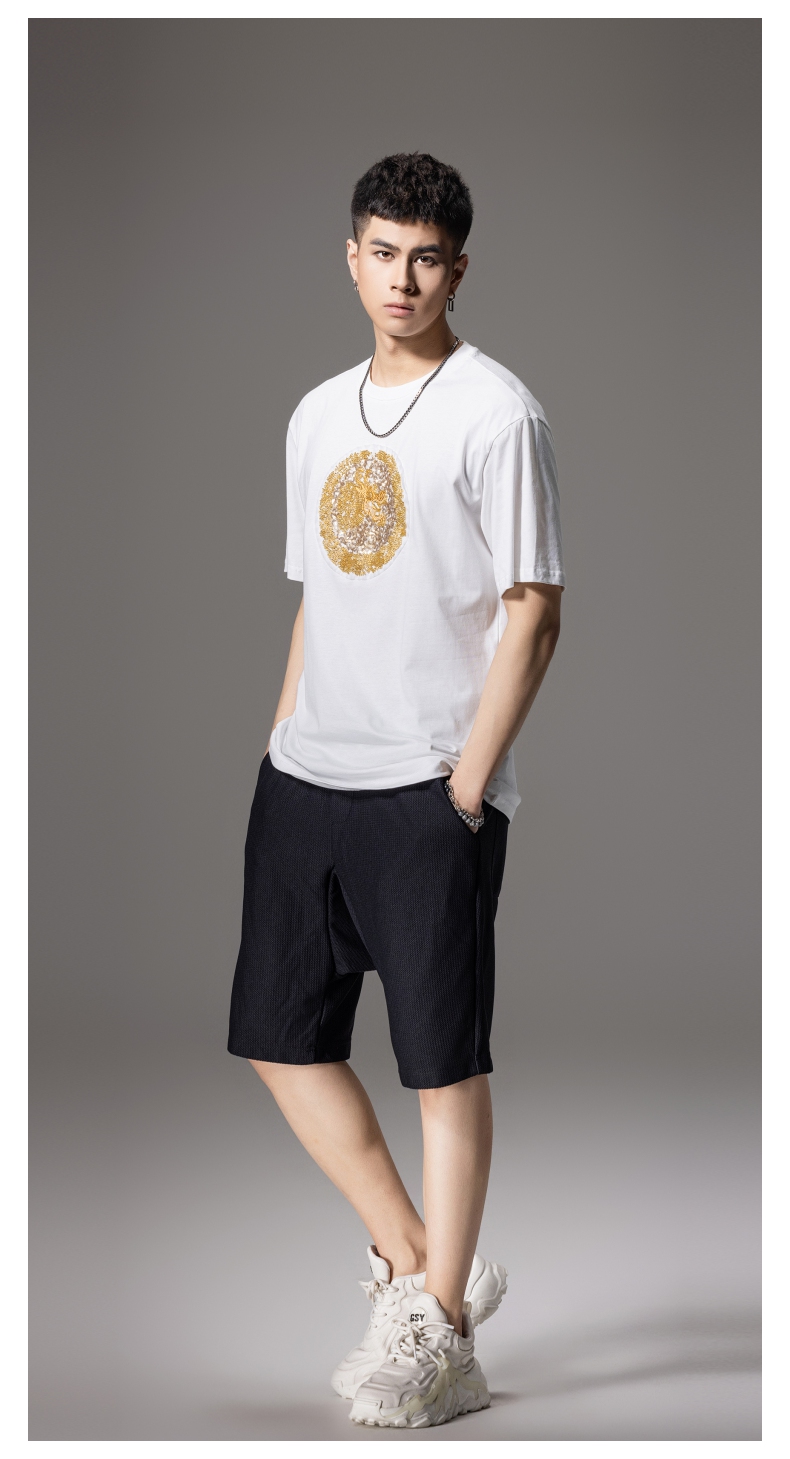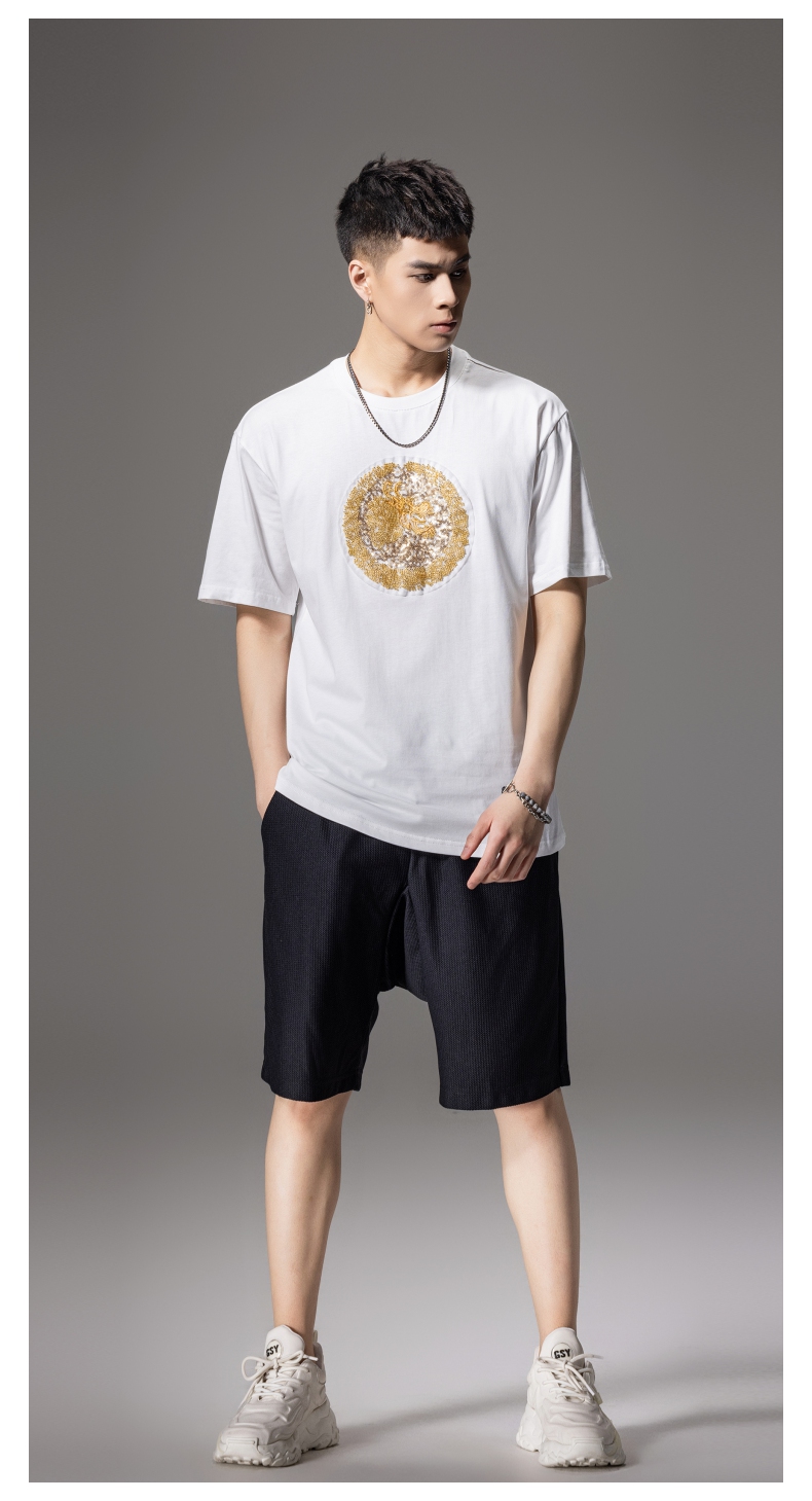 PINLI品立新中式2024夏季新款钉珠潮牌短袖T恤男士中国风圆领上衣BG242111028