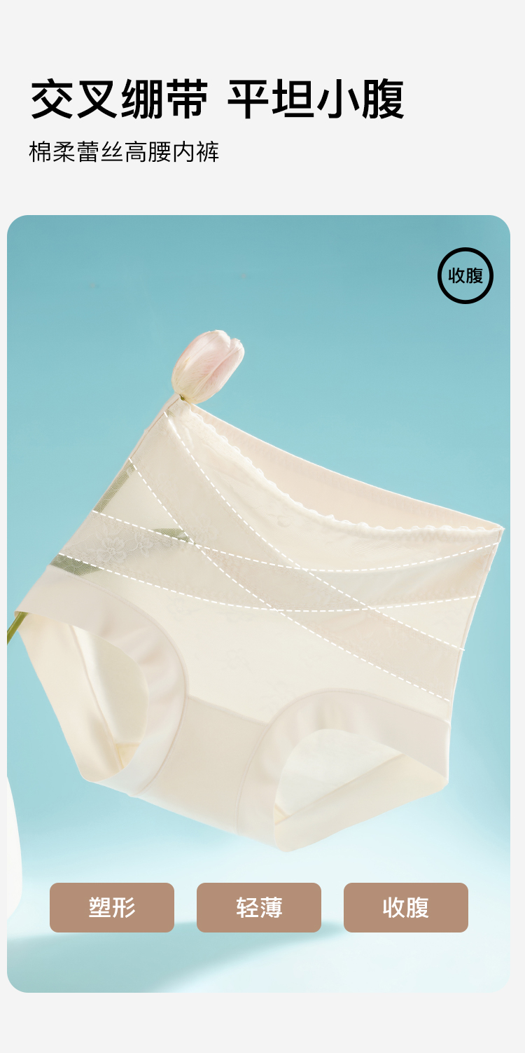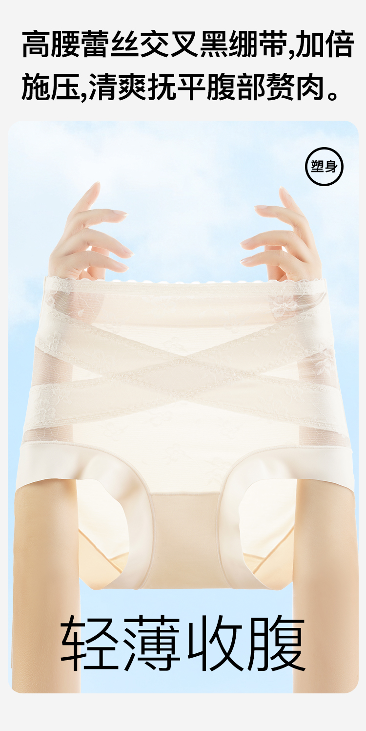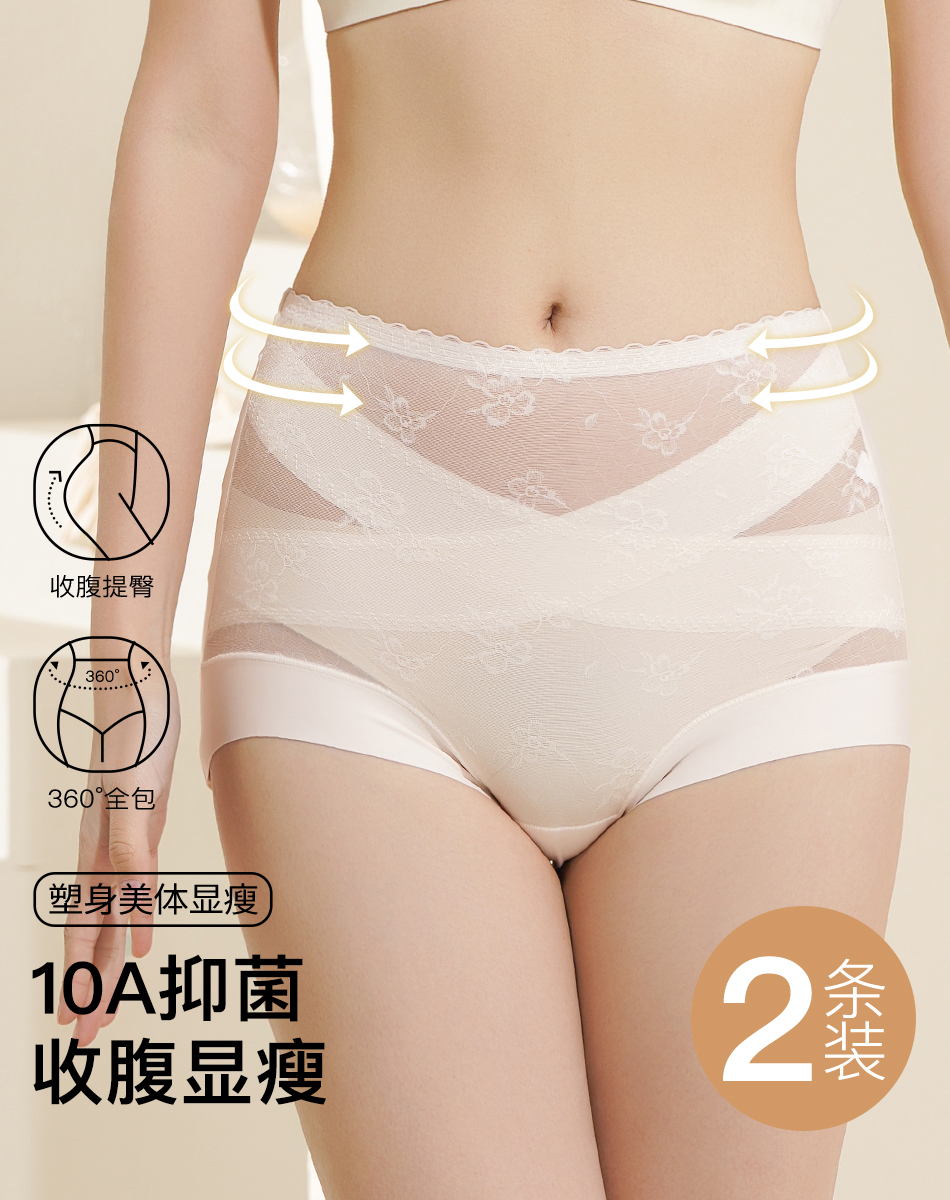 【2条装】10A抑菌收腹裤旗袍专用塑身裤女夏季薄款交叉收腹2139柔雾交叉收腹裤