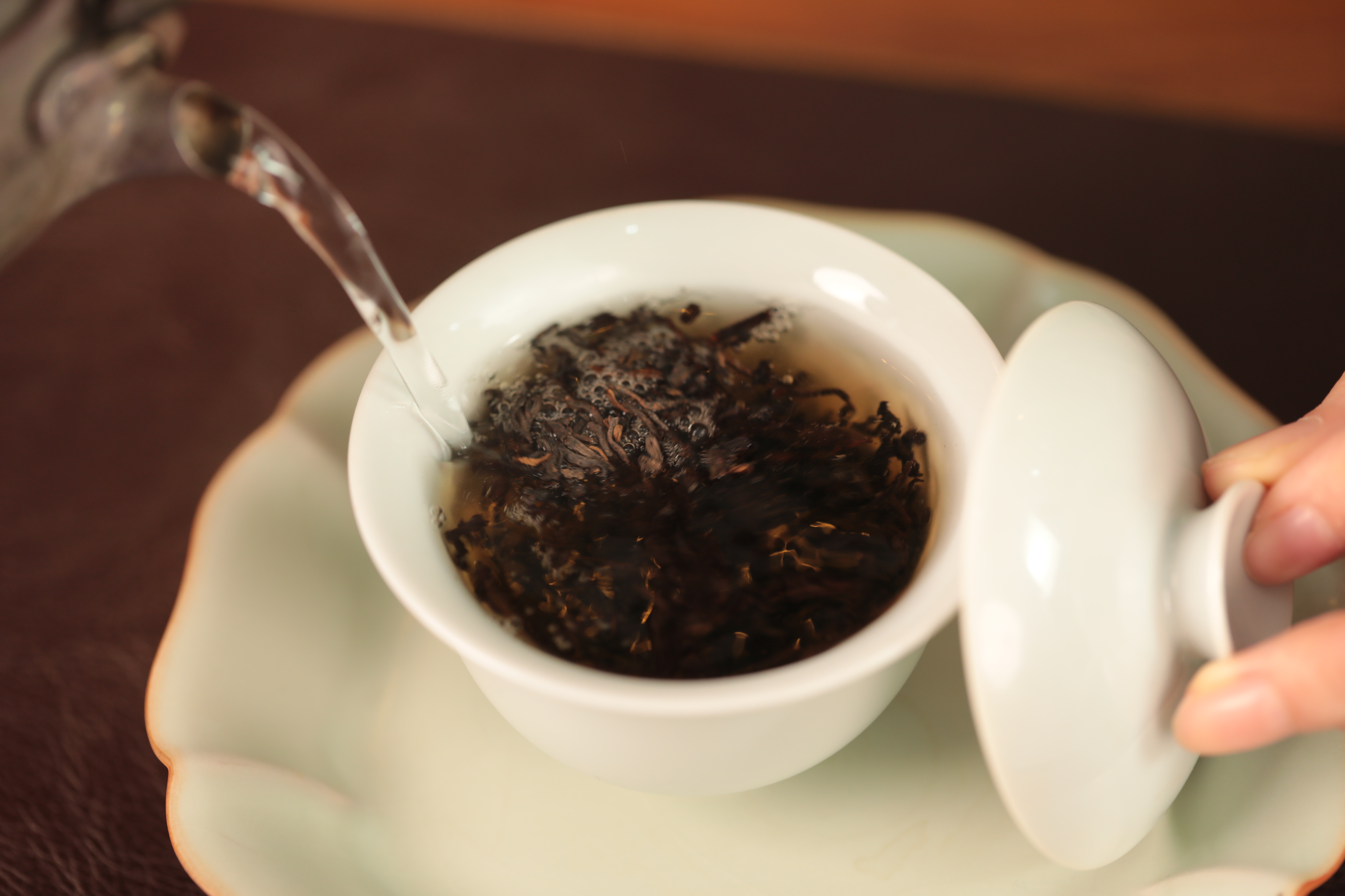 初入口时,茶汤的醇厚感首先让人感到满足,随后那一缕淡淡的参香才缓缓浮现。