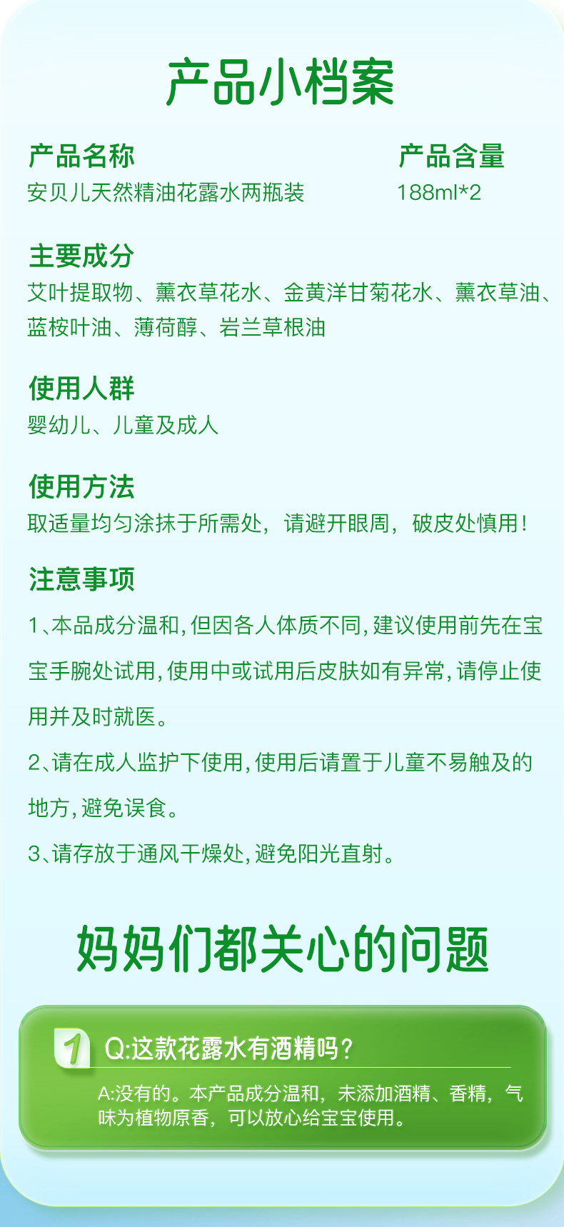 天然精油花露水188ml两瓶装