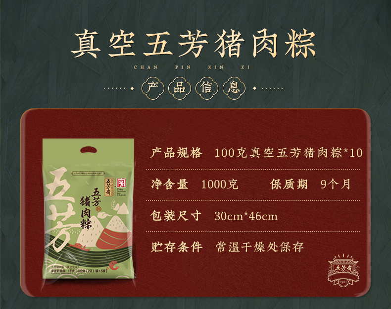 五芳斋 五芳猪肉粽 真空量贩10只装 嘉兴咸香粽王 家庭分享大包装 (100g*10)