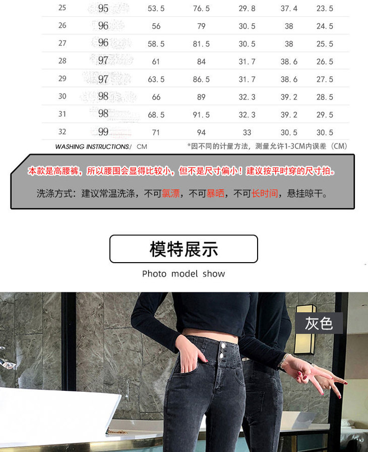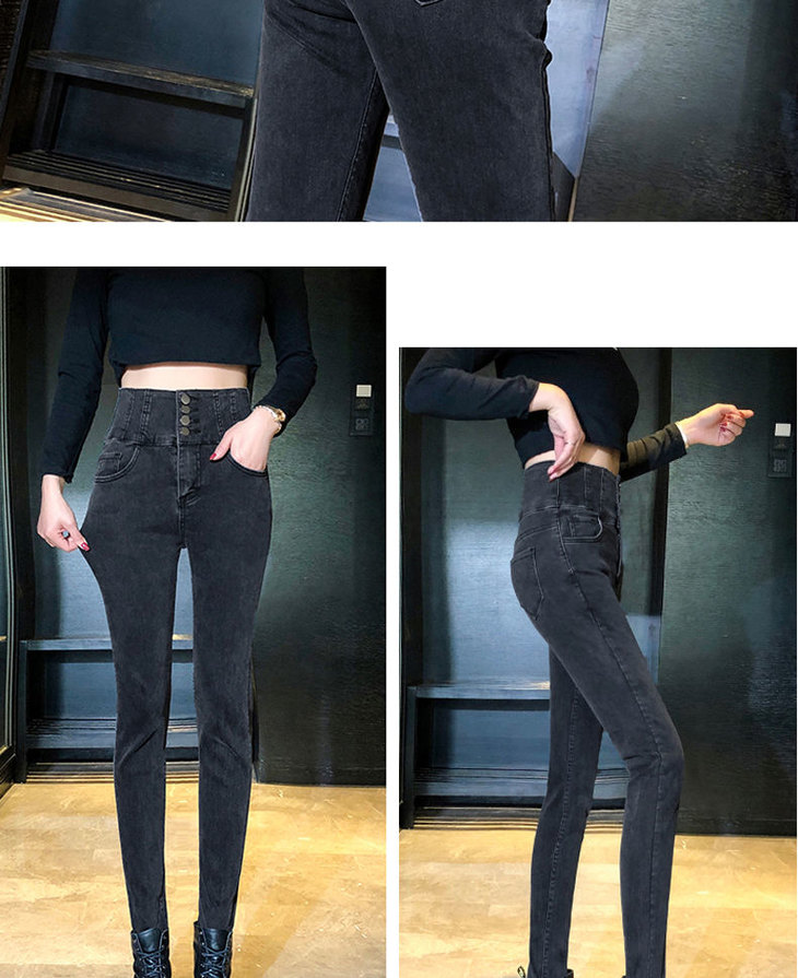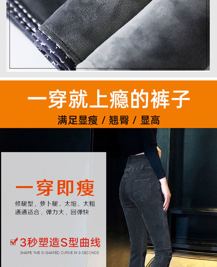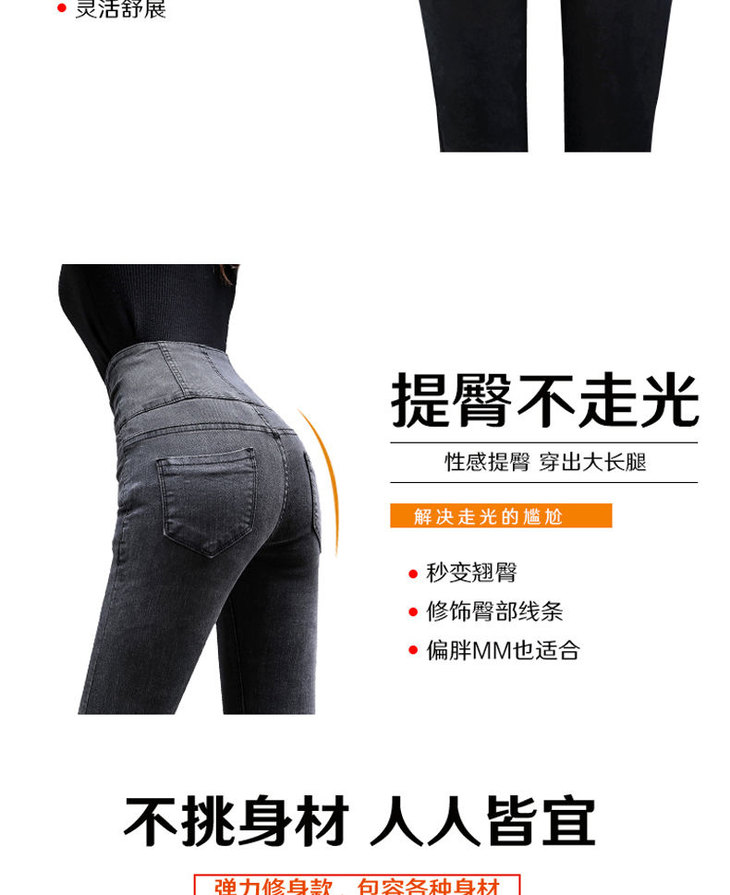 【单款/加绒】高腰牛仔裤女显瘦秋冬新款弹力紧身小脚铅笔裤加厚