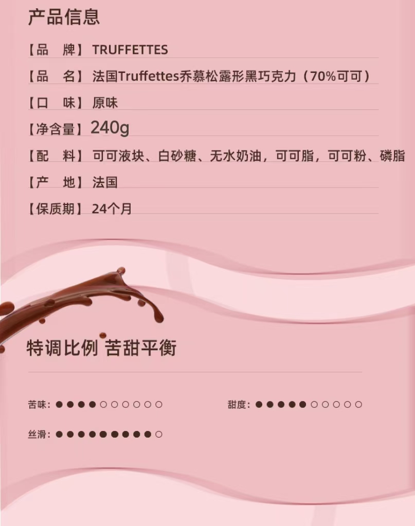 法国Truffettes乔慕松露形黑巧克力花朵礼盒(70%可可)