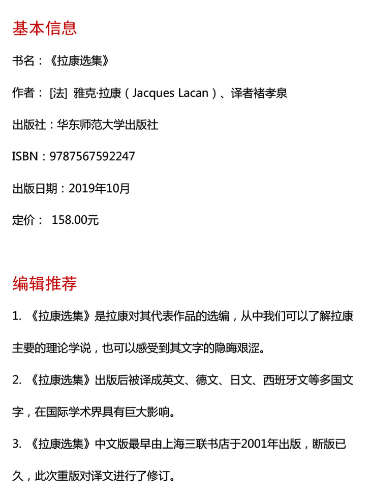 拉康选集修订重版 法国重要精神分析学家拉康的代表作 六点图书