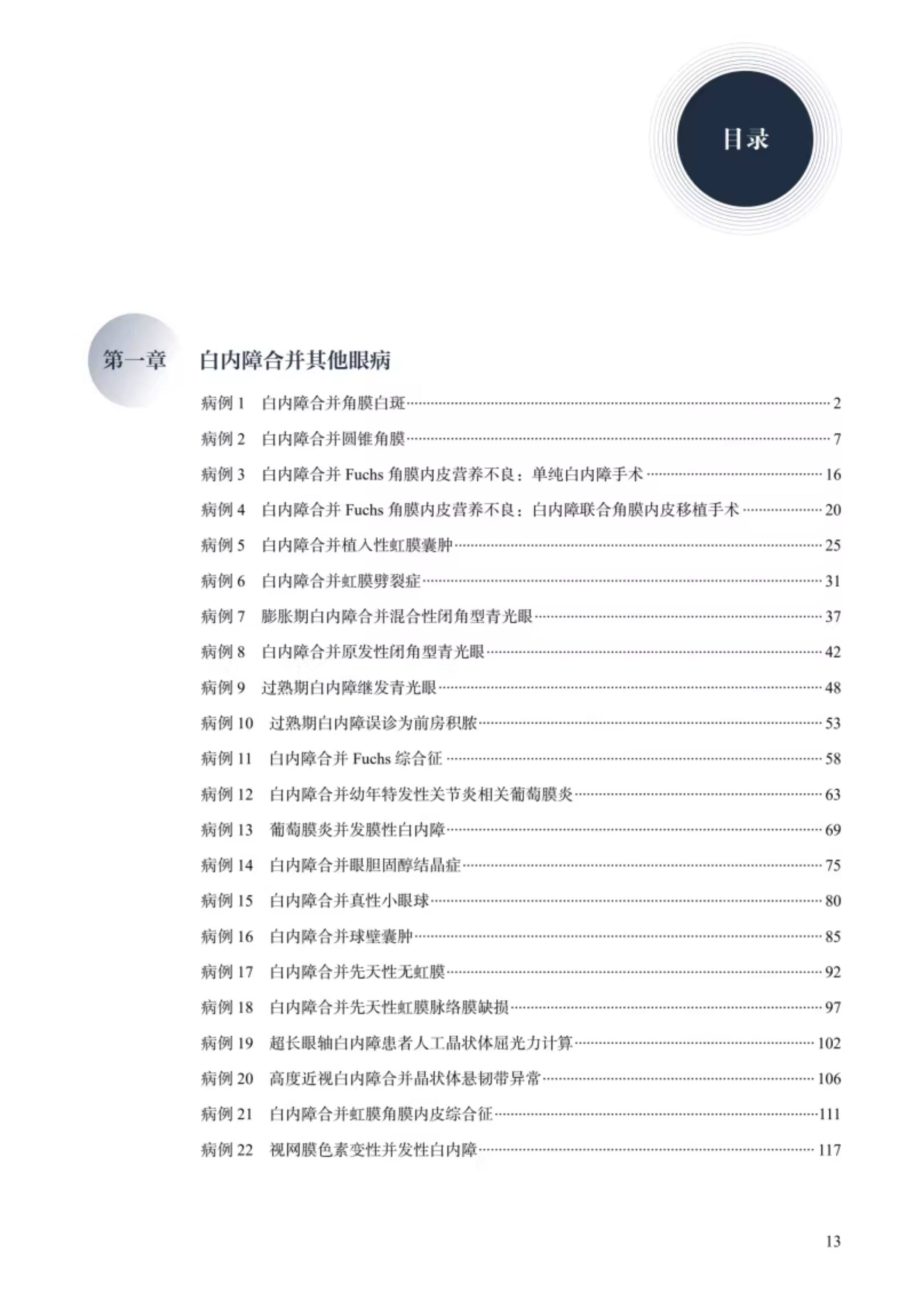 本书共8章,30余万字,精选中山眼科中心白内障科近5年的典型、疑难、罕见病例95例,包括儿童特殊白内障、医源性白内障、白内障合并其他眼部病变、白内障合并全身综合征、其他眼部手术后并发白内障、白内障术中术后并发症等病例。每个精选病例从患者病史、眼科常规检查入手,通过深入浅出的逐步解析将需要完善的辅助检査、诊断要点、鉴别诊断、治疗方案的选择、术后随访转归完整的呈现出来,重点突出诊断思辨和手术方案的设计,最后总结诊疗过程中的经验和启发。