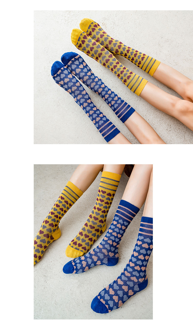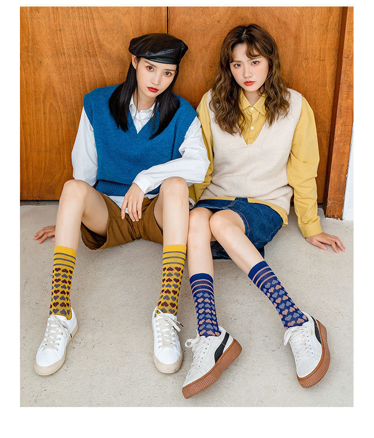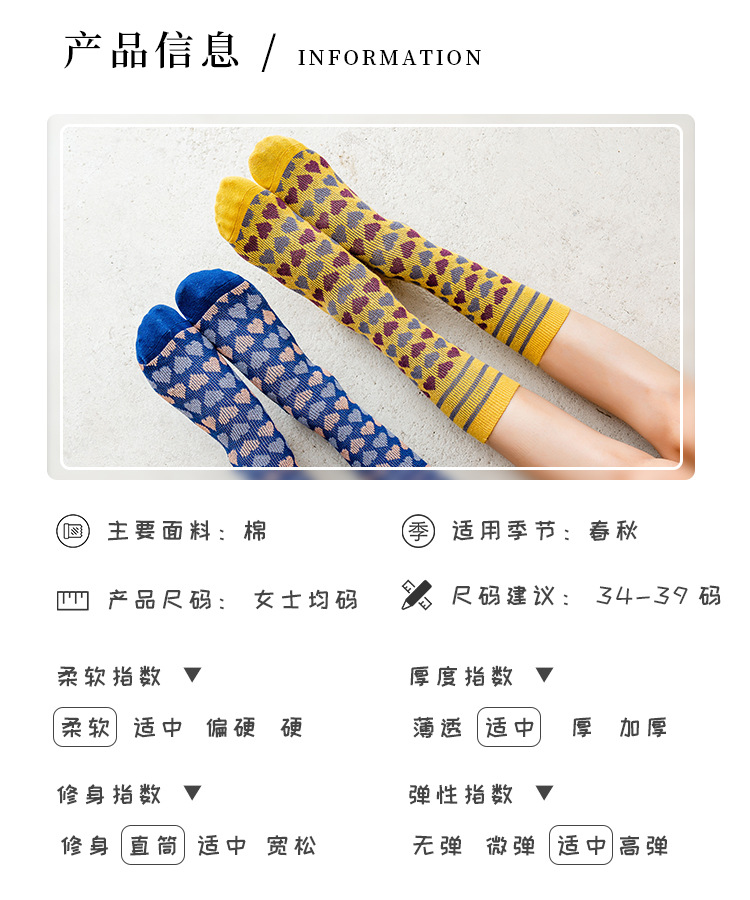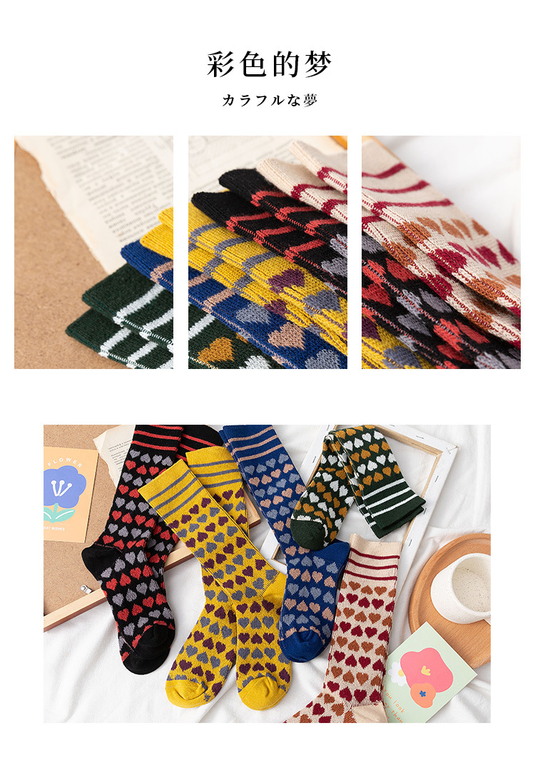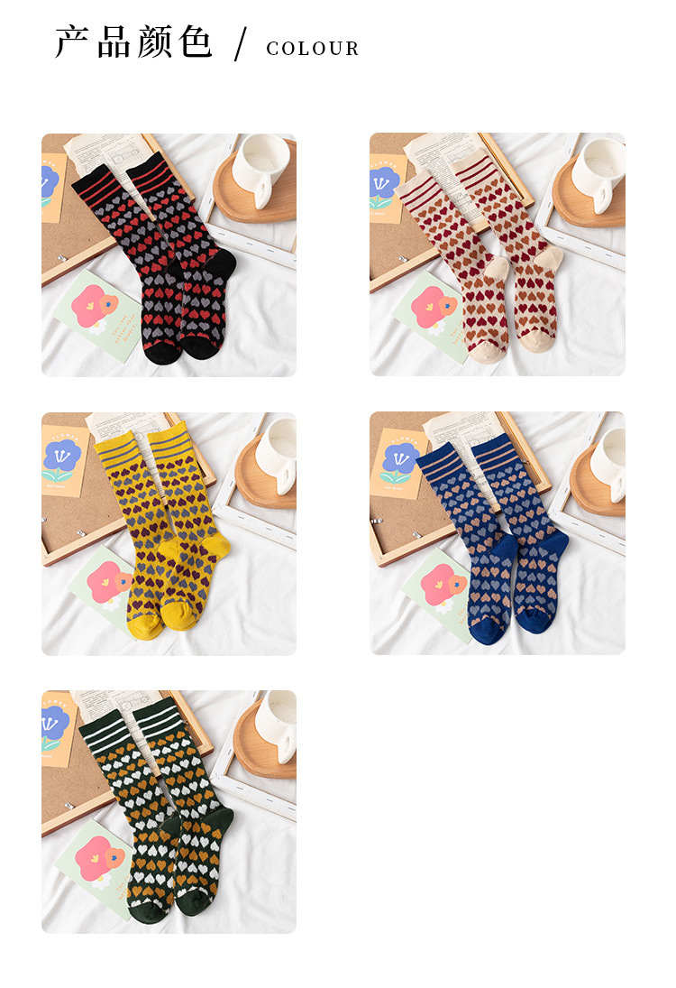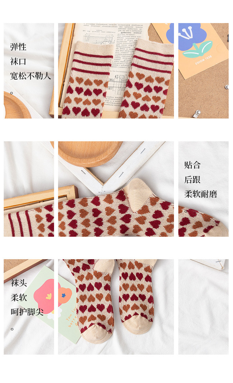 【2双装 温暖的守护 从足底开始】秋冬季彩色爱心中筒袜港风透气棉袜学院风ins地板袜潮牌女袜