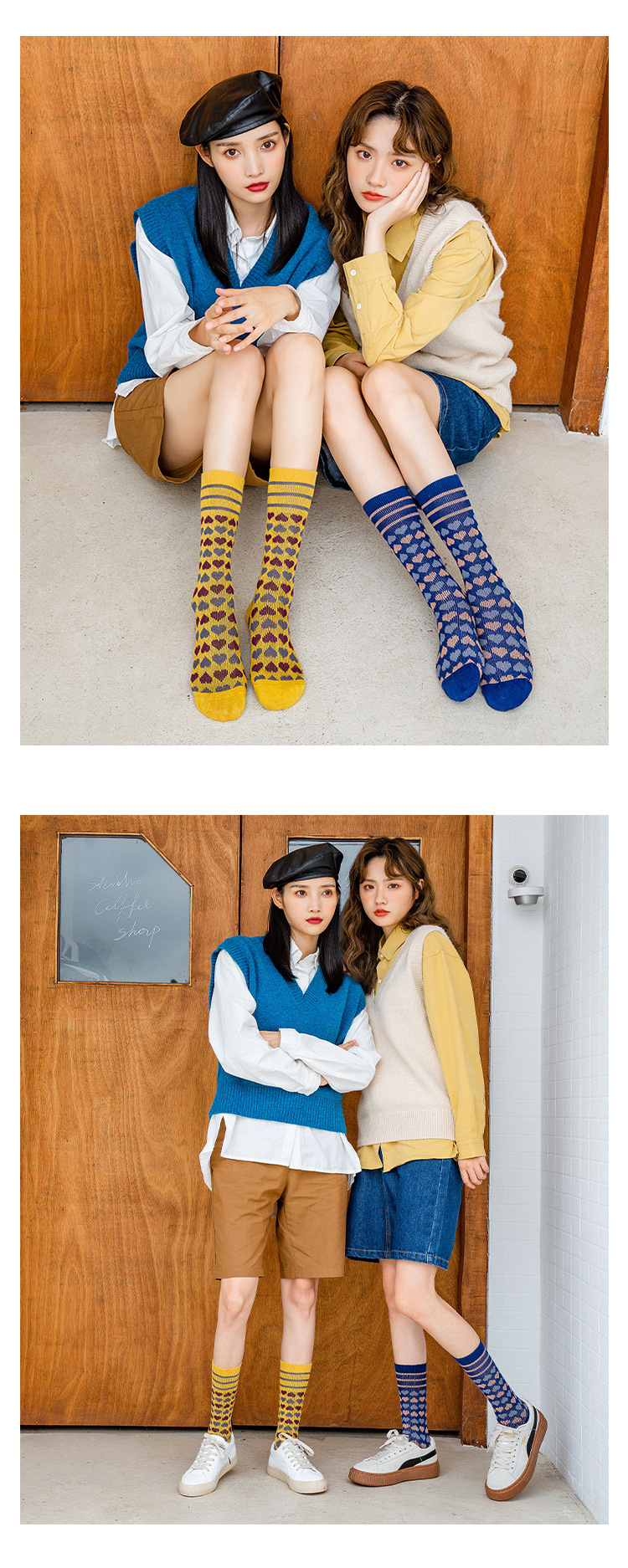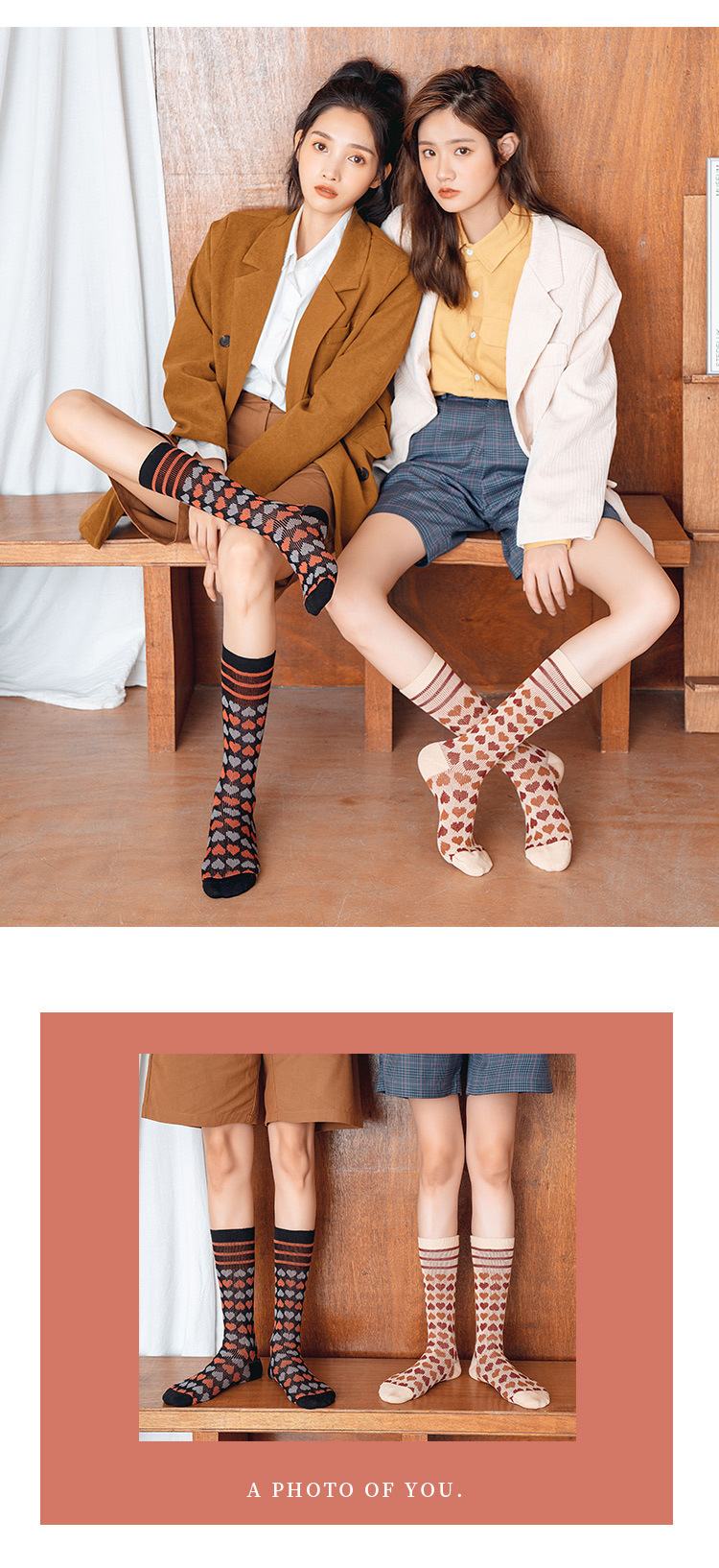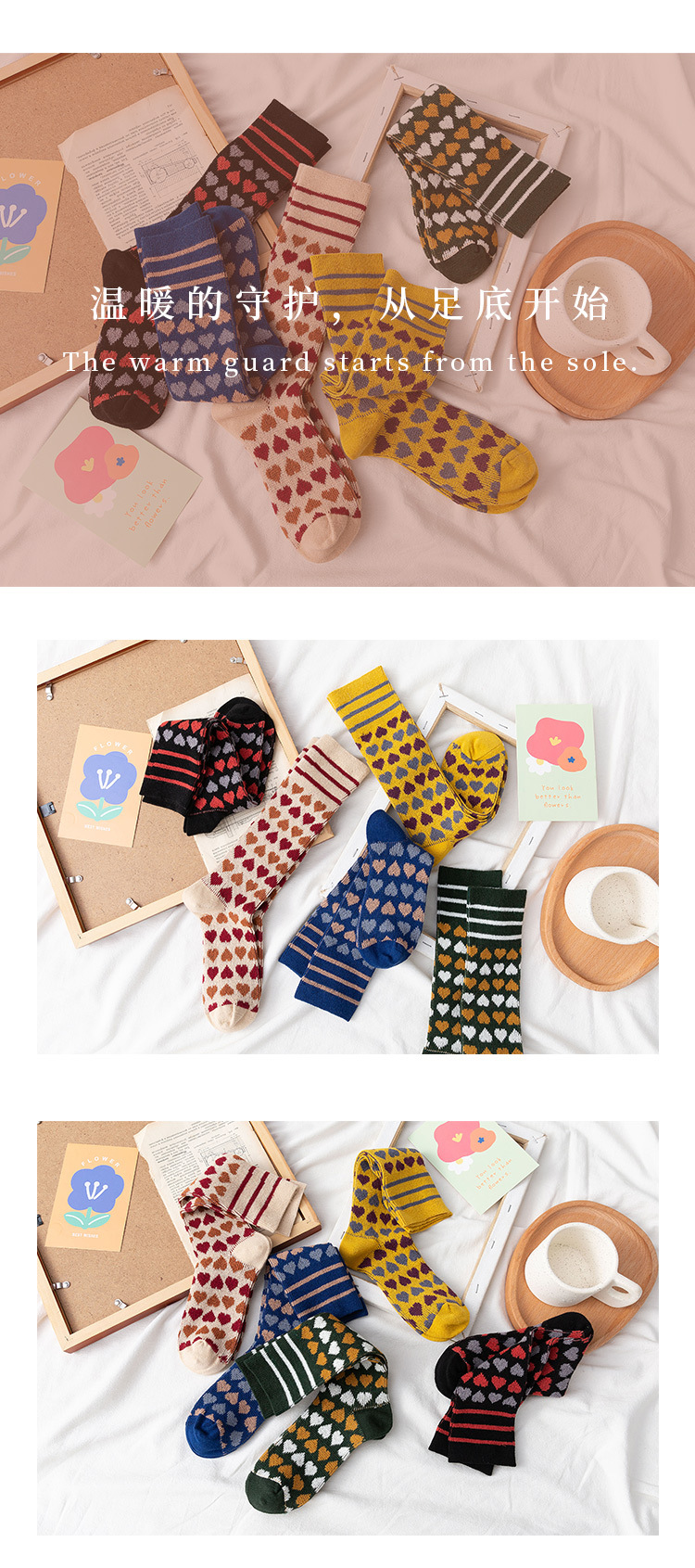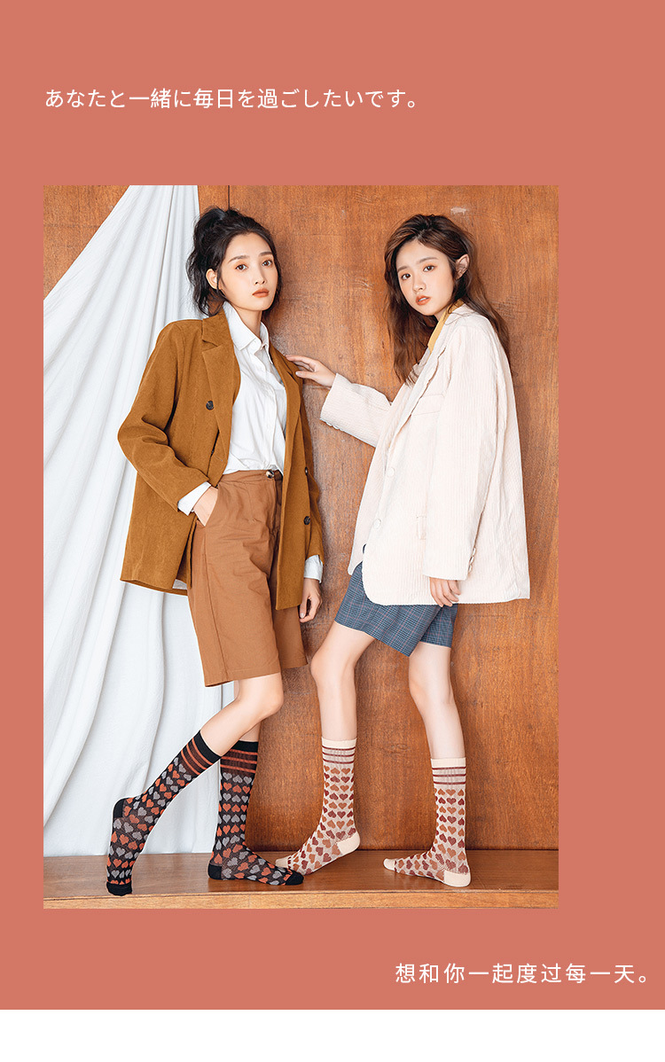 【2双装 温暖的守护 从足底开始】秋冬季彩色爱心中筒袜港风透气棉袜学院风ins地板袜潮牌女袜