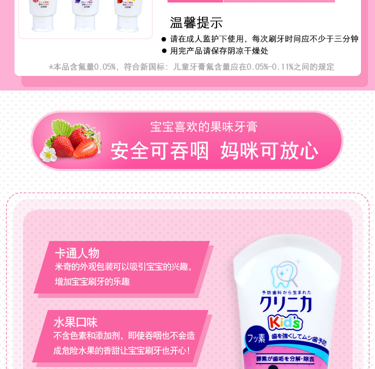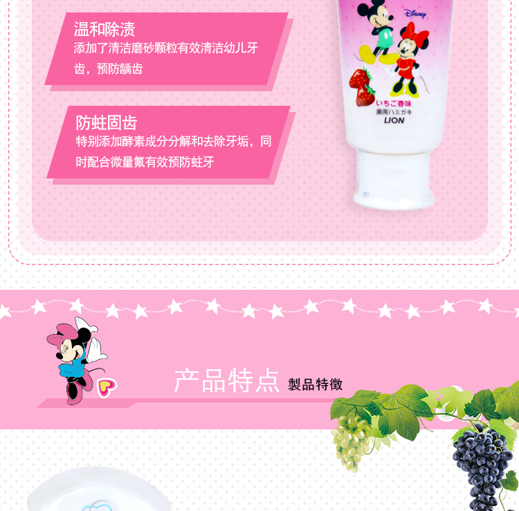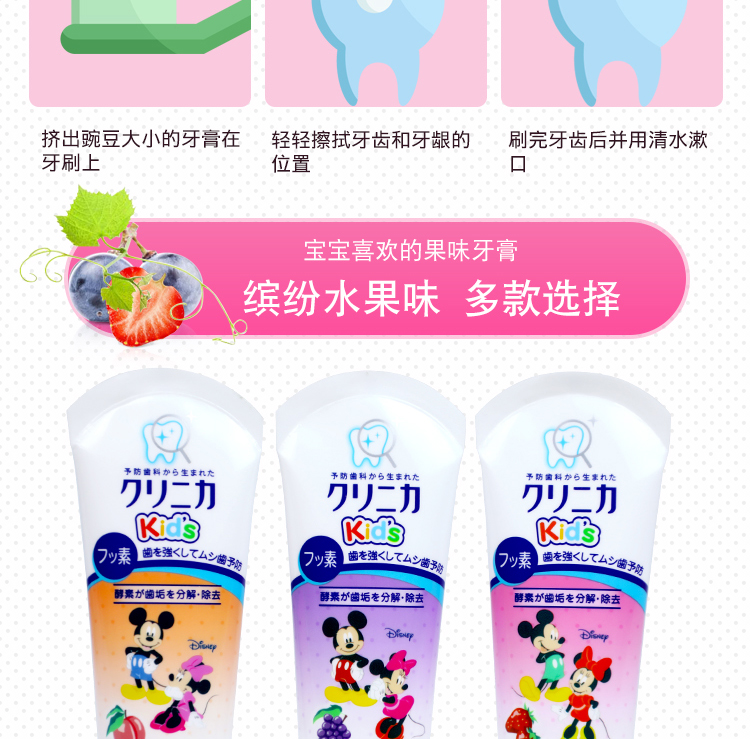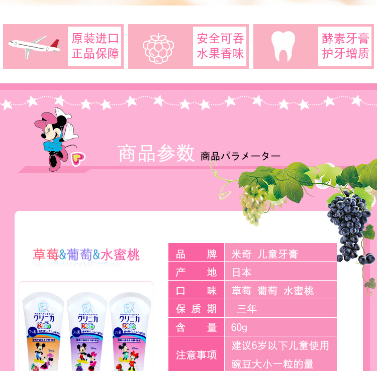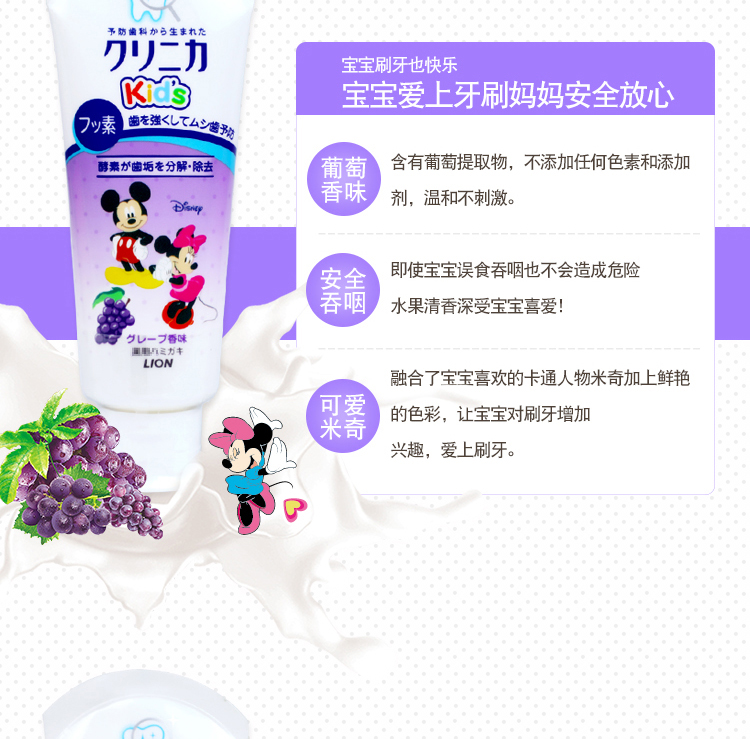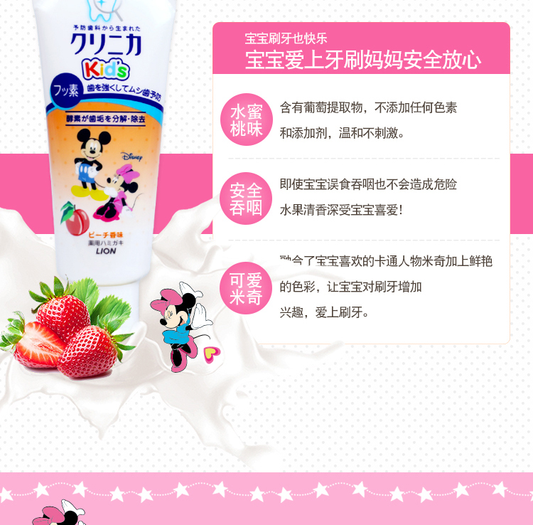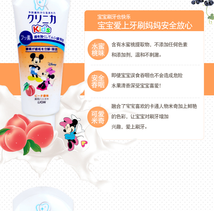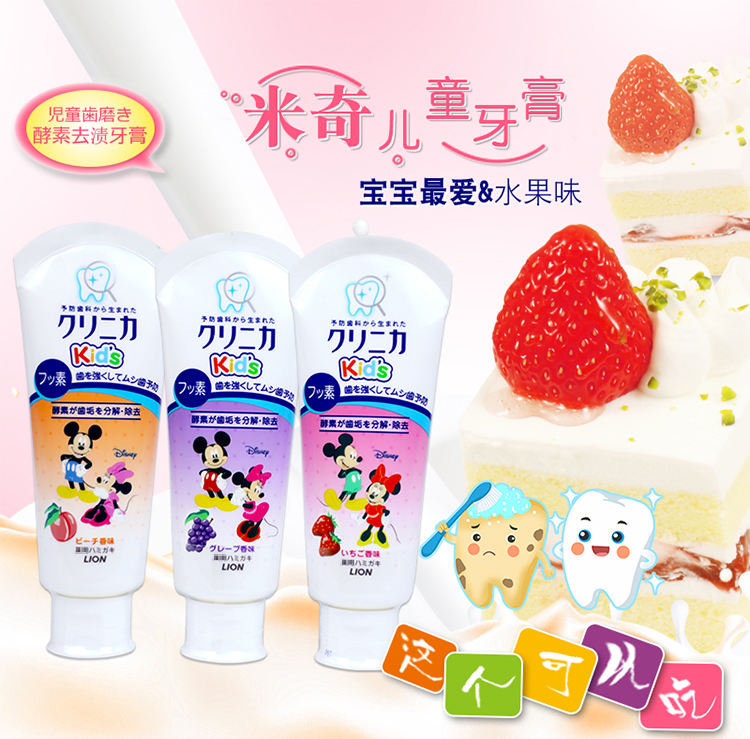【一般贸易】蜜桃味缺货勿选!日本狮王LION米奇米妮酵素天然木糖醇儿童牙膏60g (适合2岁以上儿童)