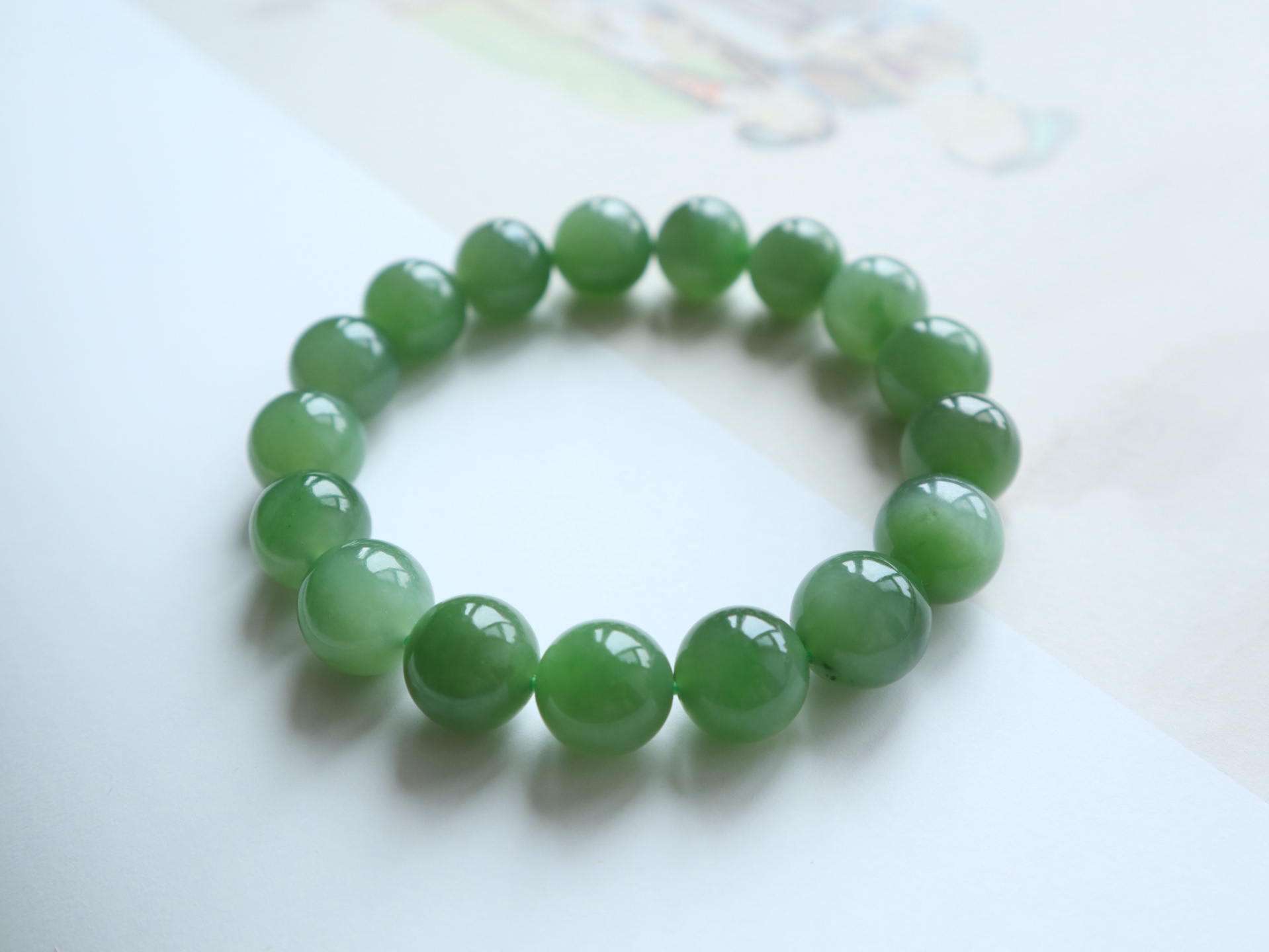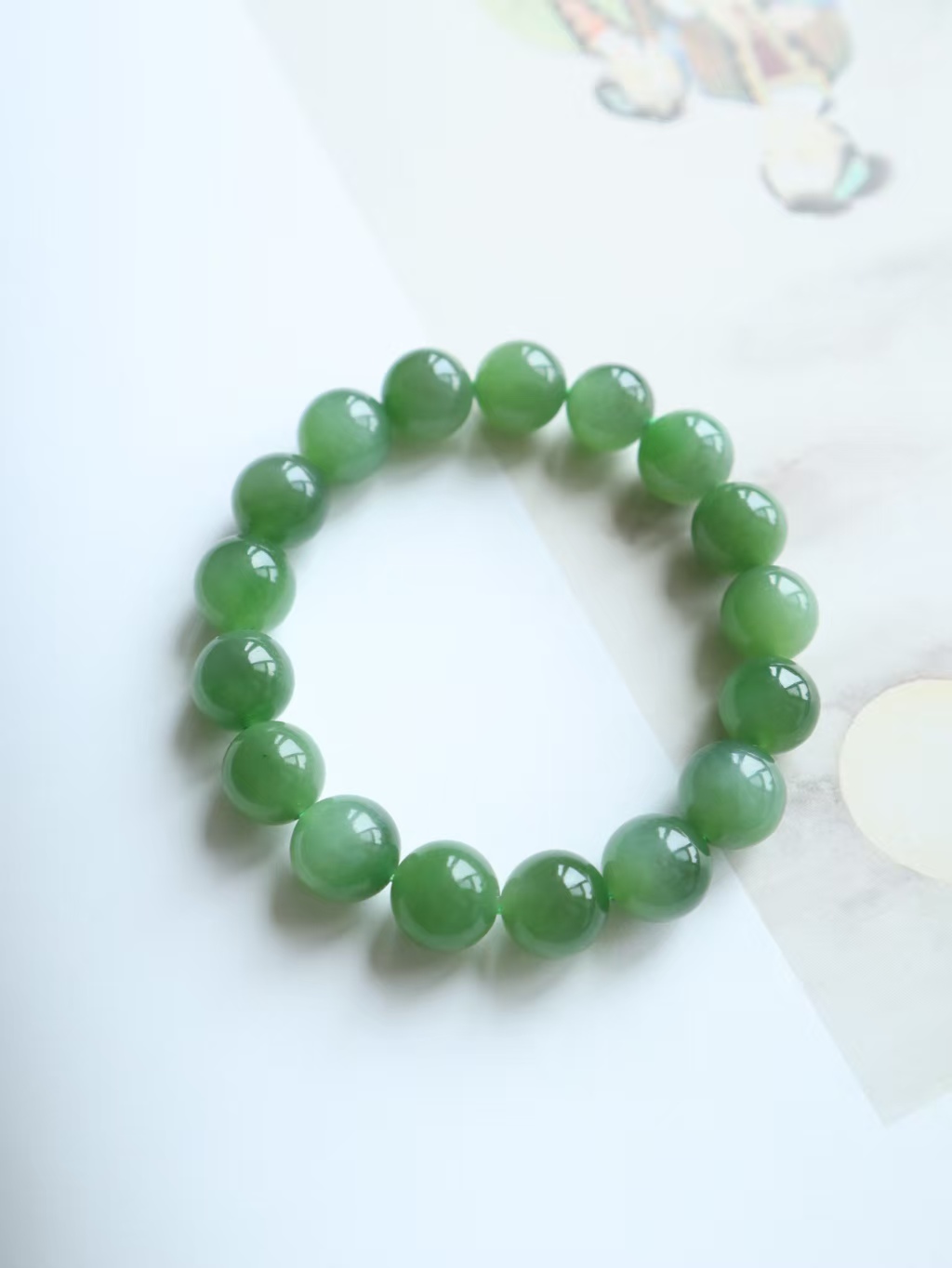 精品! 天然和田玉碧玉手链,正宗老俄料,阳绿色,脂份厚,无杂无裂无黑点,尺寸约11.3mm