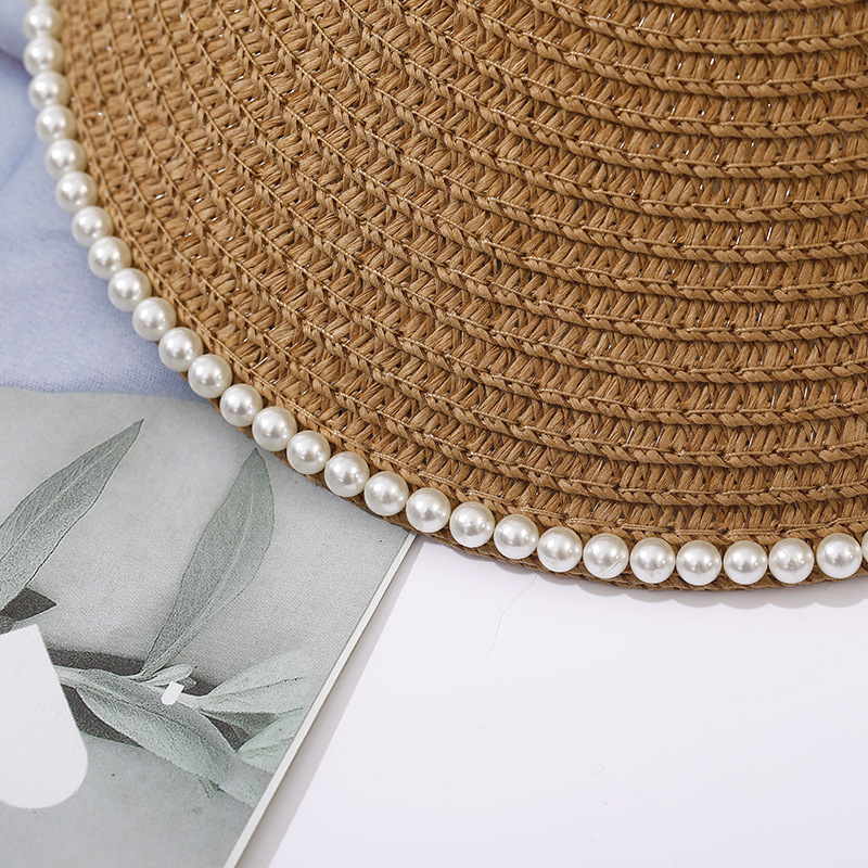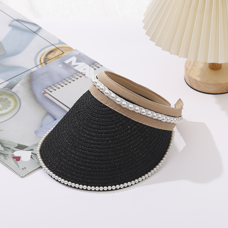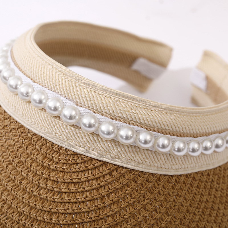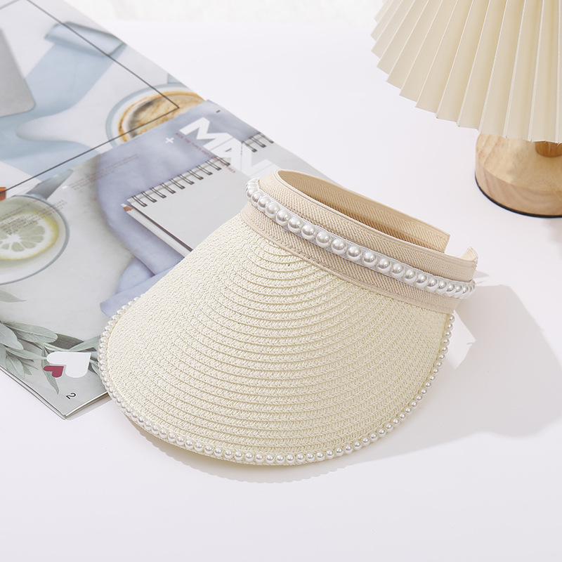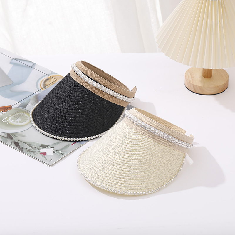 【时尚美观显头小!夏季珍珠遮阳帽】遮阳防晒防紫外线,小众设计,海边沙滩太阳空顶帽子,夏季草帽
