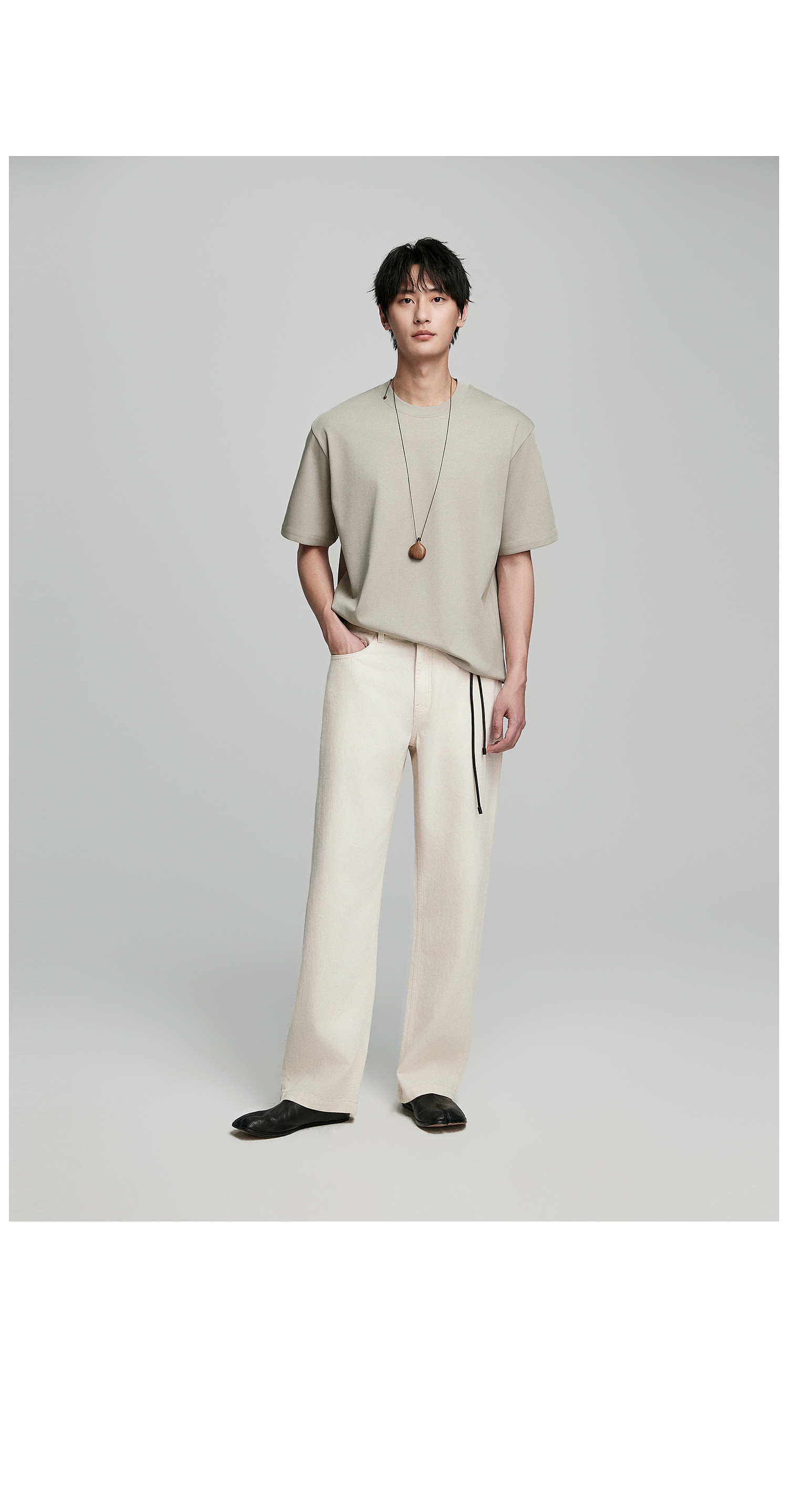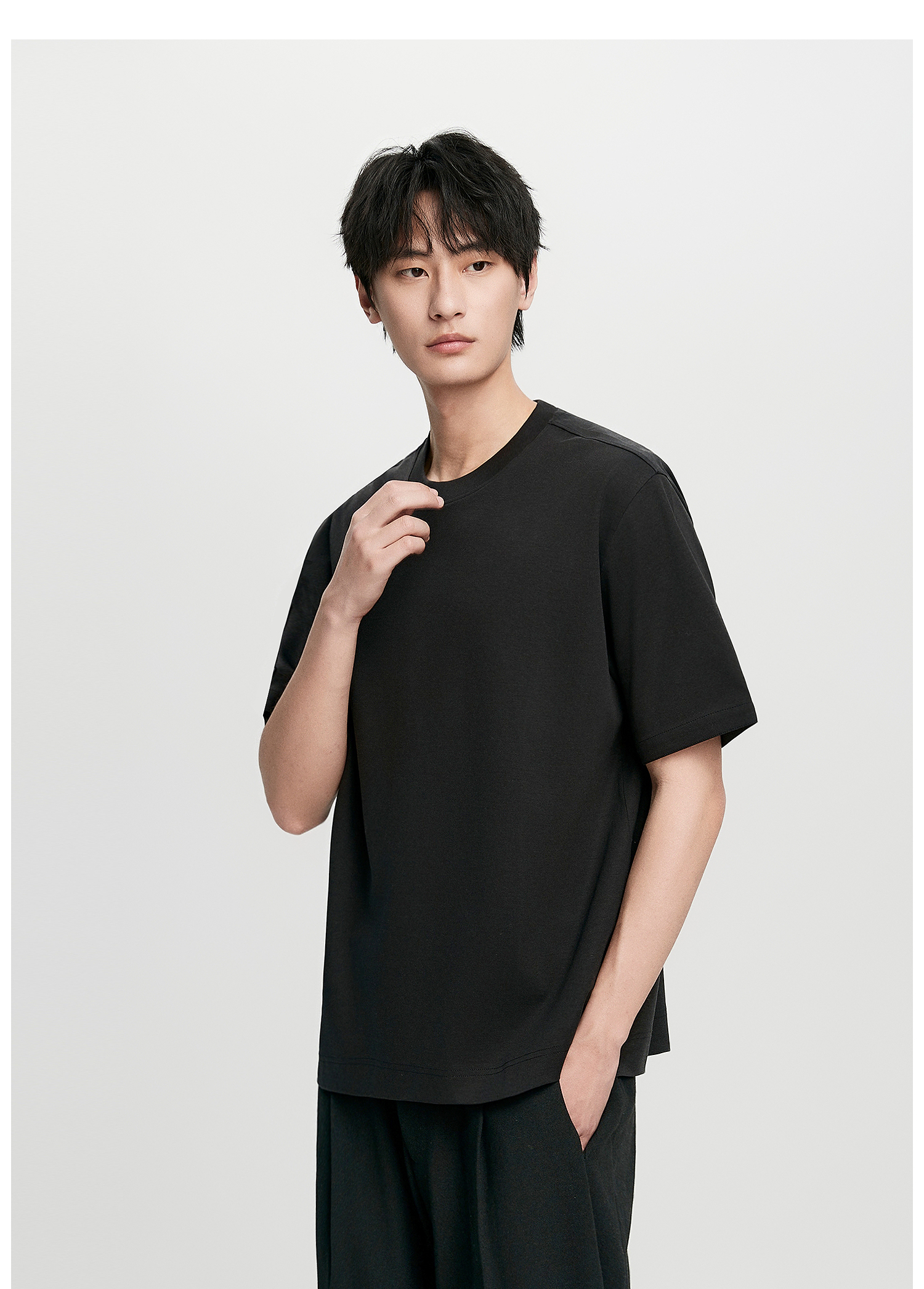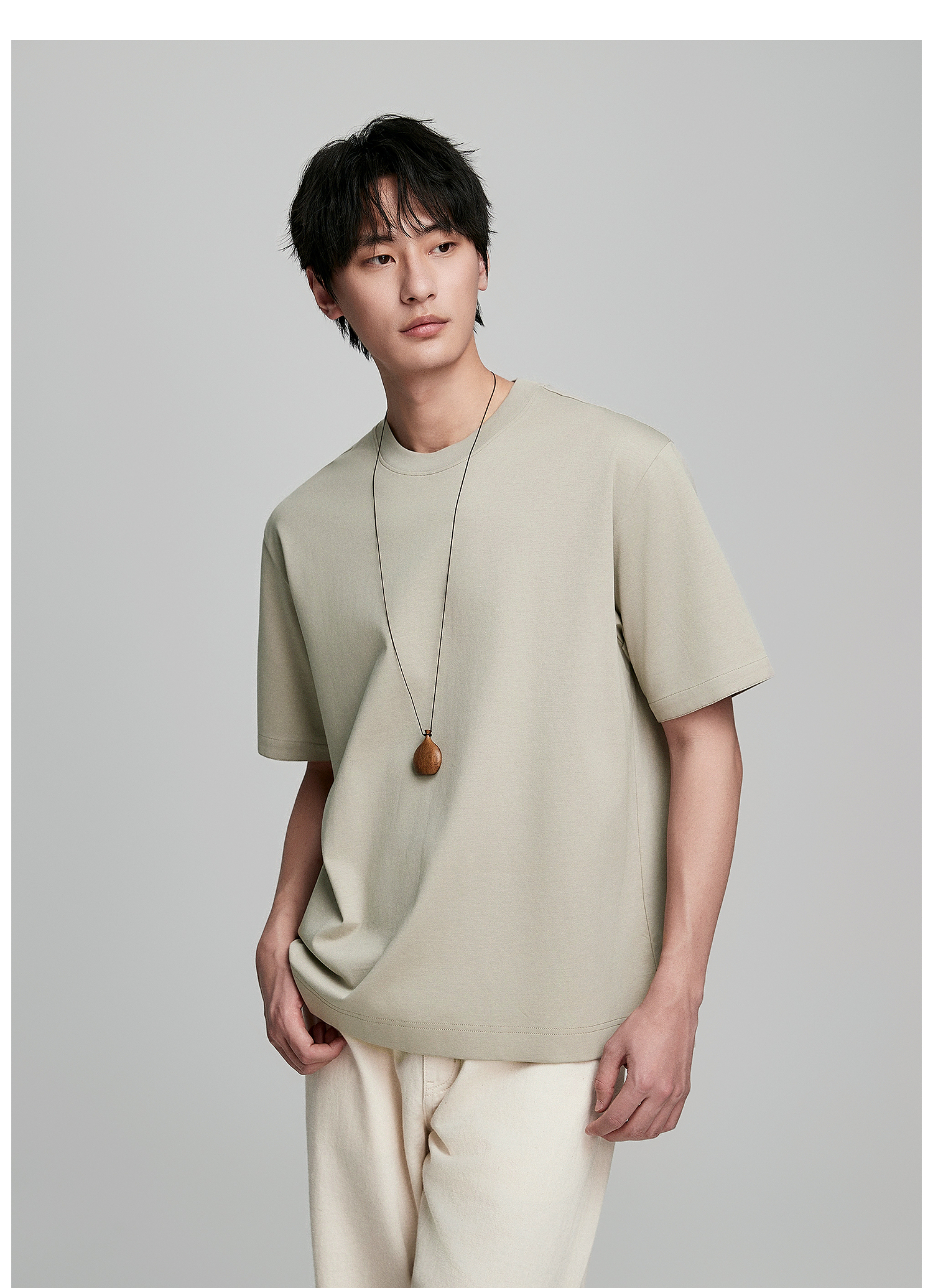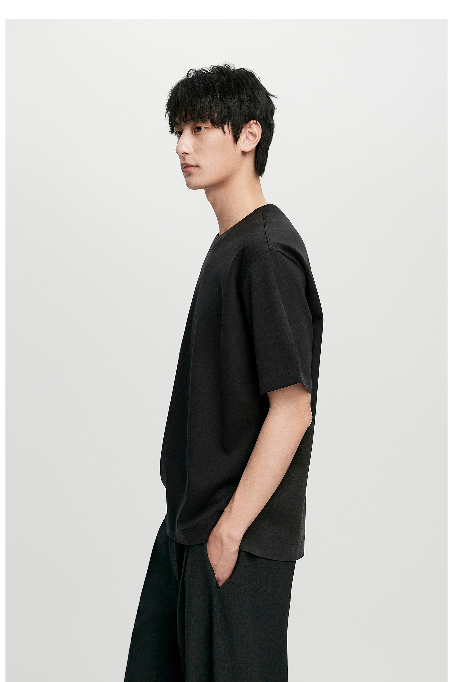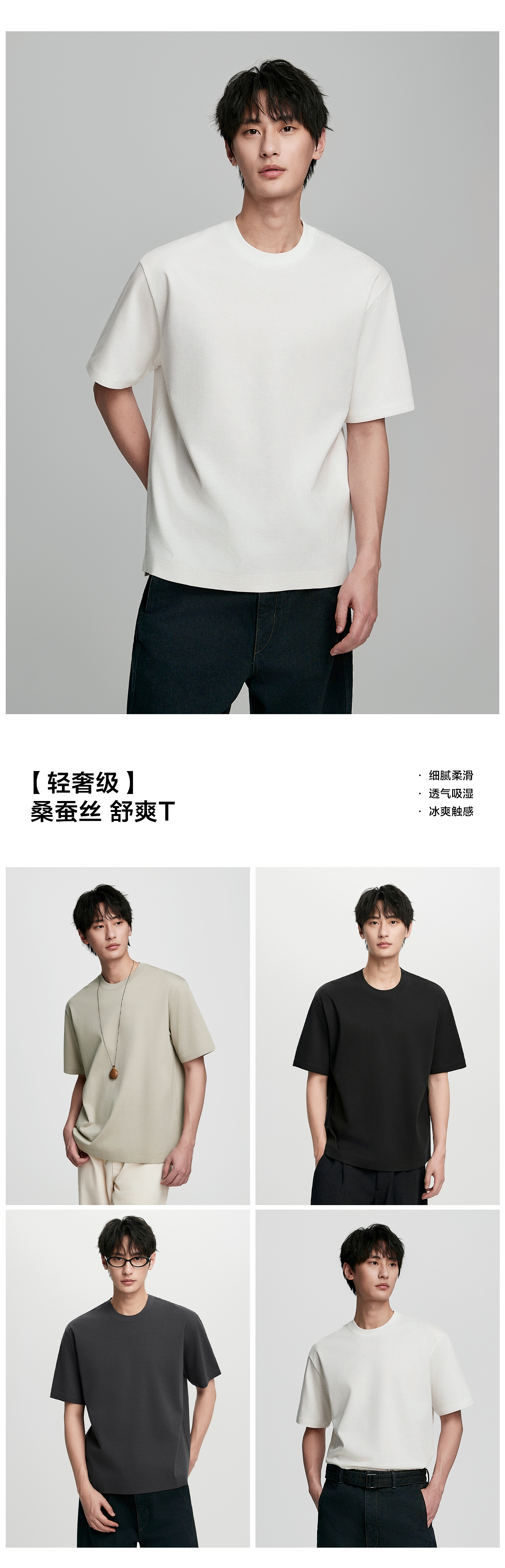 棉仓363801012-桑蚕丝玉挺双面微宽松短袖T恤