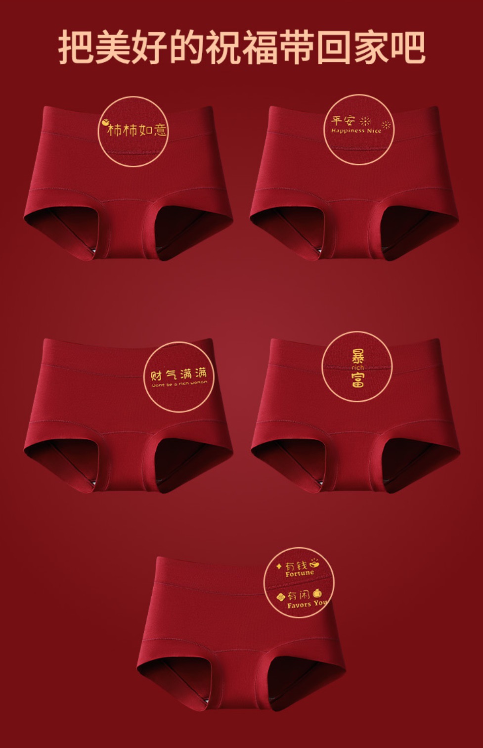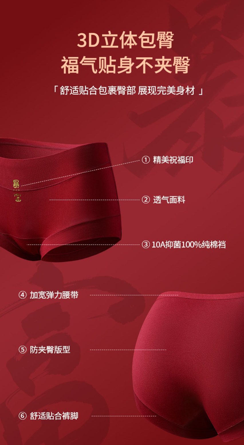 把好运穿在身上;10A抑菌棉裆+3D包臀设计,又把舒适
